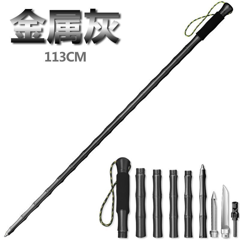 하이킹 스틱, 알루미늄 합금 호신 막대, 미끄럼 방지 등산 야외 다기능 접이식 스틱, 경량 등산 칼 스트랩