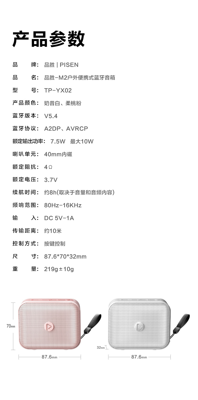 • 소프트 피치 핑크 [M2 아웃도어 휴대용 블루투스 스피커 (TP-YX02)