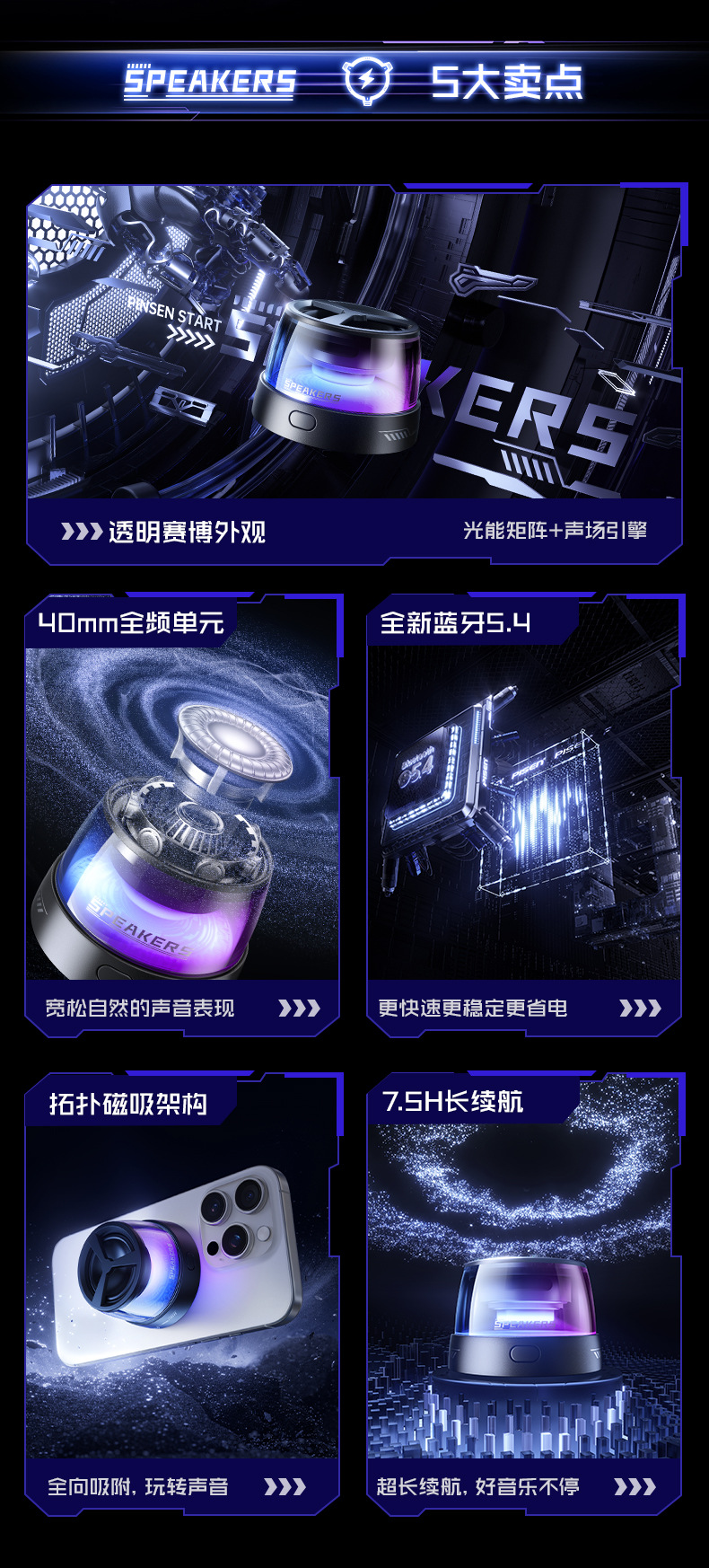 Pinsheng 2025 새로운 다기능 자기 블루투스 스피커 고품질 야외 휴대용 여행 스피커 도매