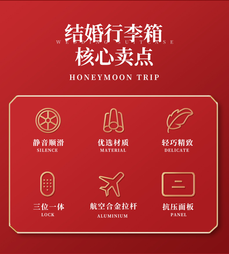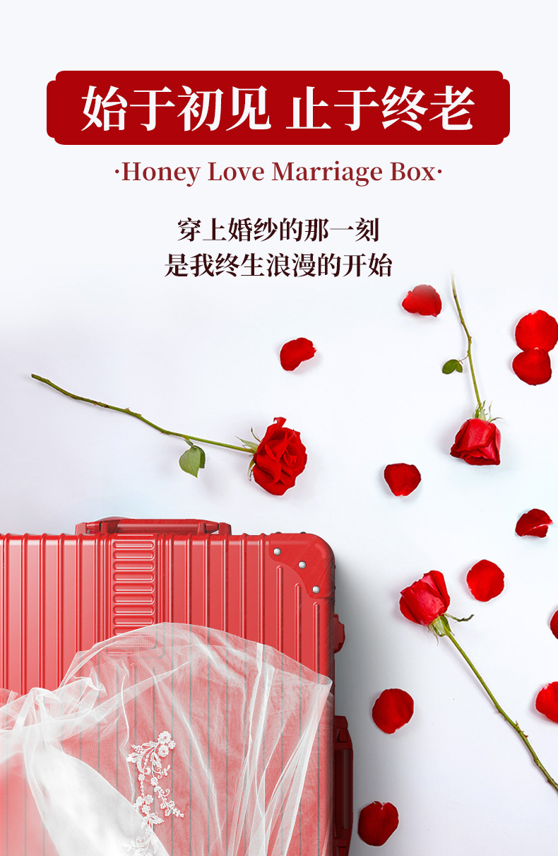 결혼식을위한 빨간색 가방 신부 트롤리 케이스 24inch dowry box travel code