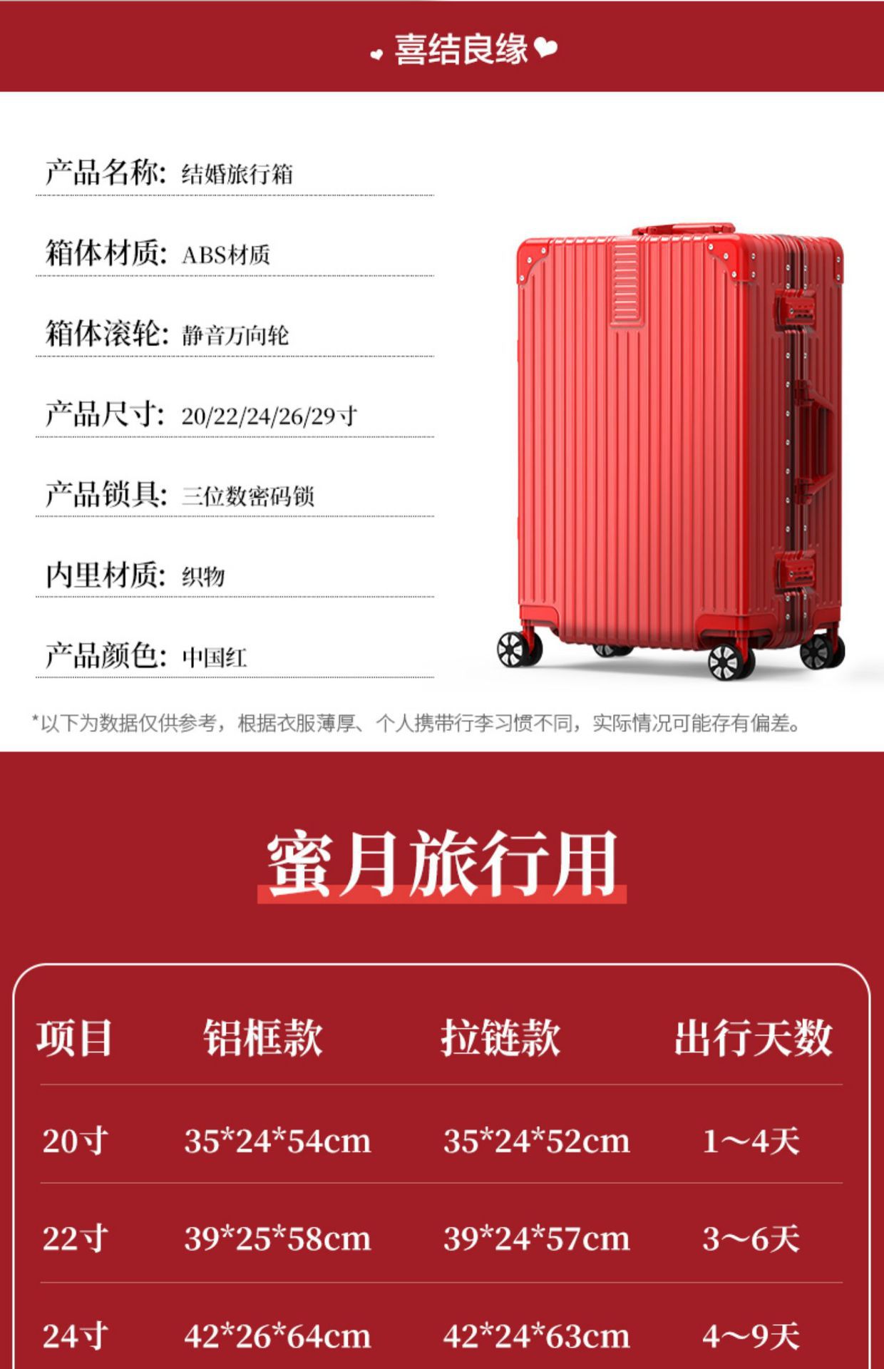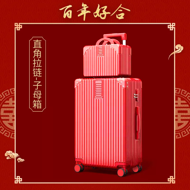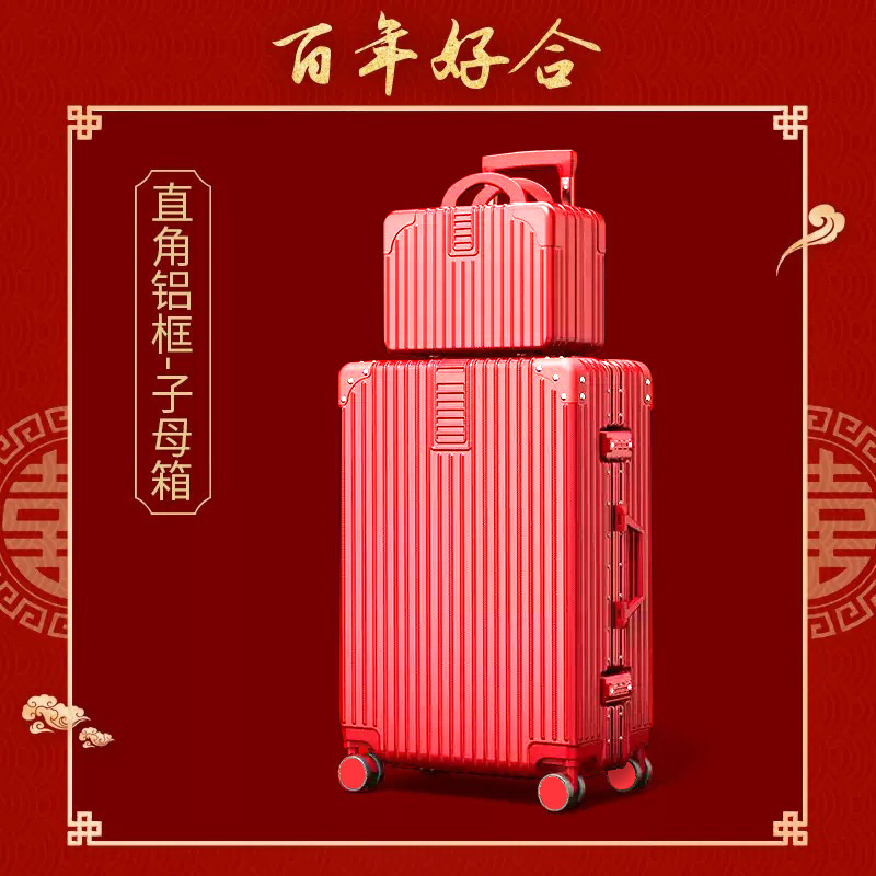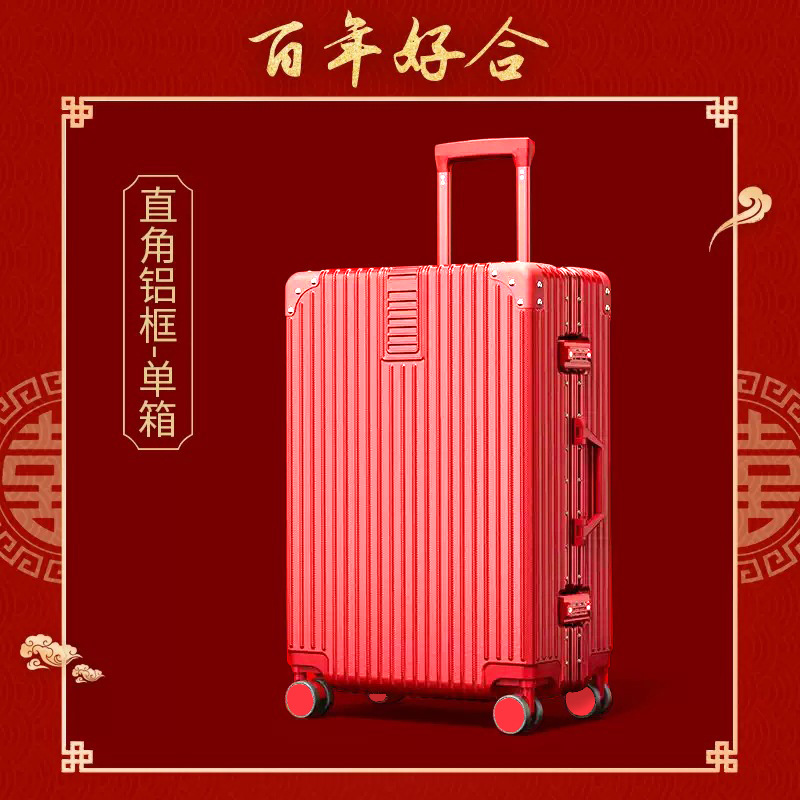결혼식을위한 빨간색 가방 신부 트롤리 케이스 24inch dowry box travel code스토어 가기