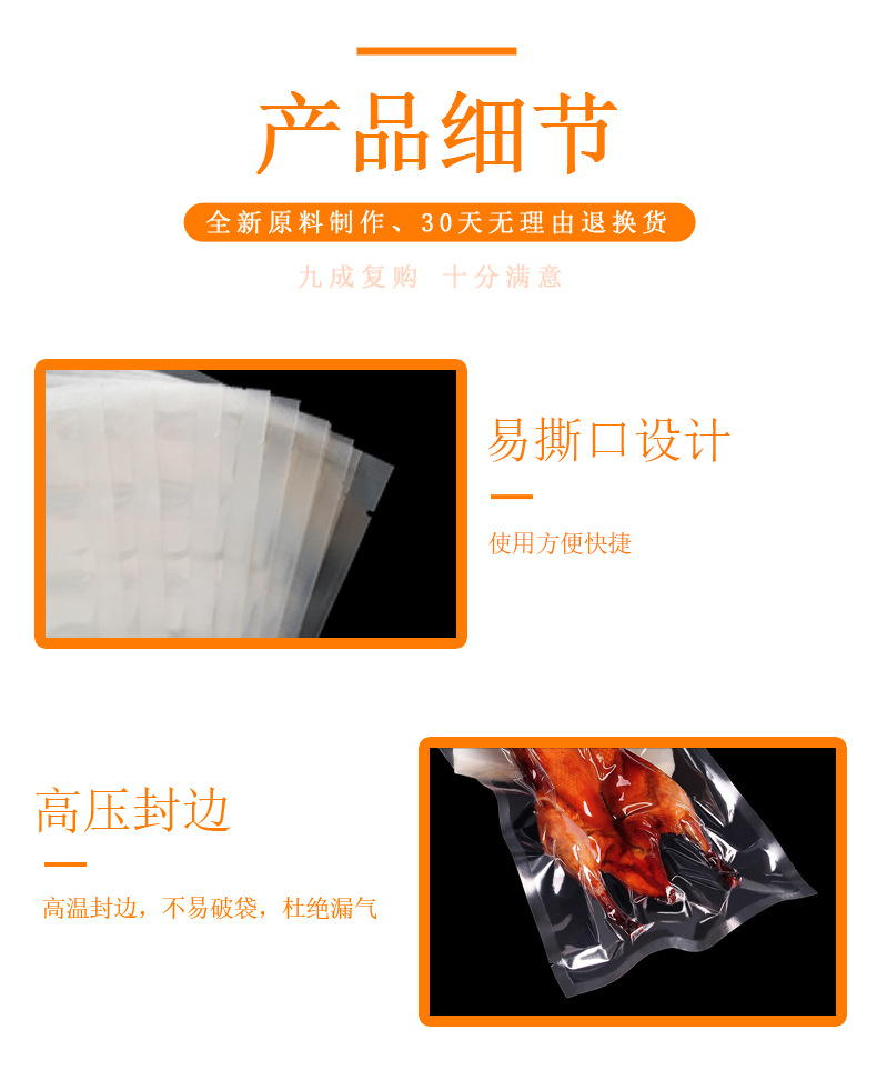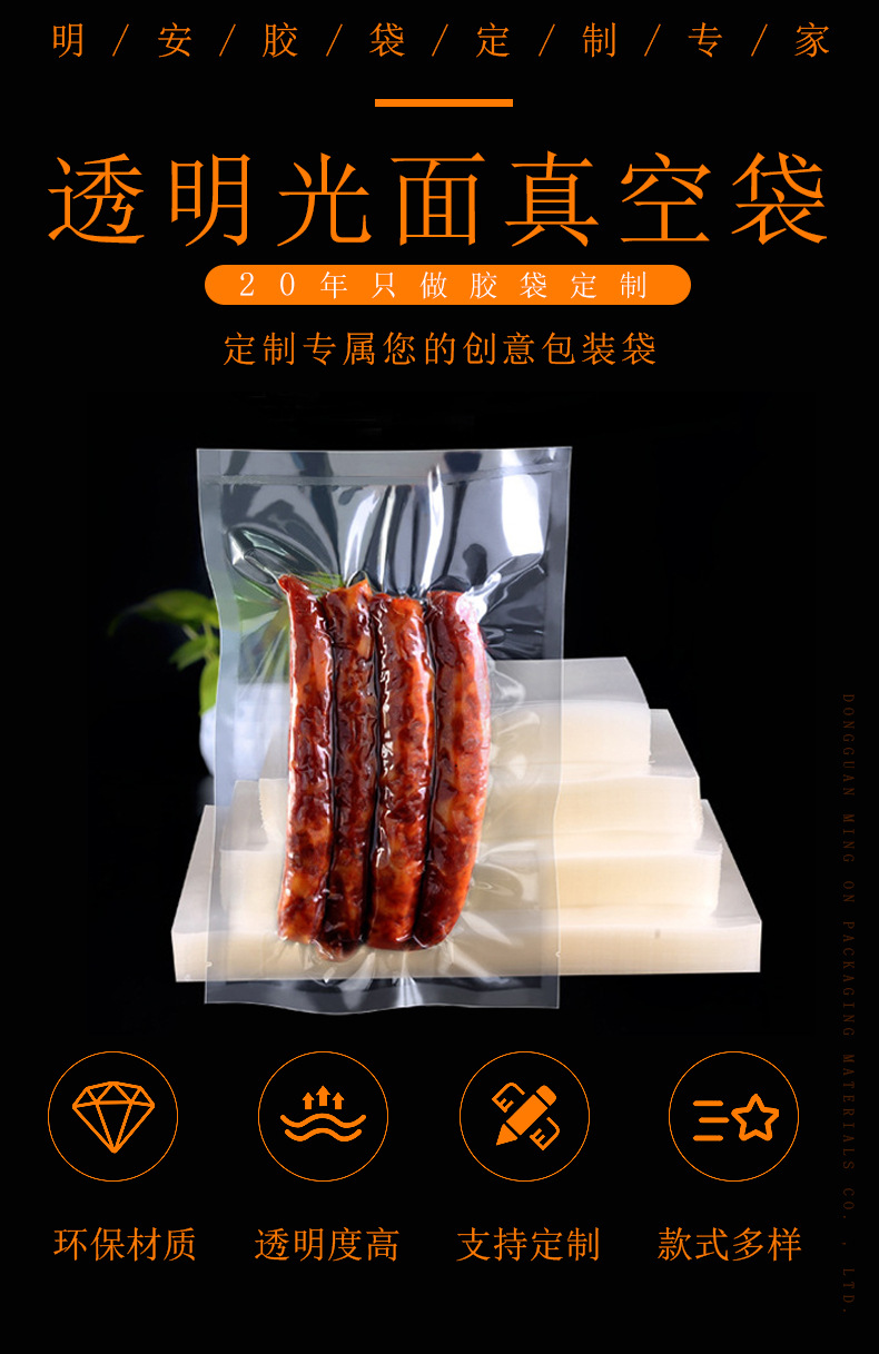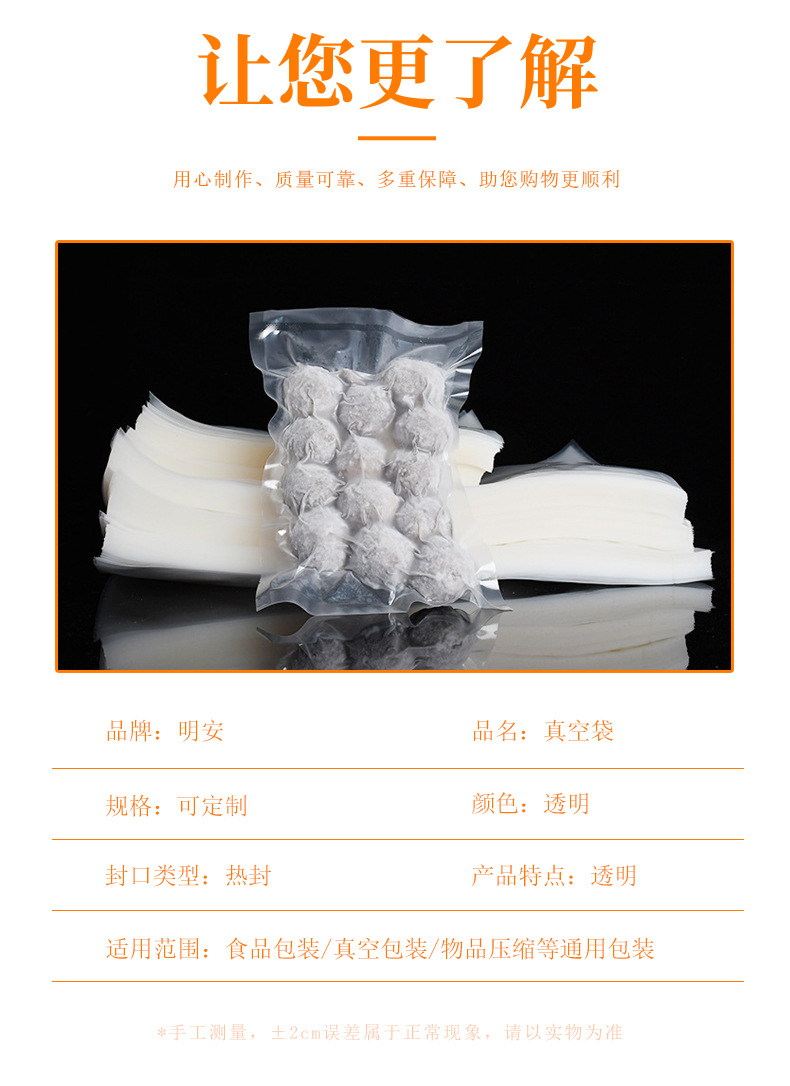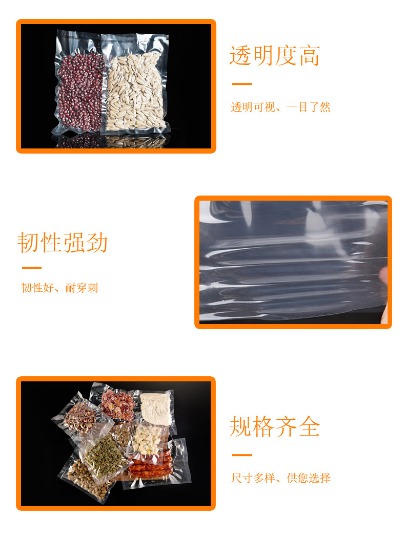 高透明真空包装保鲜密封口袋抽真空食品包装光面塑封袋 真空袋