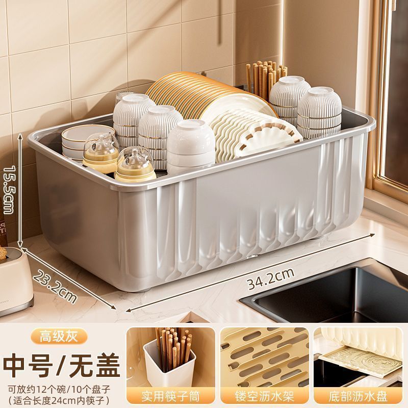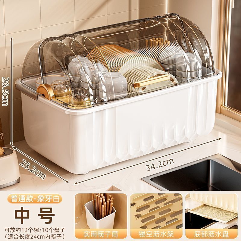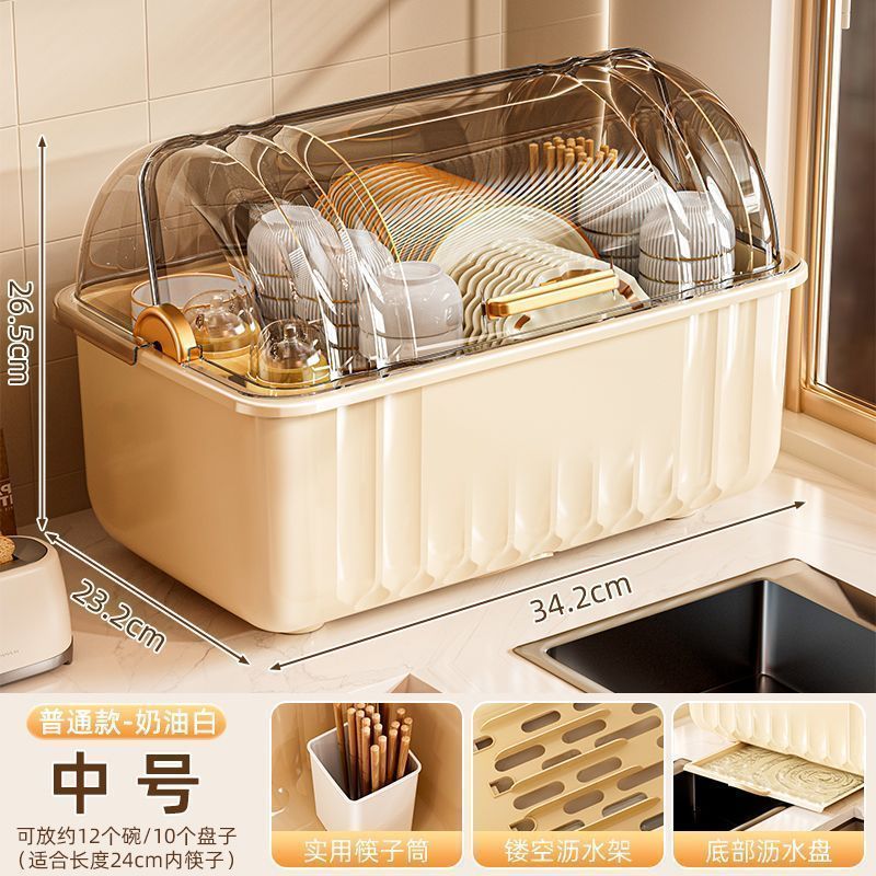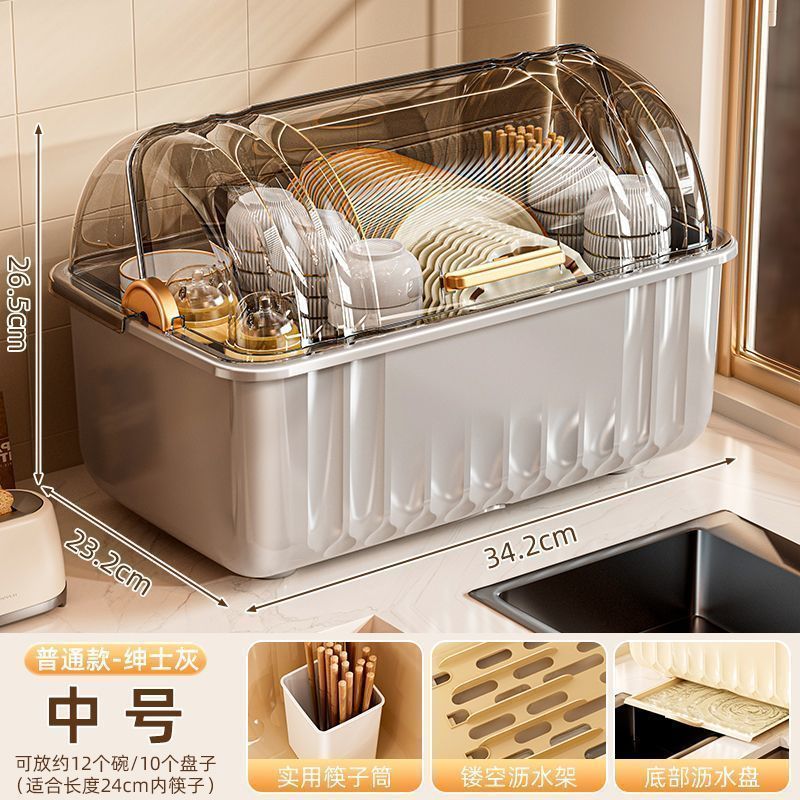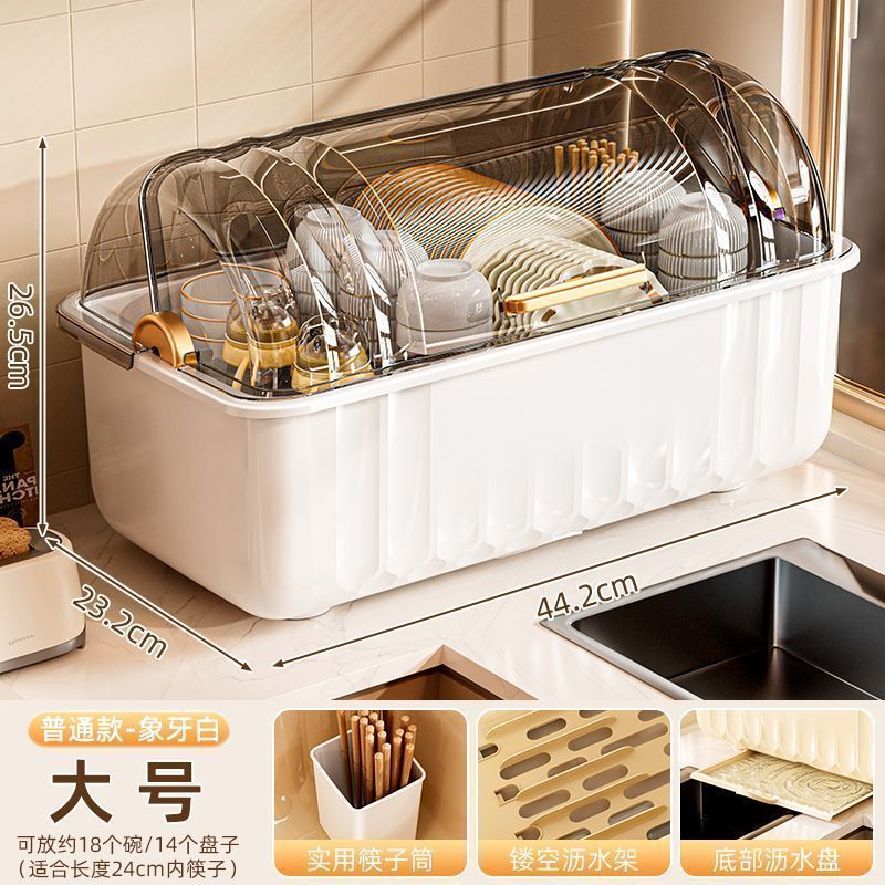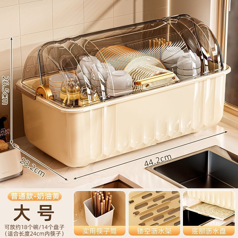 접시 보관함 찬장 뚜껑이 있는 가정용 주방 식기, 접시, 그릇 및 젓가락 보관함스토어 가기