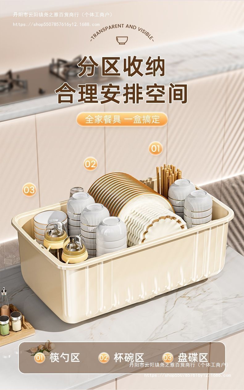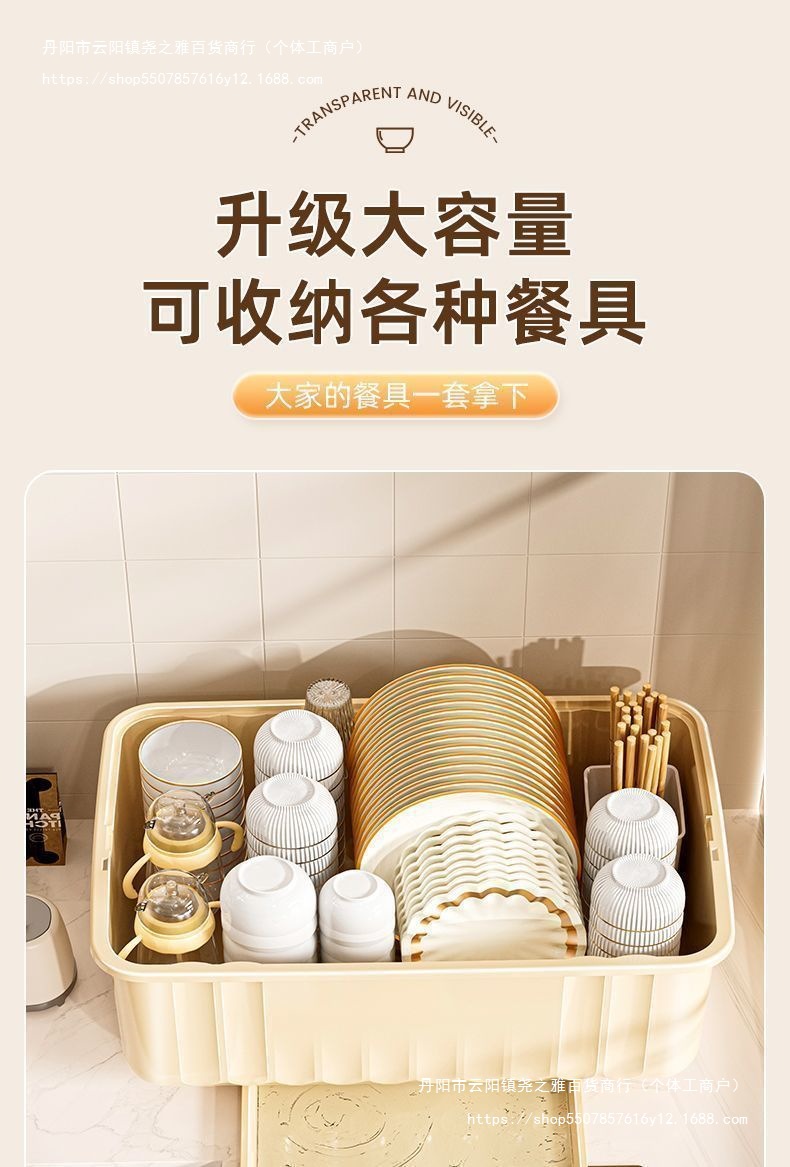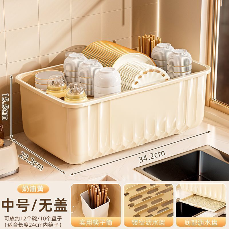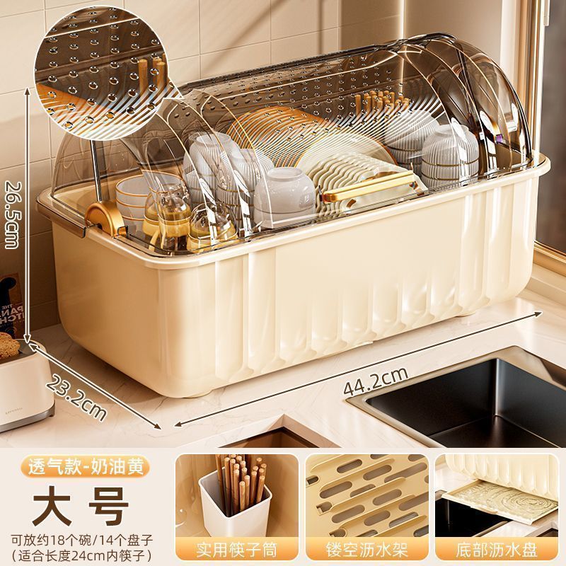 접시 보관함 찬장 뚜껑이 있는 가정용 주방 식기, 접시, 그릇 및 젓가락 보관함스토어 가기