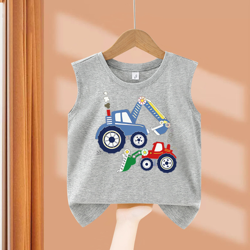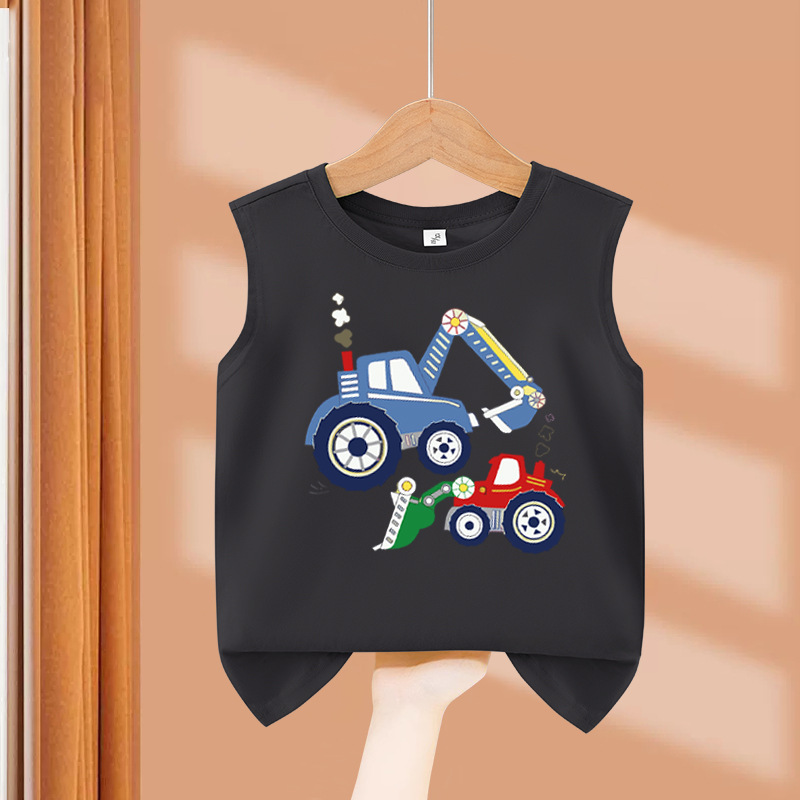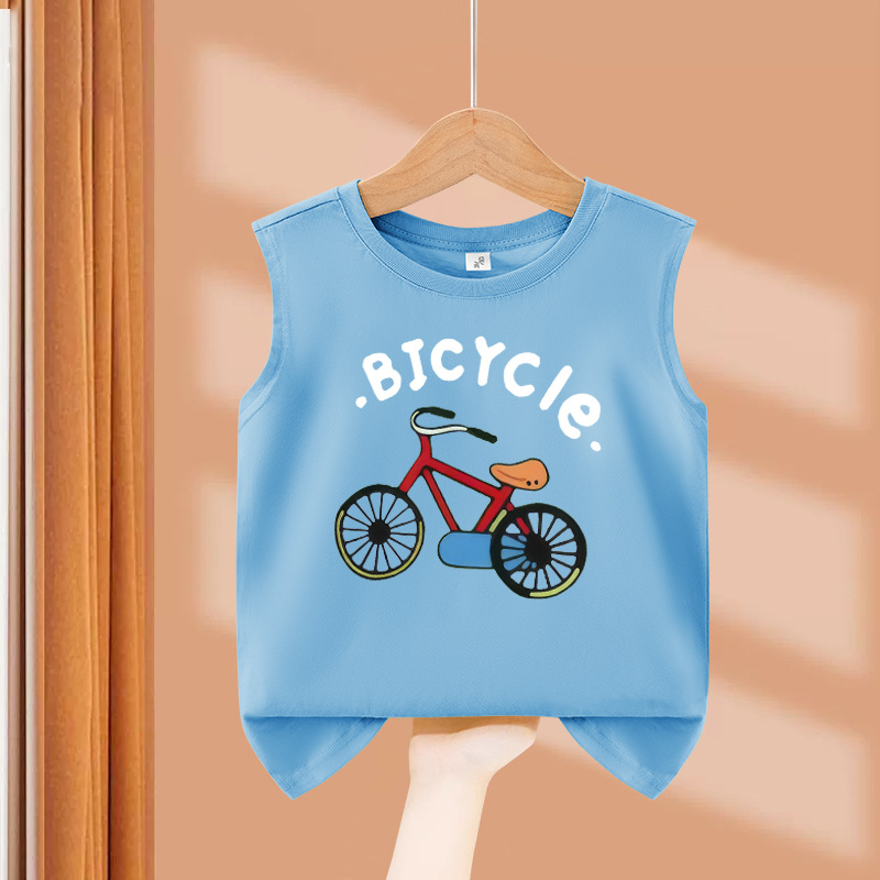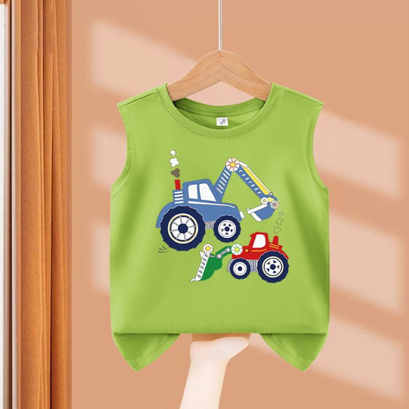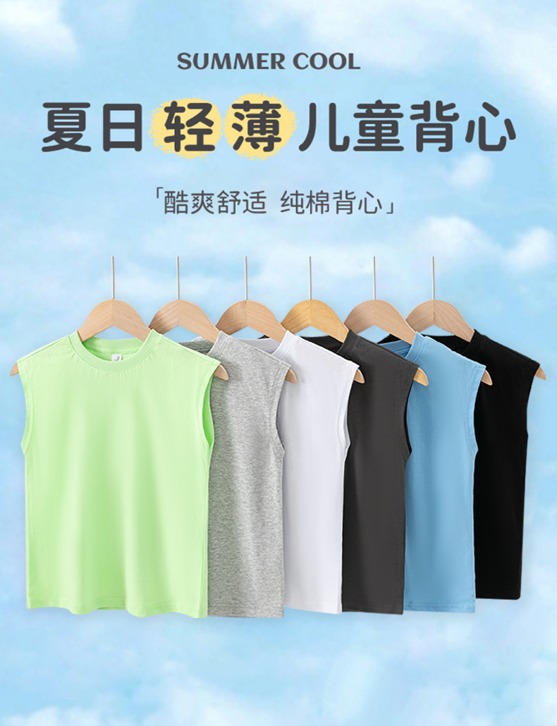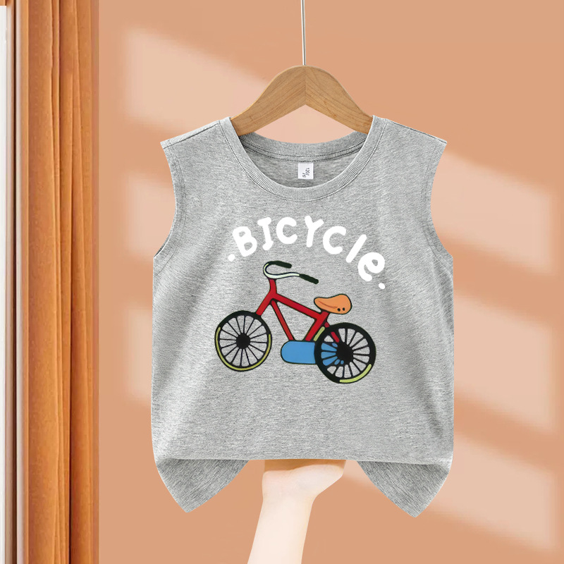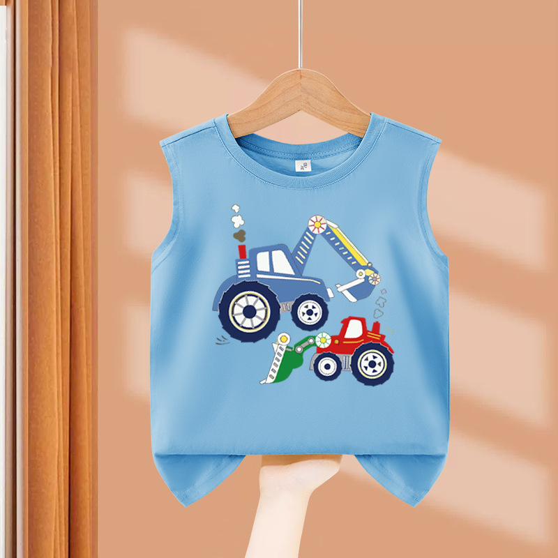 소년 순수 코튼 조끼 2025 새로운 어린이 민소매 조끼 여름 얇은 탑 인쇄 아기 캐주얼 아동 의류스토어 가기