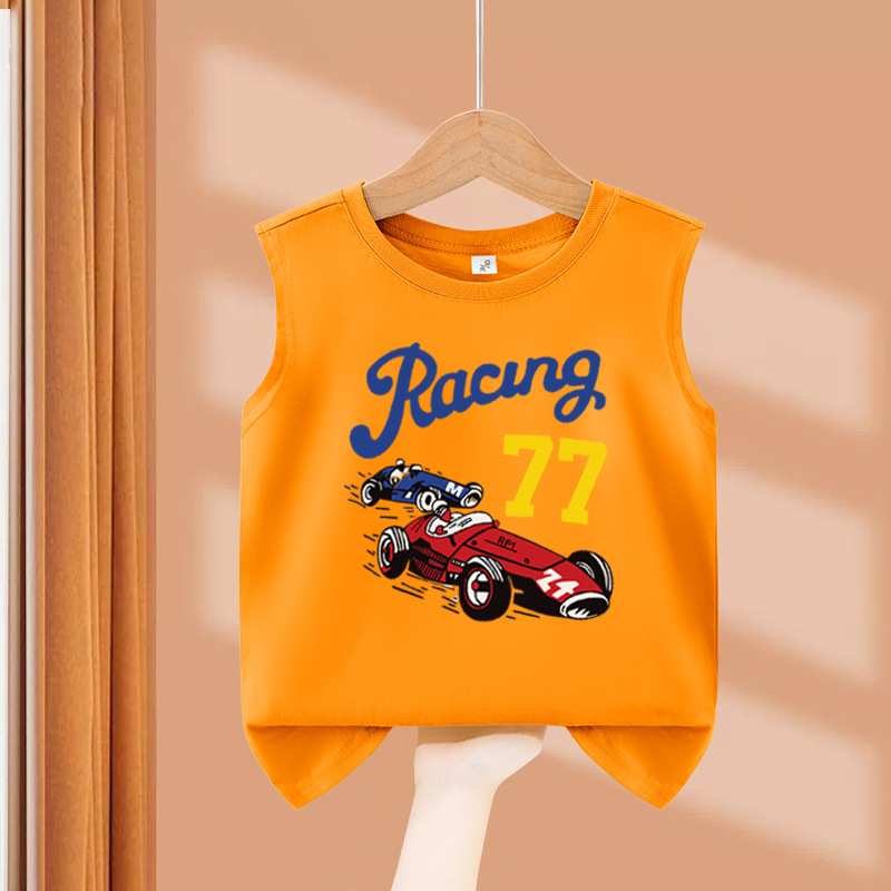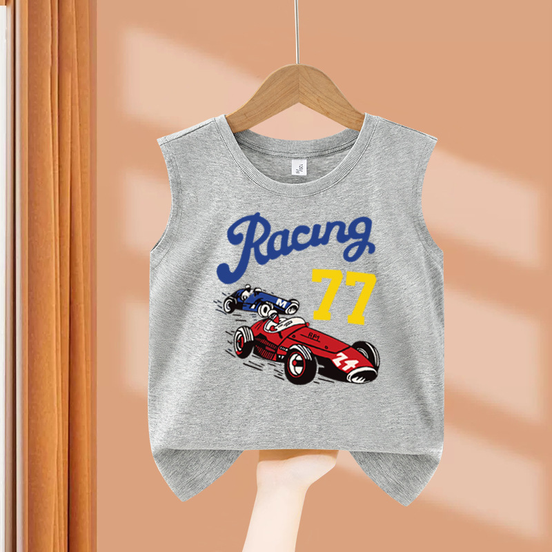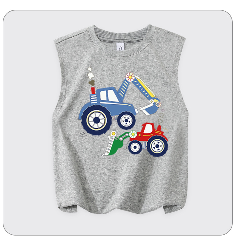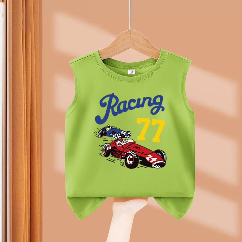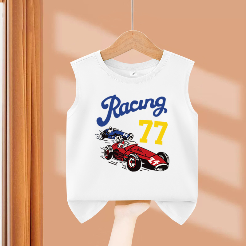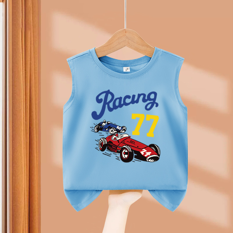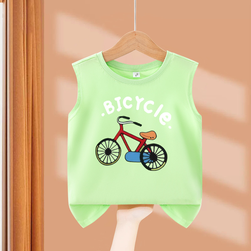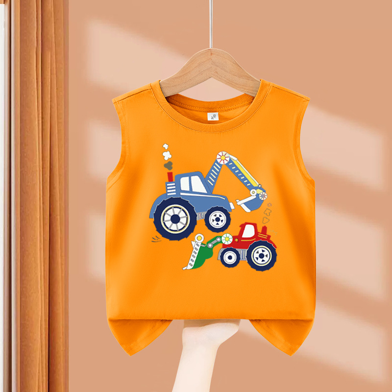 소년 순수 코튼 조끼 2025 새로운 어린이 민소매 조끼 여름 얇은 탑 인쇄 아기 캐주얼 아동 의류스토어 가기