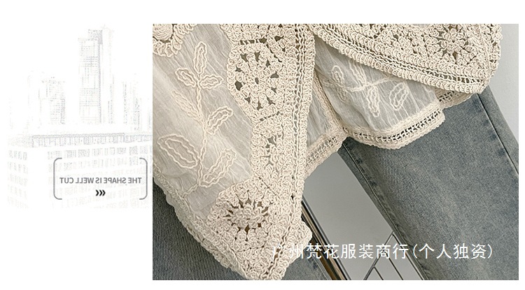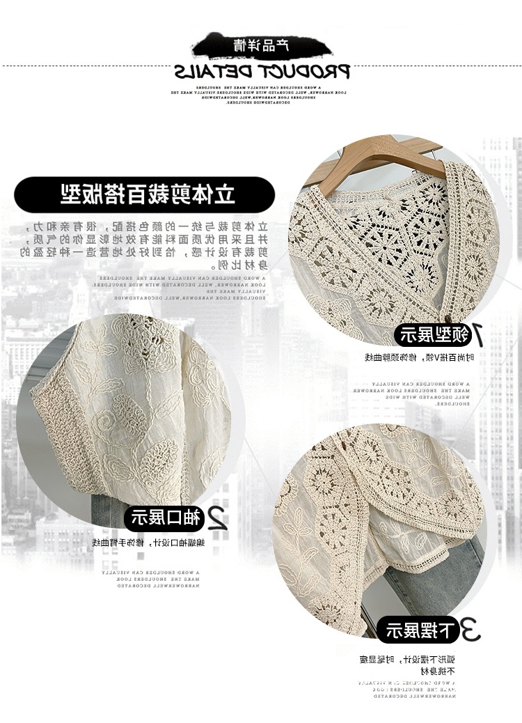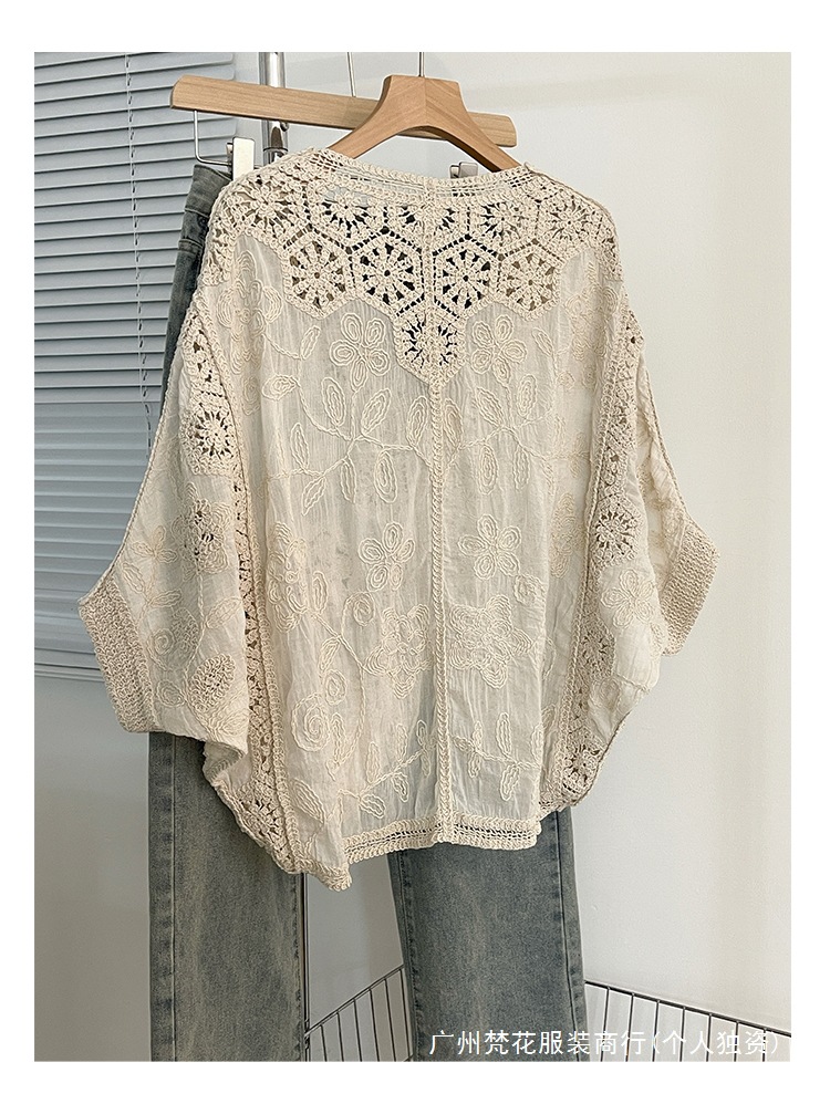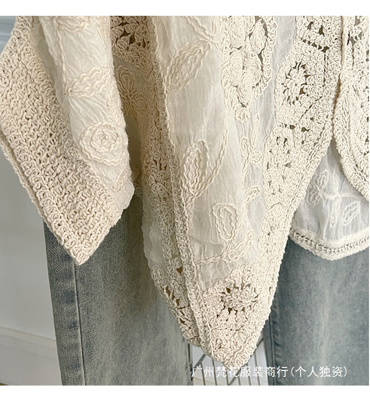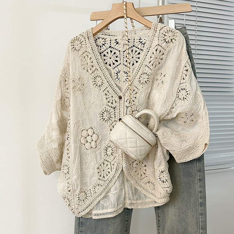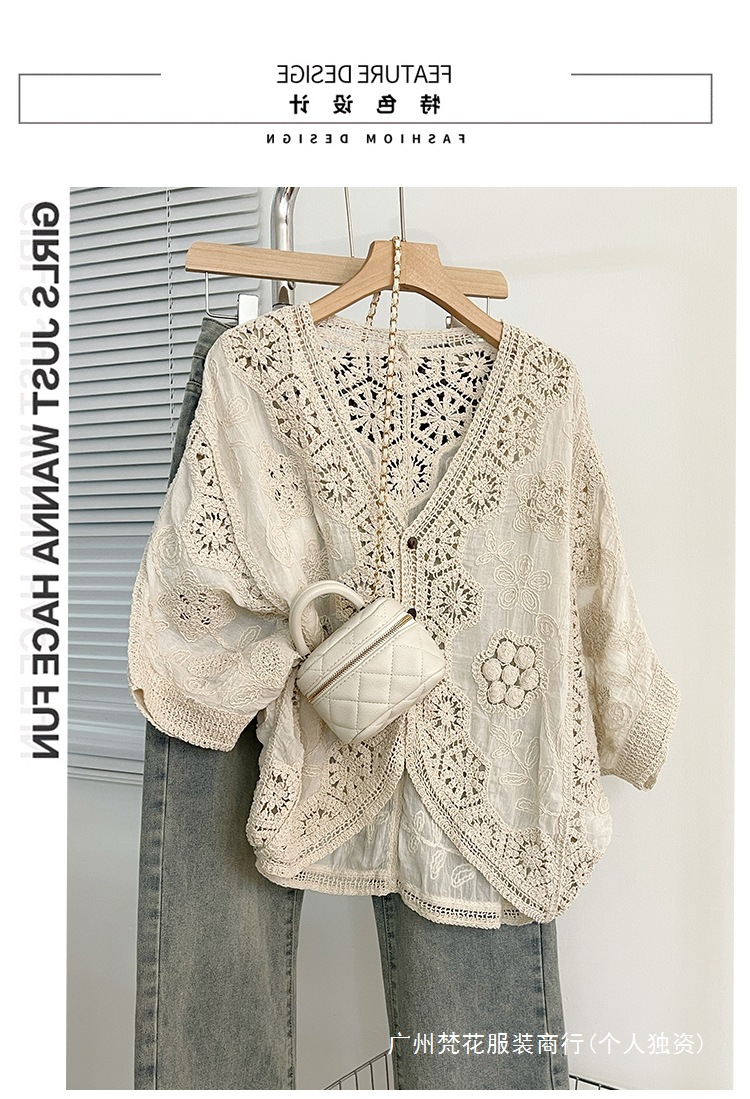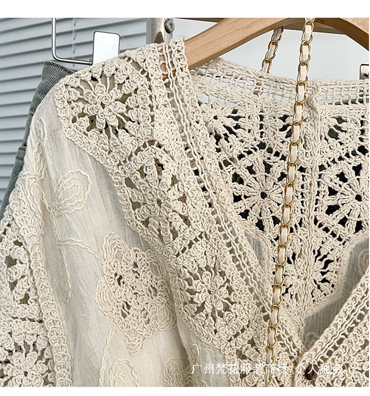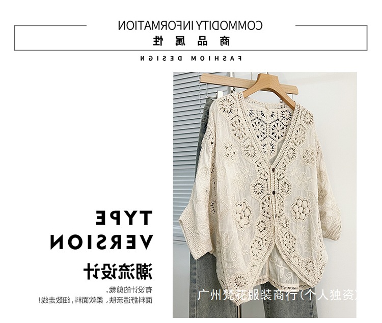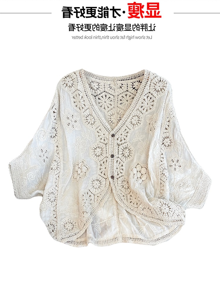 실제 사진 ~ 플러스 사이즈 여성 신작 브이넥 크로셰 중공 7부 소매 자외선 차단 가디건 뚱뚱한 mm 슬리밍 아우터 탑