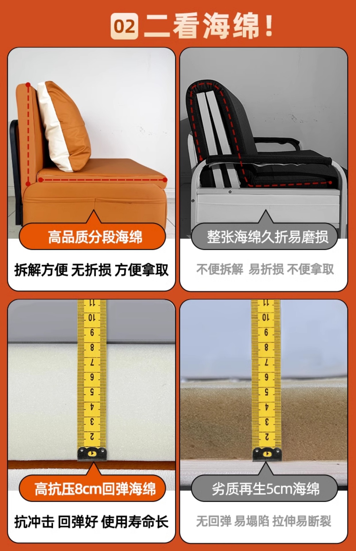 • [수납 없는 스펀지 모델] 와이드 0.6m (화이트+오렌지)