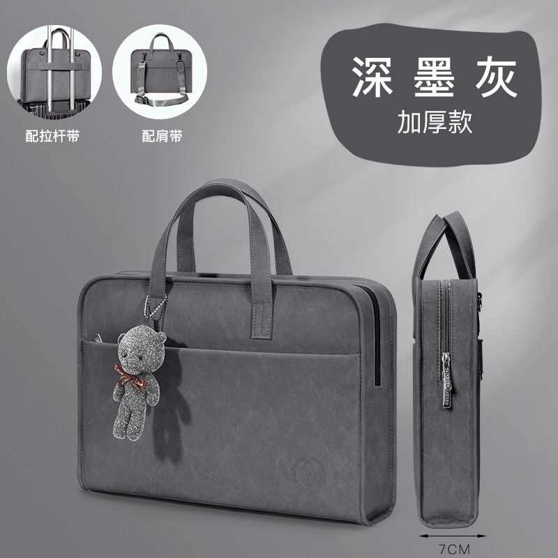 • "차분한 다크 그레이 - 대용량 두꺼워진 모델 ""어깨끈 + 트롤리 스트랩 포함"" - 무료 곰"