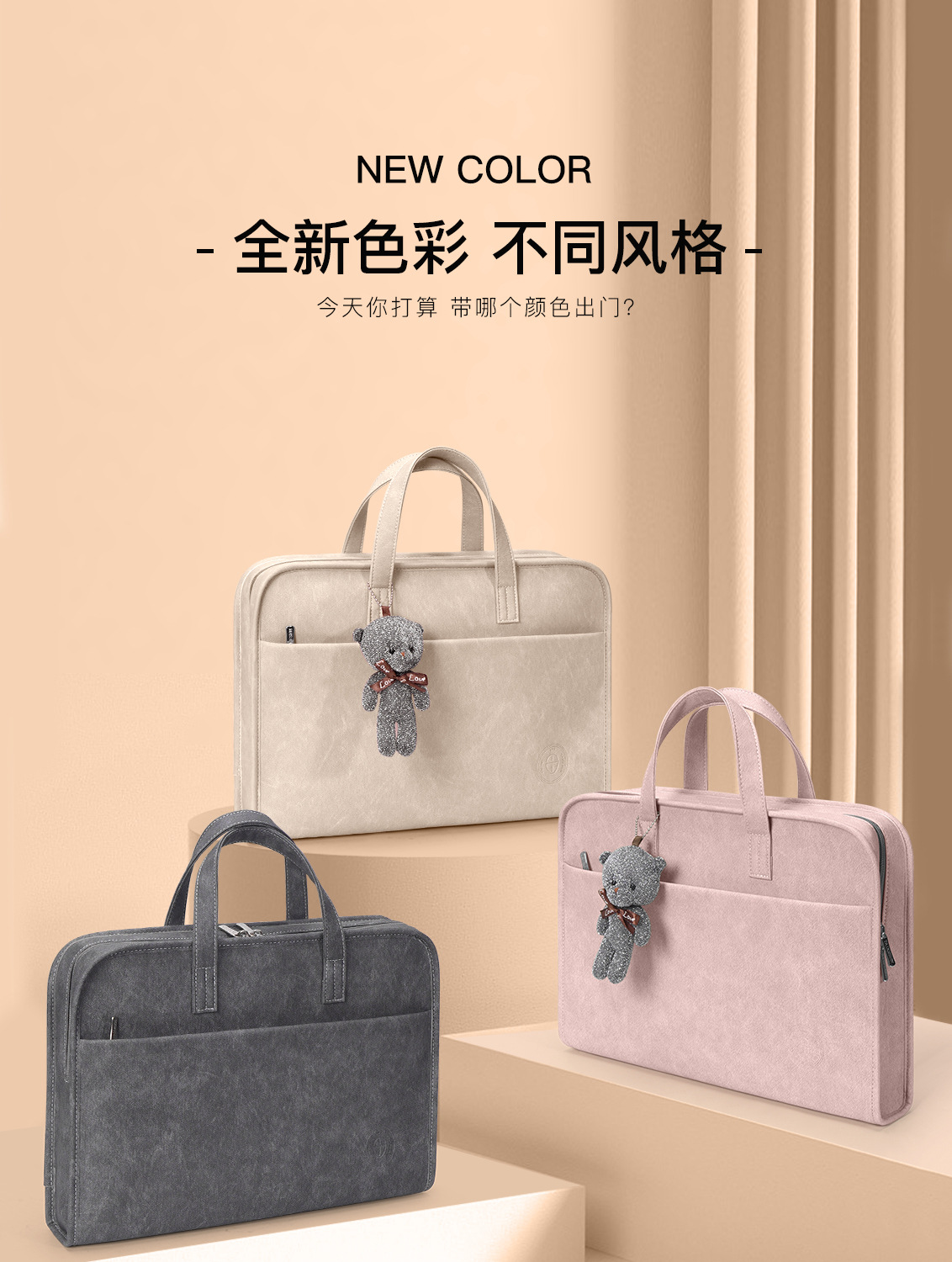 • "우아한 로즈 핑크 - 대용량 업그레이드 모델 ""벨벳 에어백 수납공간 + 어깨끈 + 트롤리 스트랩 장착"" - 무료 곰"