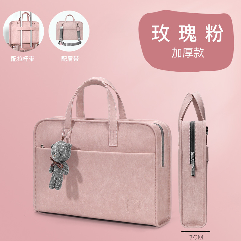 • "우아한 로즈 핑크 대용량 - 두꺼운 모델 ""어깨 끈 + 트롤리 스트랩 포함"" - 무료 곰"