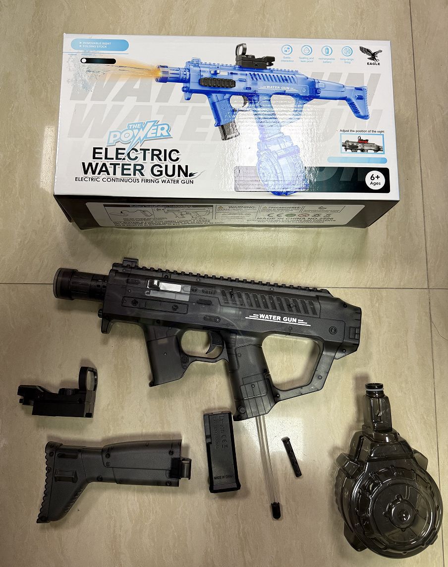 Huowu MK 물총 전기 고압 초대형 용량 자동 물 흡입 쿨 플래시 라이트 연결 연속 물총 Amazon스토어 가기