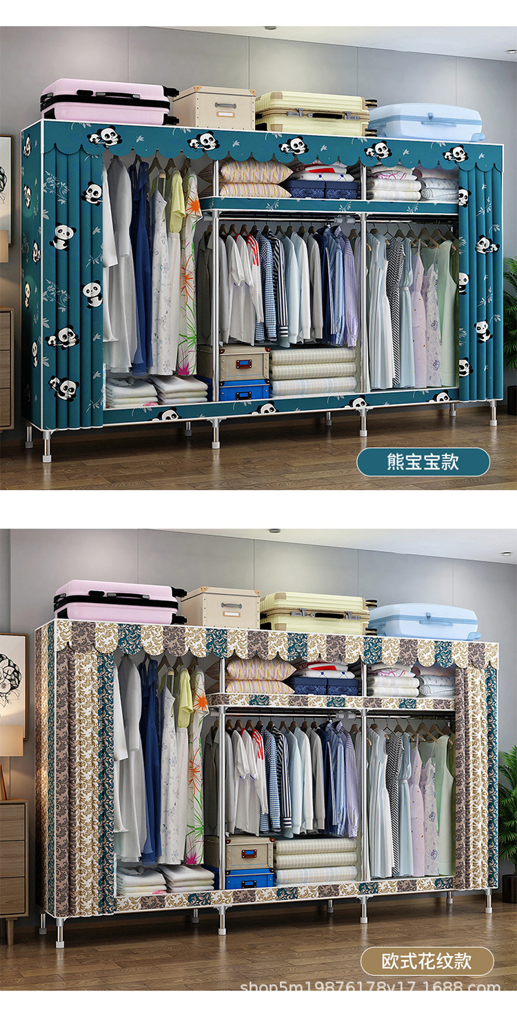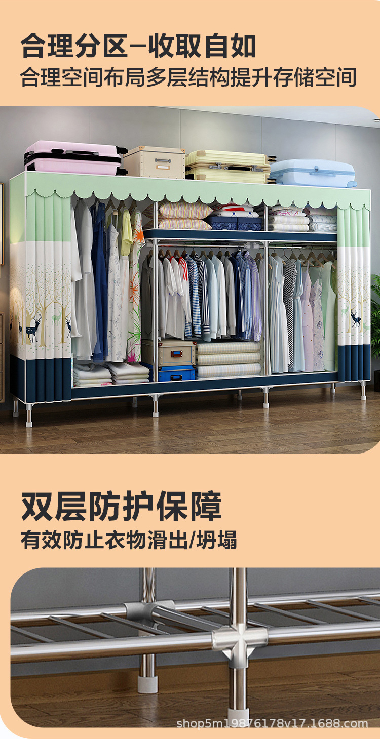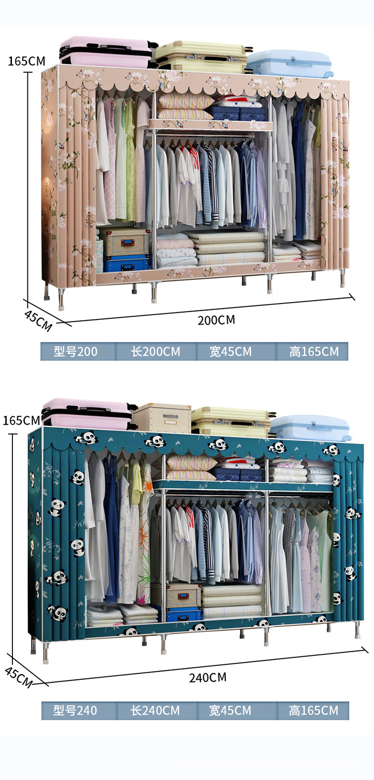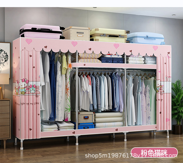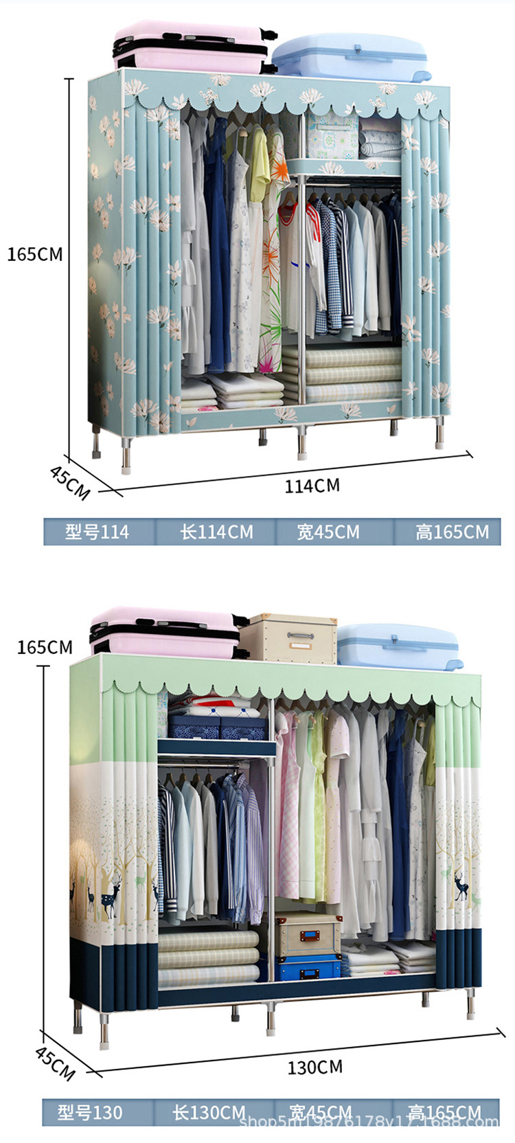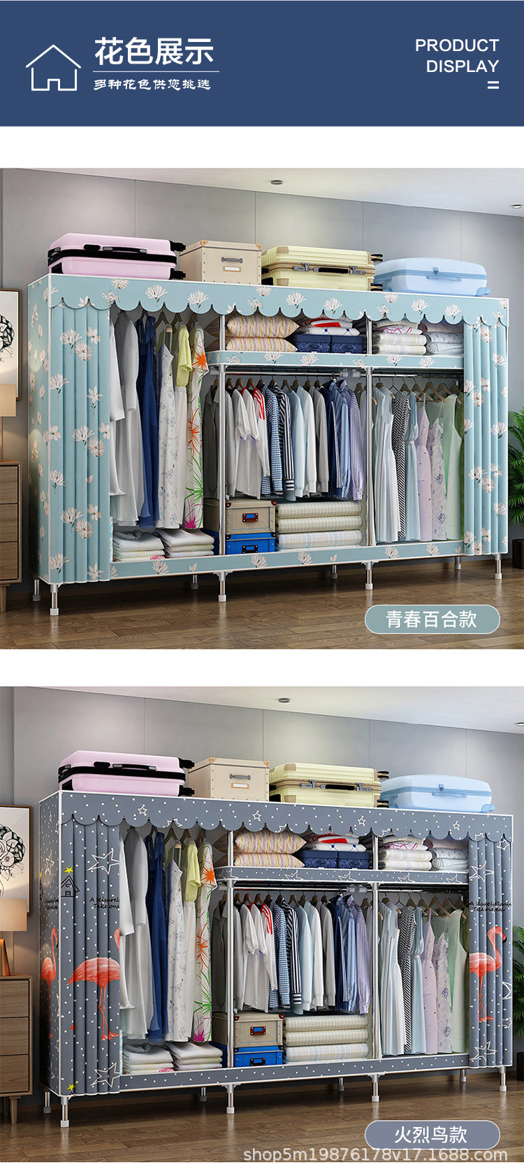간단한 옷장 합금 조인트 강철 프레임 두꺼운 천 옷장 임대실 특수 조립 보관 옷장스토어 가기