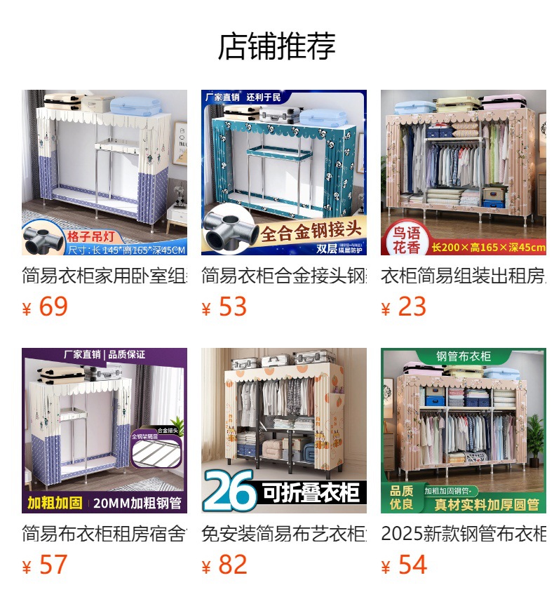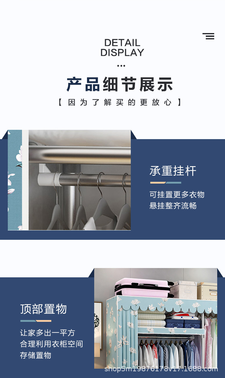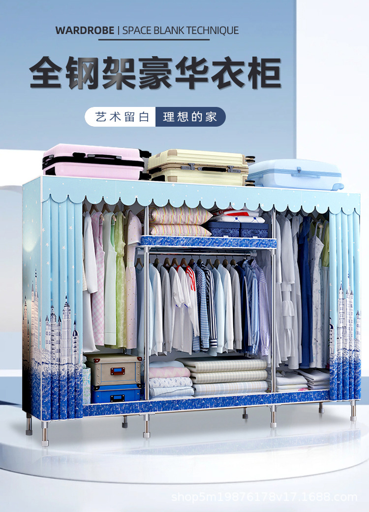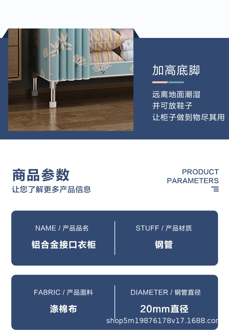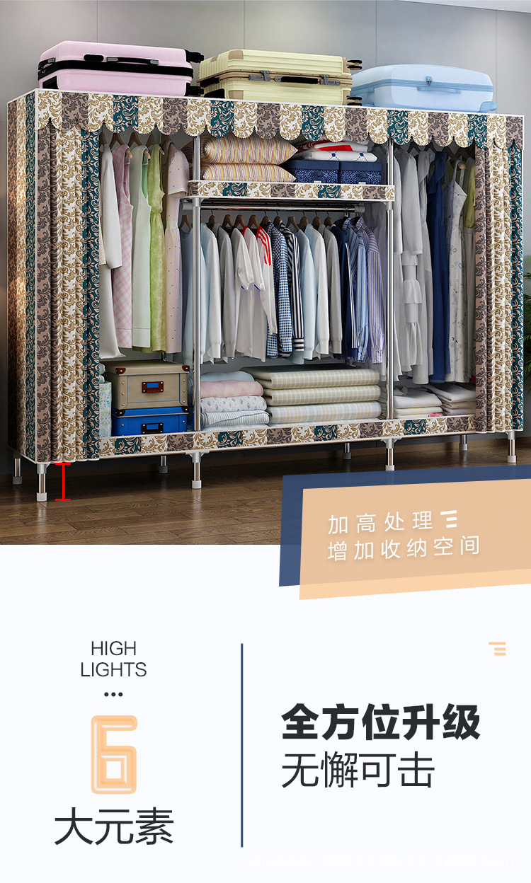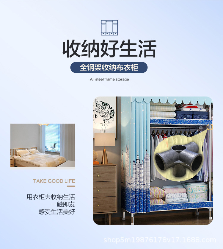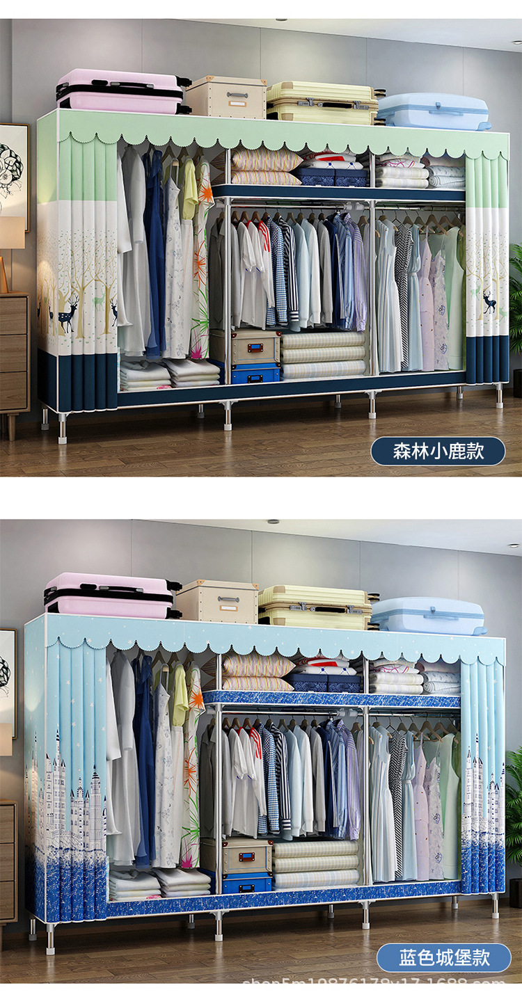 간단한 옷장 합금 조인트 강철 프레임 두꺼운 천 옷장 임대실 특수 조립 보관 옷장스토어 가기