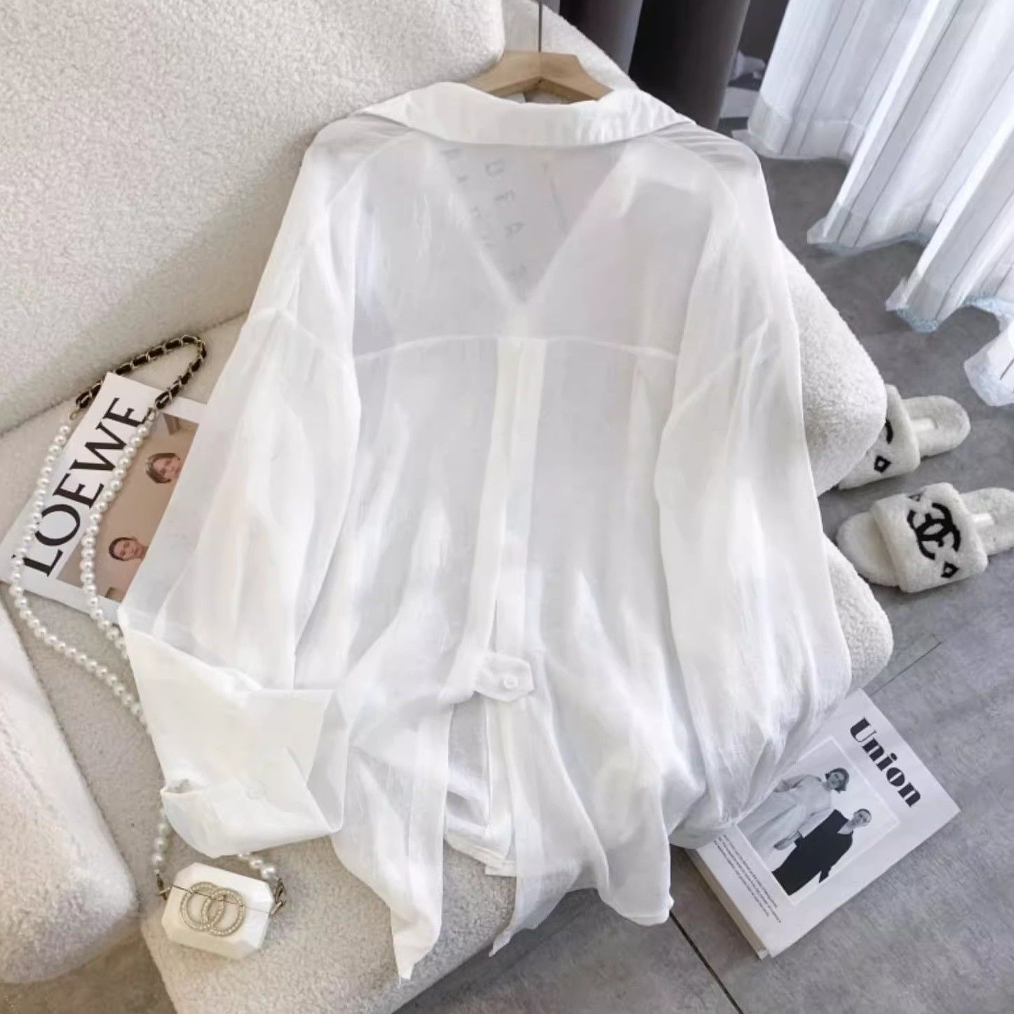 여성용 중간 길이 자외선 차단 셔츠, 여름용 얇은 아이스 실크 가디건 셔츠, 여름용 쉬폰 셔츠, 여성용 백리스 탑스토어 가기