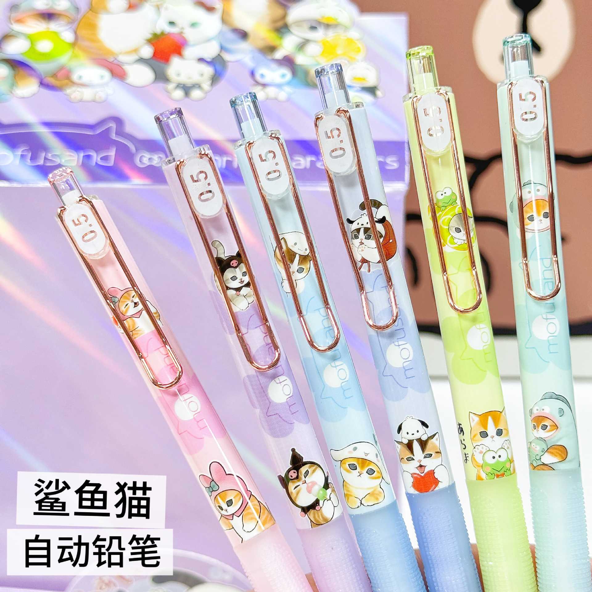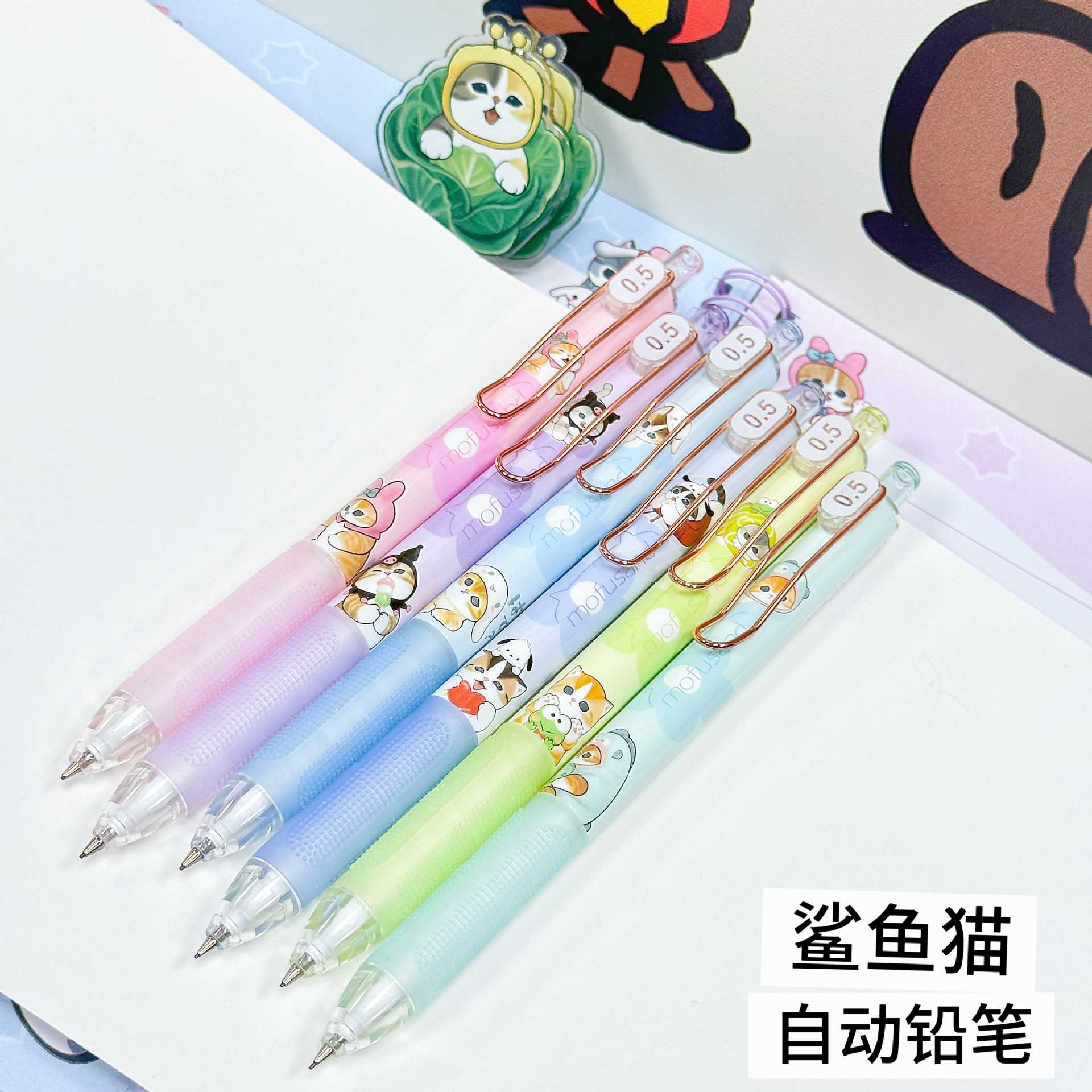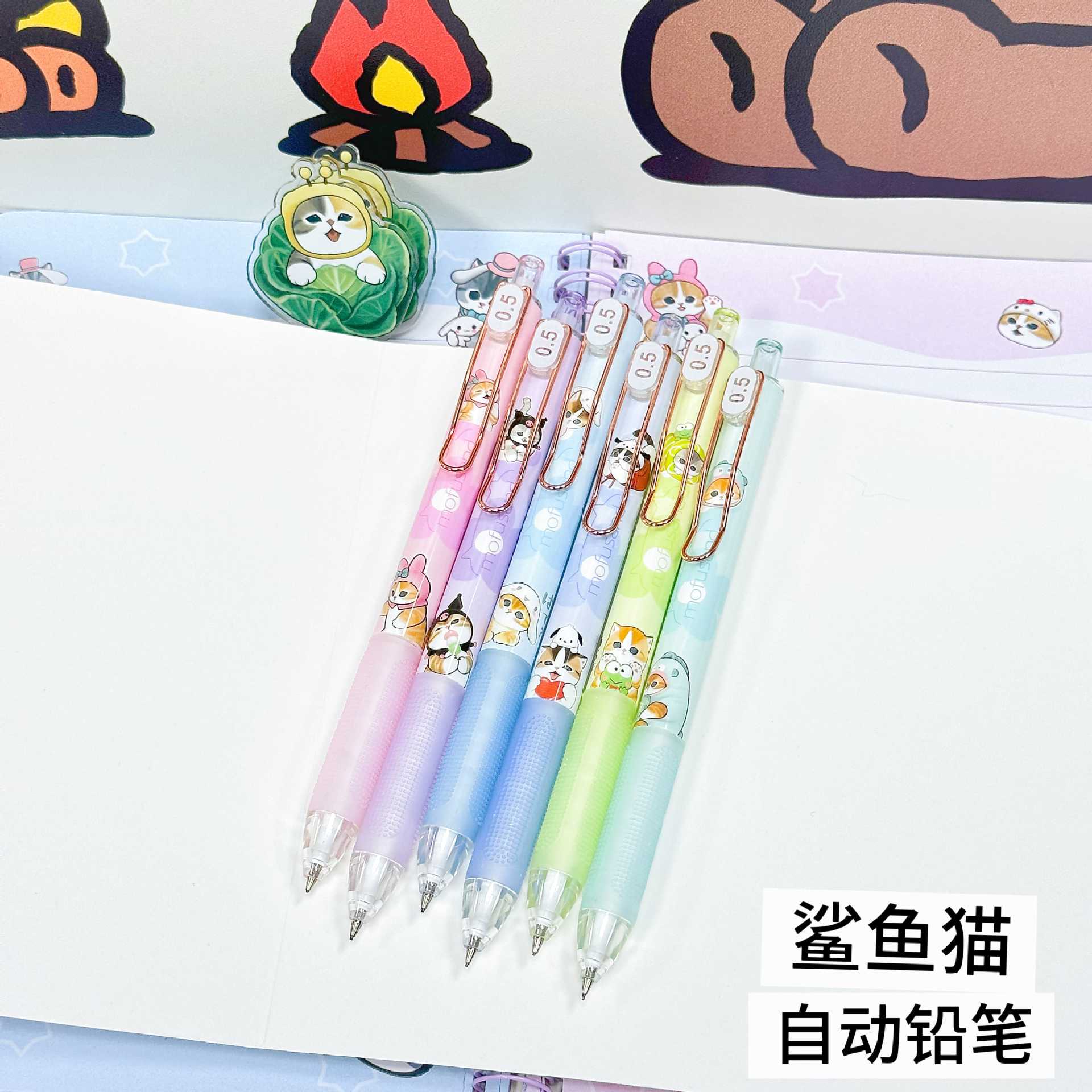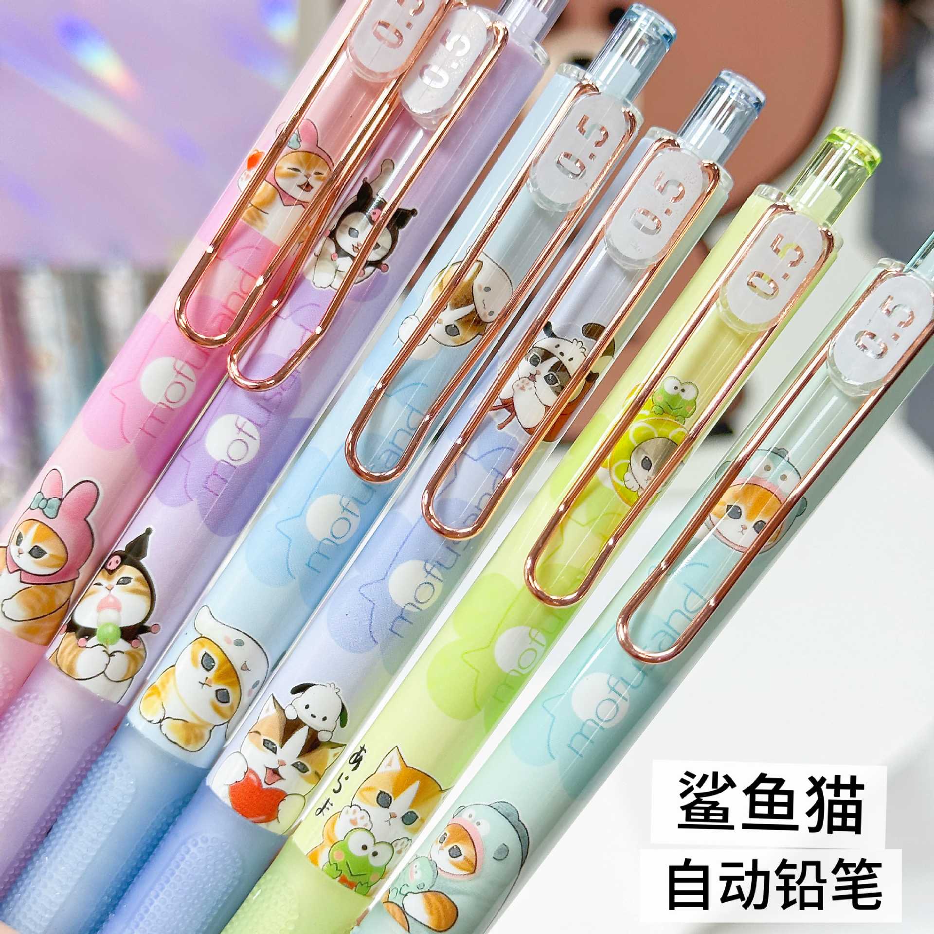 YSWH 상어 고양이 시리즈 자동 연필 귀여운 고양이 Fushandi 쓰기 연필이 깨지기 쉽지 않음 학생 활동 연필