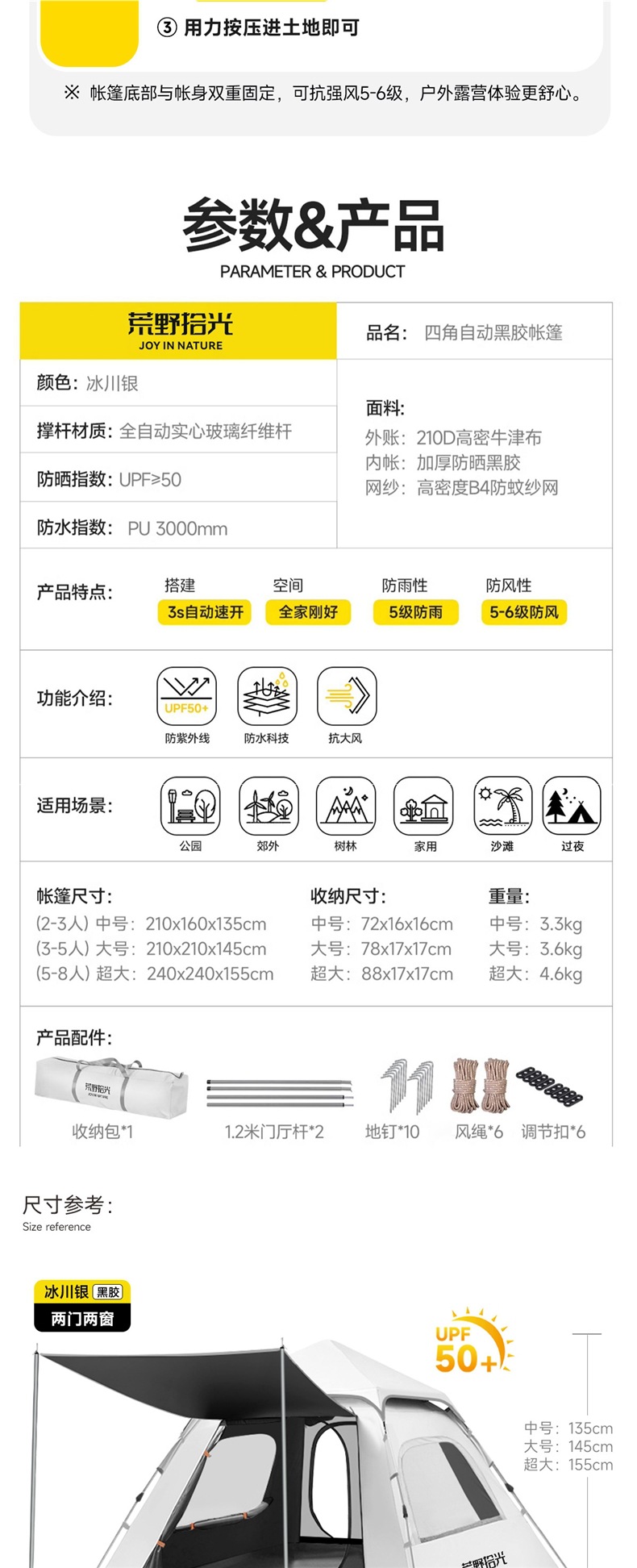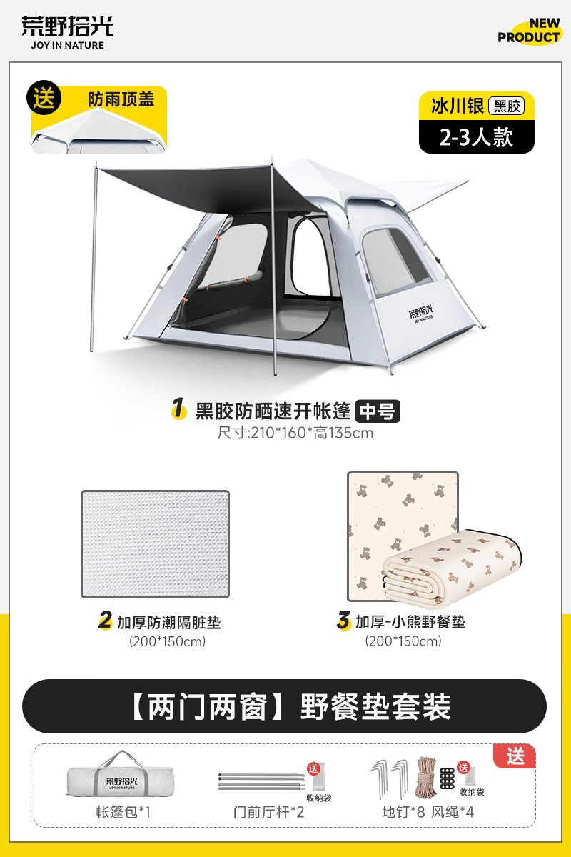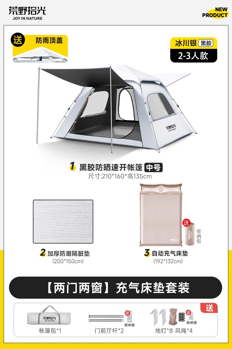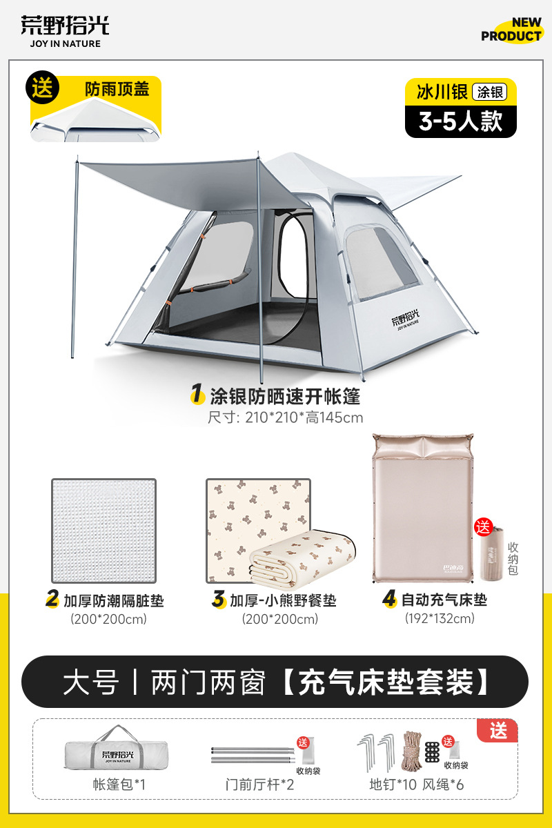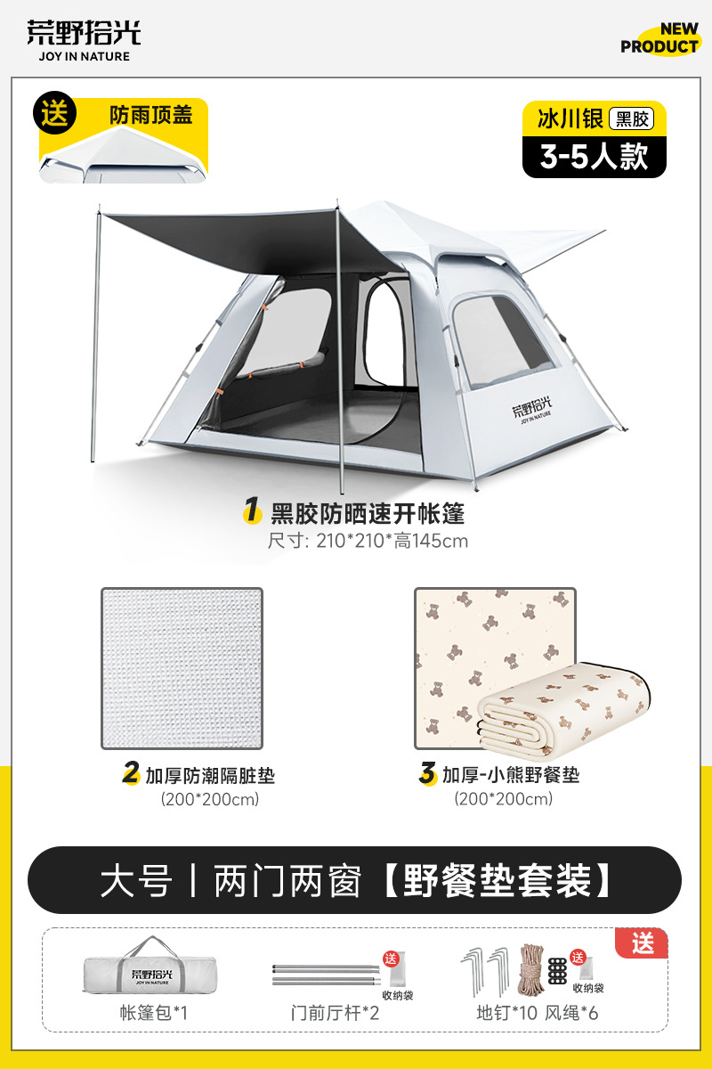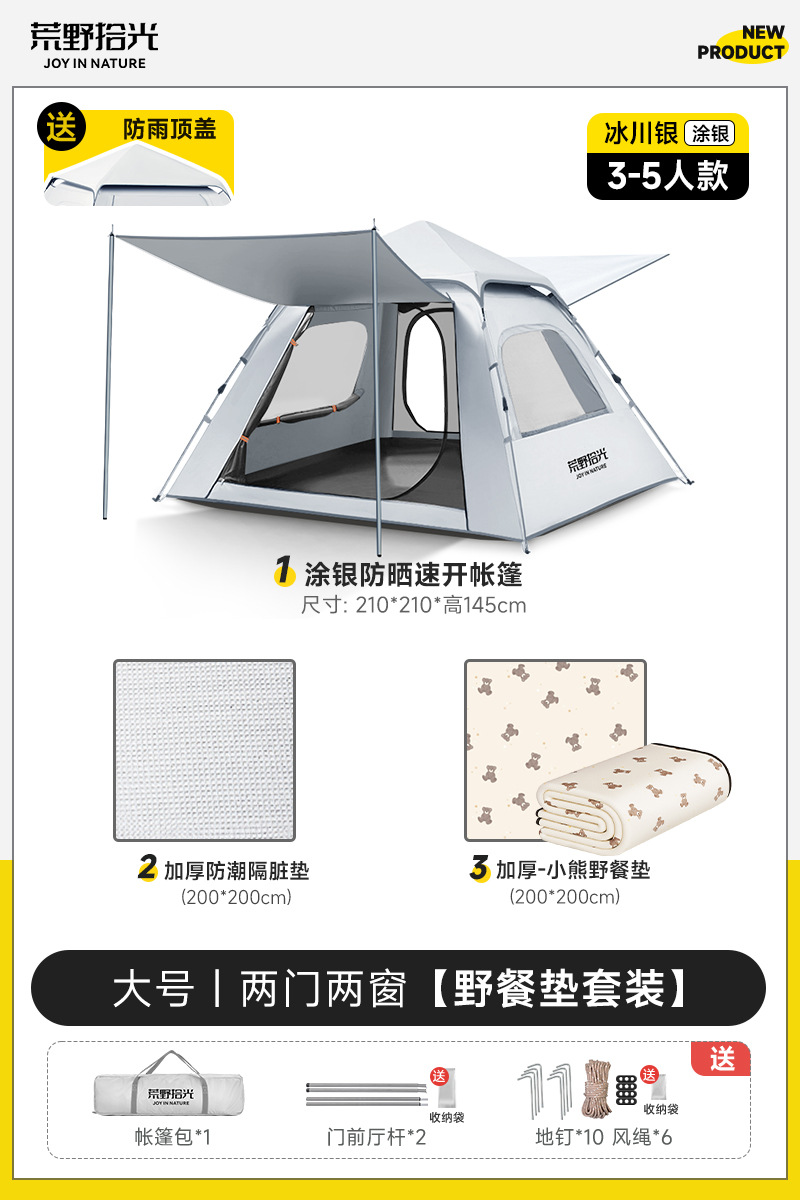 ✅ 텐트 야외 접이식 휴대용 캠핑 밤새도록 비로부터 보호 두꺼운 캠핑 장비 비닐 차양 완전 자동 속도스토어 가기
