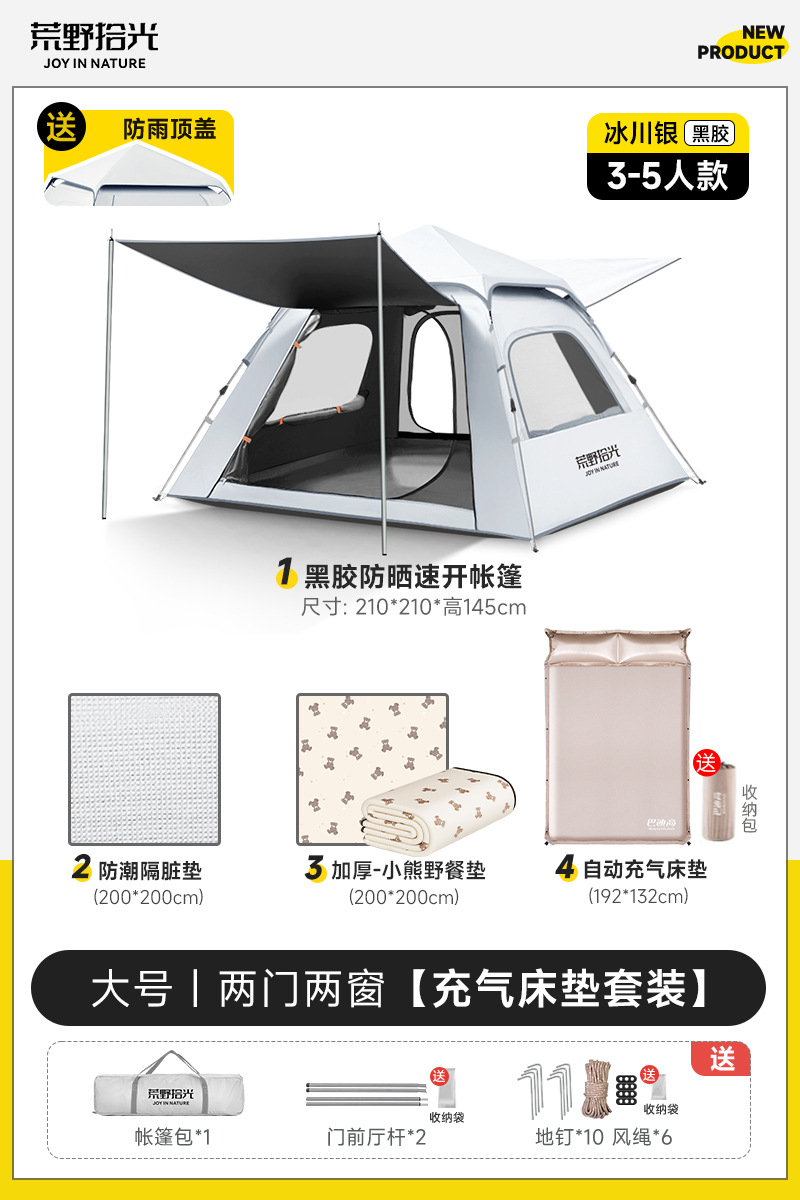 ✅ 텐트 야외 접이식 휴대용 캠핑 밤새도록 비로부터 보호 두꺼운 캠핑 장비 비닐 차양 완전 자동 속도