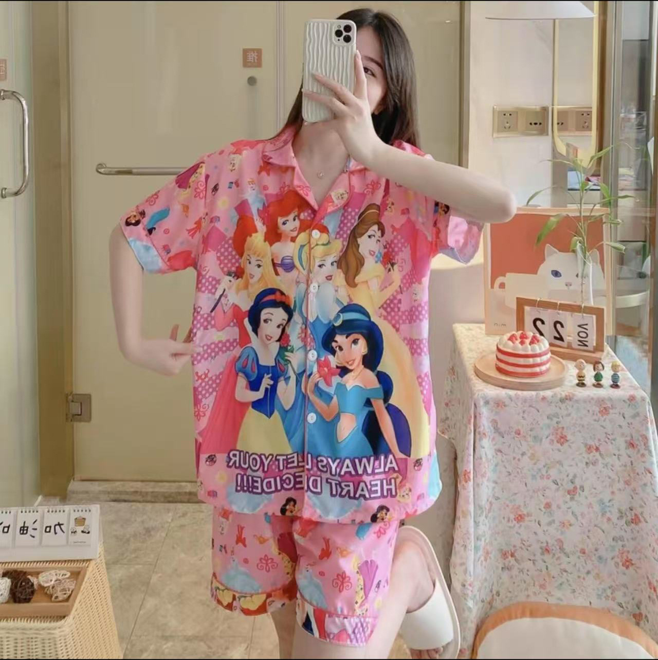 东南亚跨境2025年开衫公主睡衣女套装定位卡通加肥加大家居服