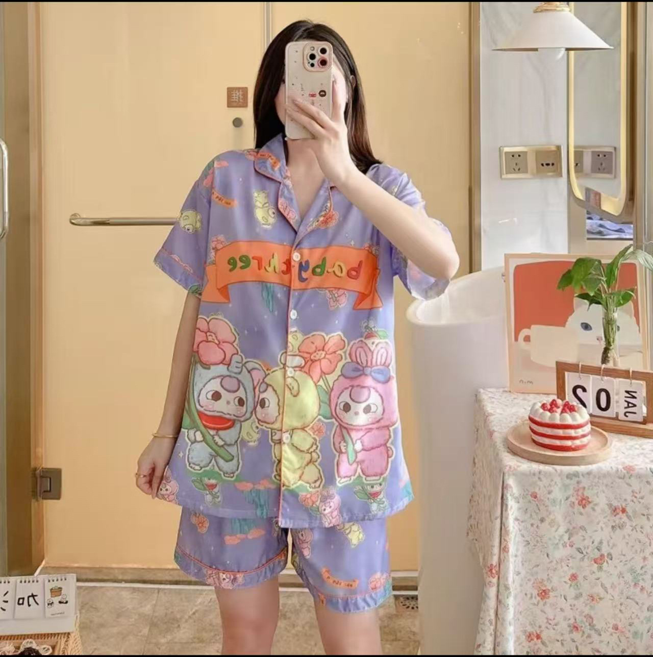 동남아시아 크로스보더 여아용 2025년형 카디건 공주풍 아동 잠옷 세트 반팔 만화 귀여운 홈웨어스토어 가기