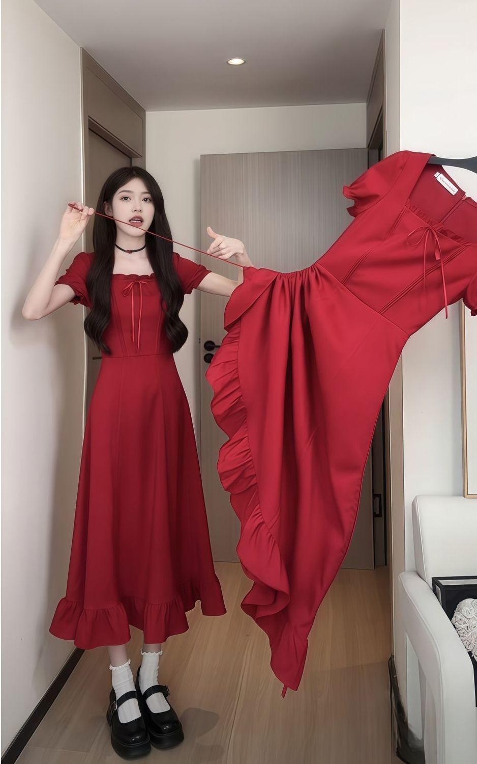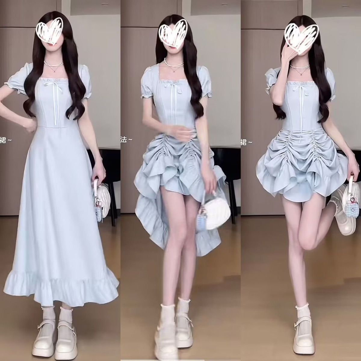 플러스 사이즈 디자인 패셔너블 드레스 3웨어 드로스트링 미드 스커트 여성 여름 허리 스퀘어 칼라 아름다운 A라인 롱 스커트스토어 가기