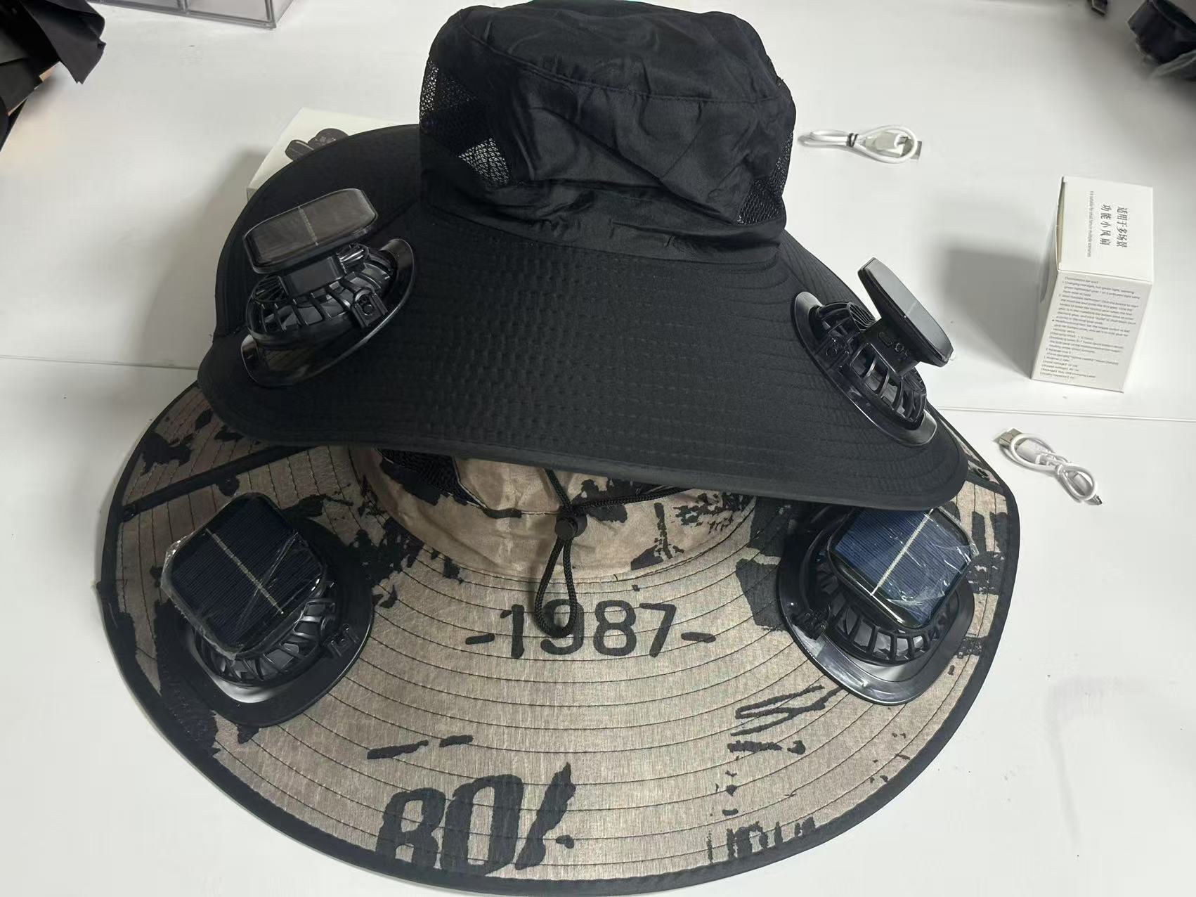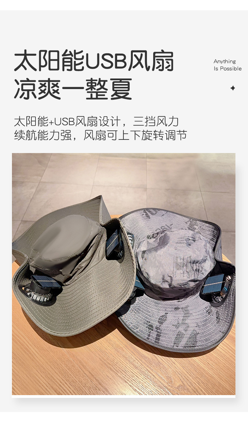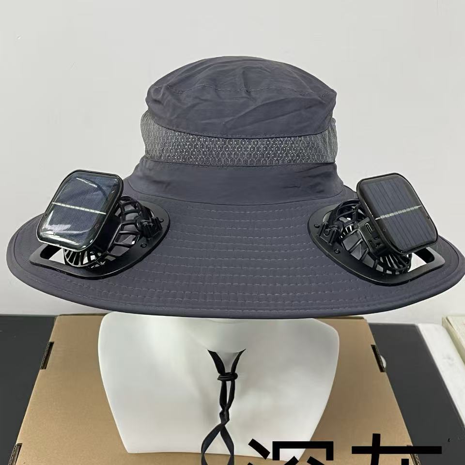 국경 간 태양 팬 모자 태양 충전 야외 여름 등산 낚시 모자 태양 보호 양산 어부 모자