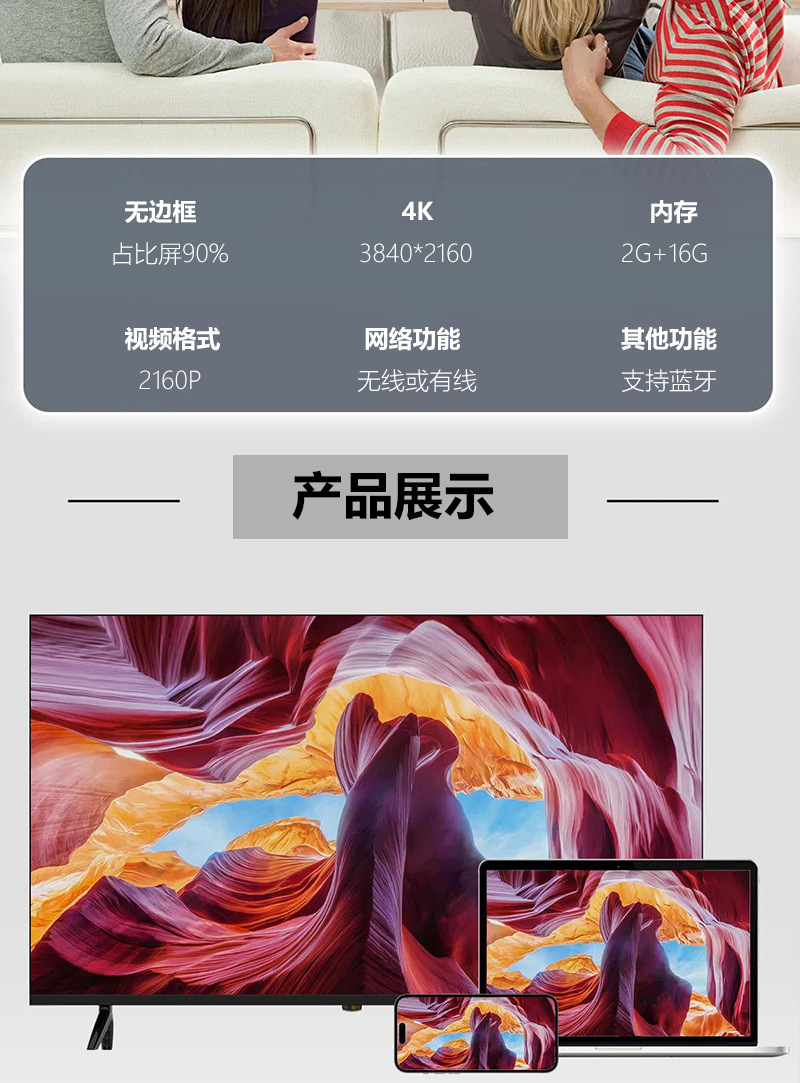 대외 무역 국경 간 중동 TV 4K 65inch 75inch SmartTV 초박형 경계선 없는 QLED LCD TV