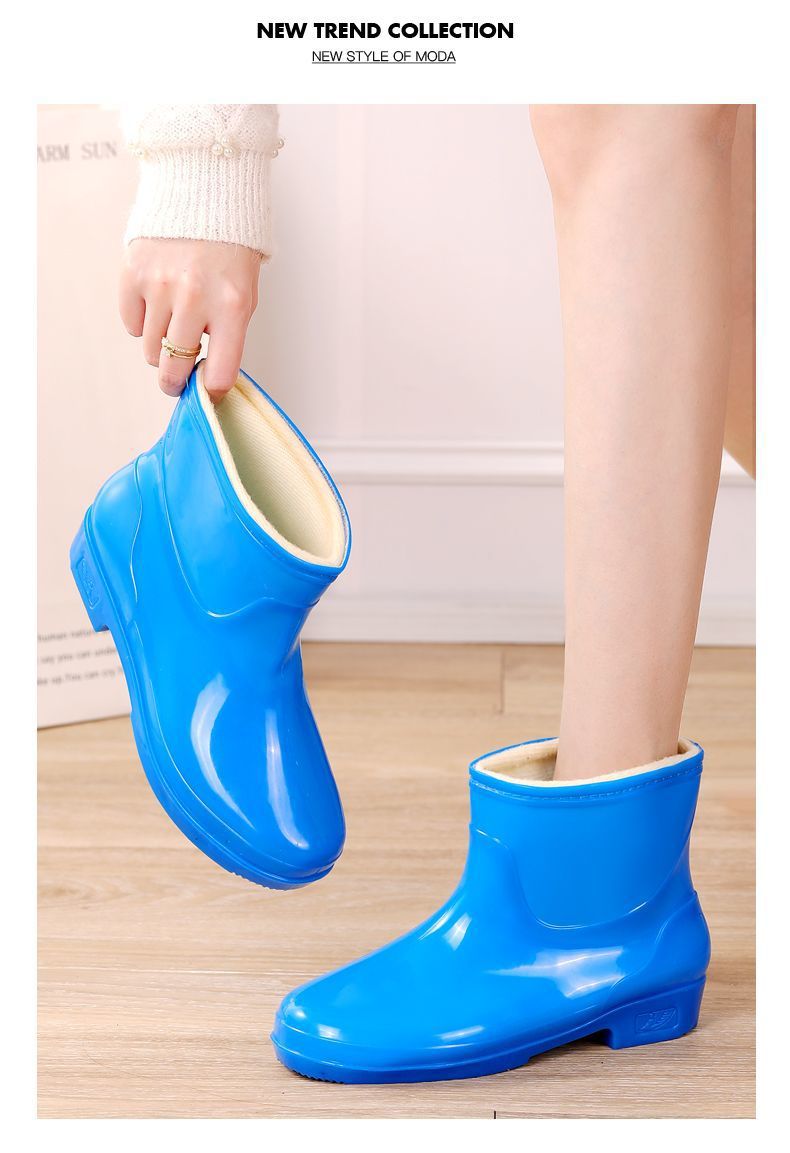 레인부츠 로우탑 플러스 벨벳 힘줄 레인부츠 버킷 방수 고무신 여성용 숏탑 주방 워머 워터부츠 겨울스토어 가기