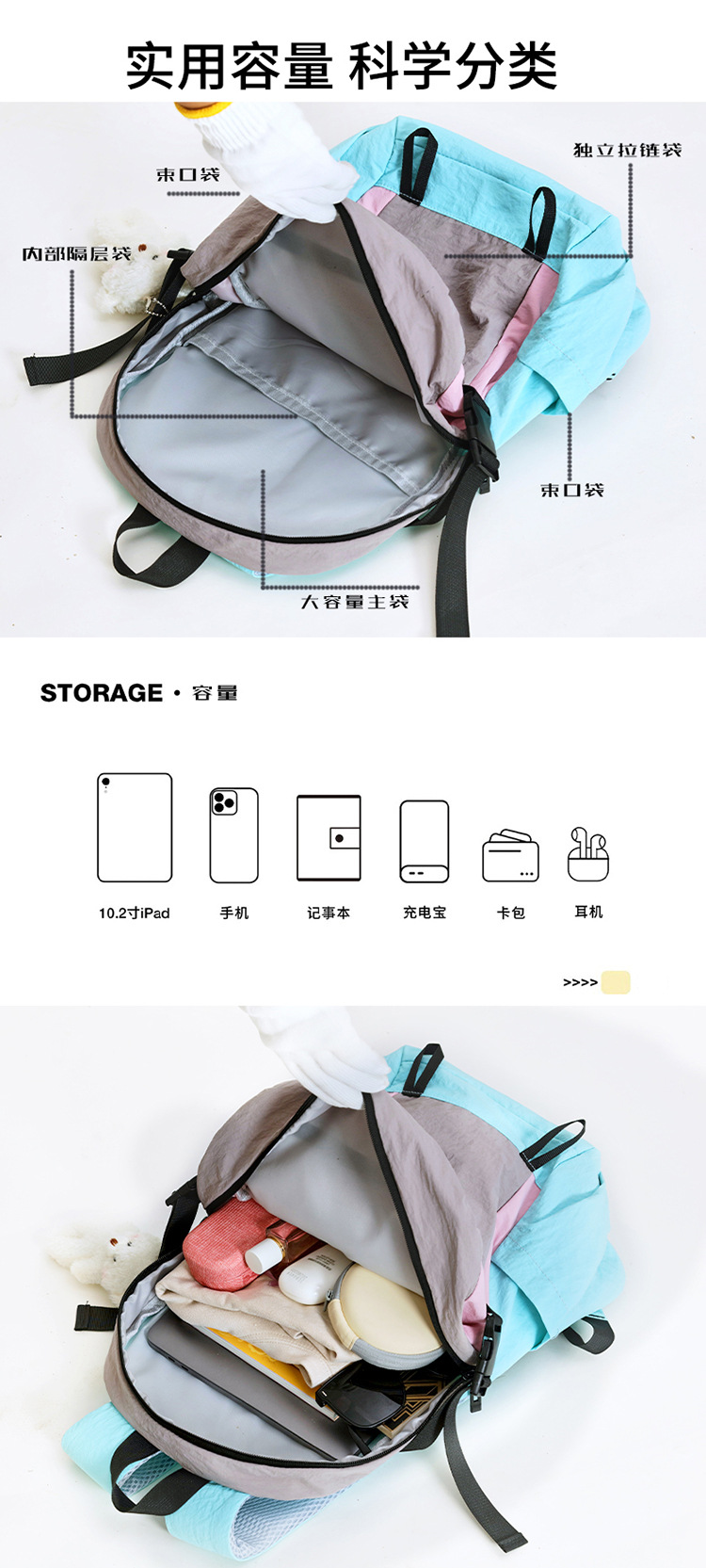 배낭 소녀 대학생 캐주얼 여행 야외 등산 배낭 2025 새로운 대용량 여행 컴퓨터 가방스토어 가기