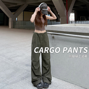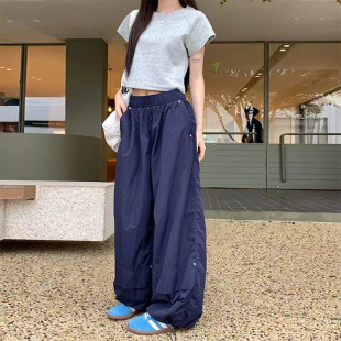 여성을위한 빠른 건조 작업복 여름 2025 새로운 하이 웨이스트 드로우 스트링 레깅스 캐주얼 와이드 레그 파라 스파이크 스웨트 팬츠