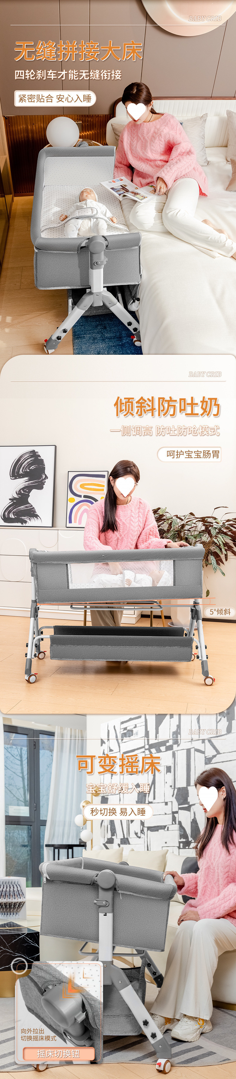 아기 침대 접합 대형 침대 아기 흔들 침대 어린이 요람 침대 다기능 아기 침대 휴대용 아기 침대스토어 가기