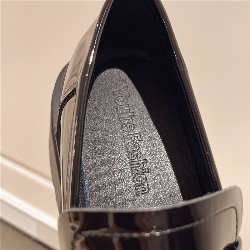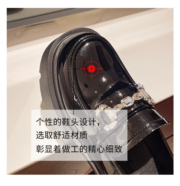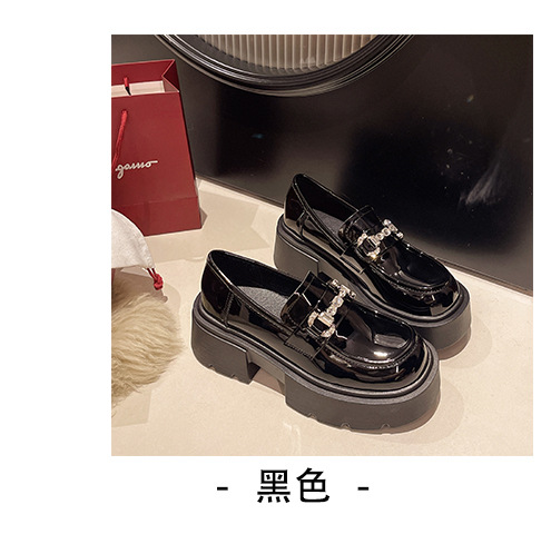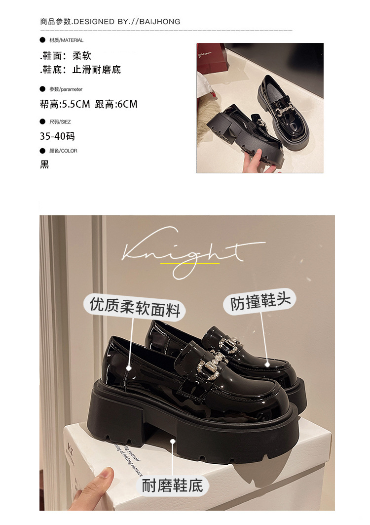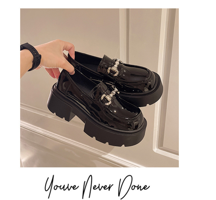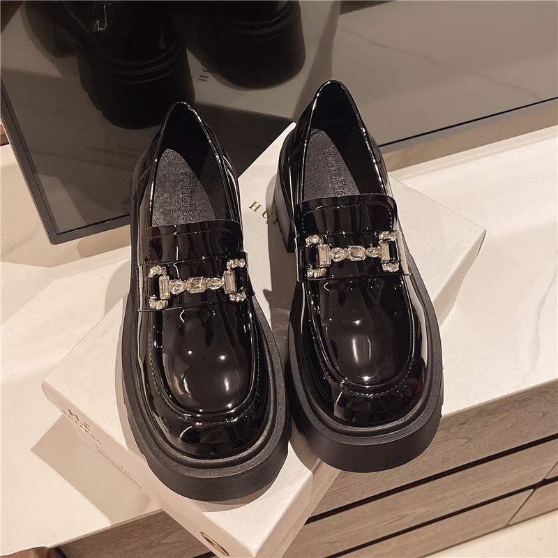 여성을위한 두꺼운 밑창 로퍼 2024 가을 새로운 다목적 프랑스 복고풍 하이힐 라인 석 블랙 영국 스타일 작은 가죽 신발