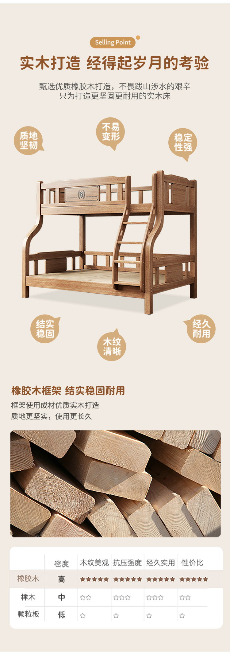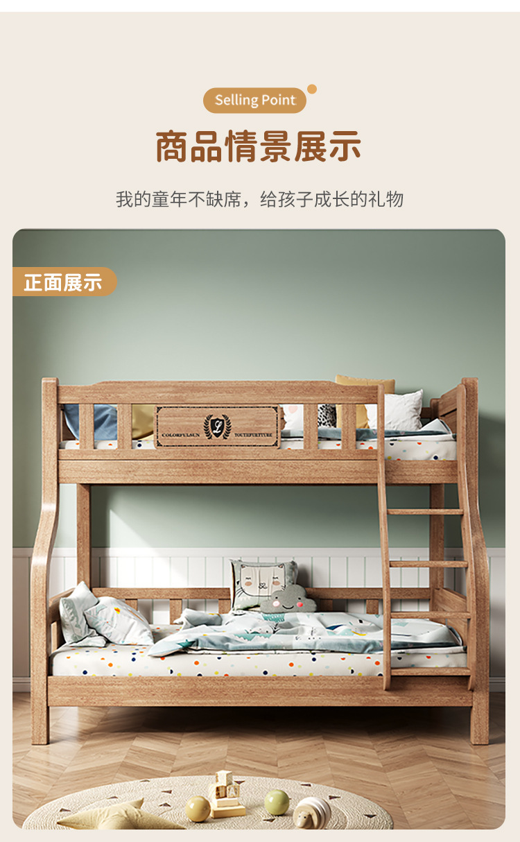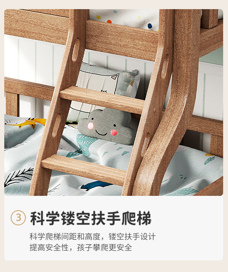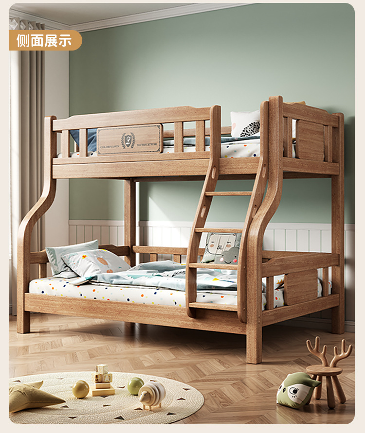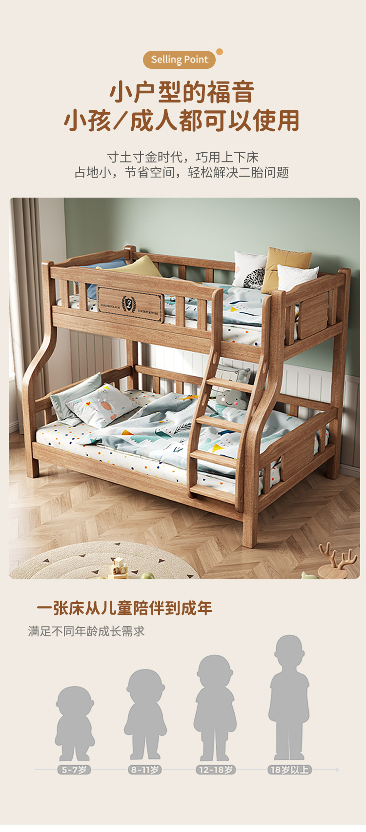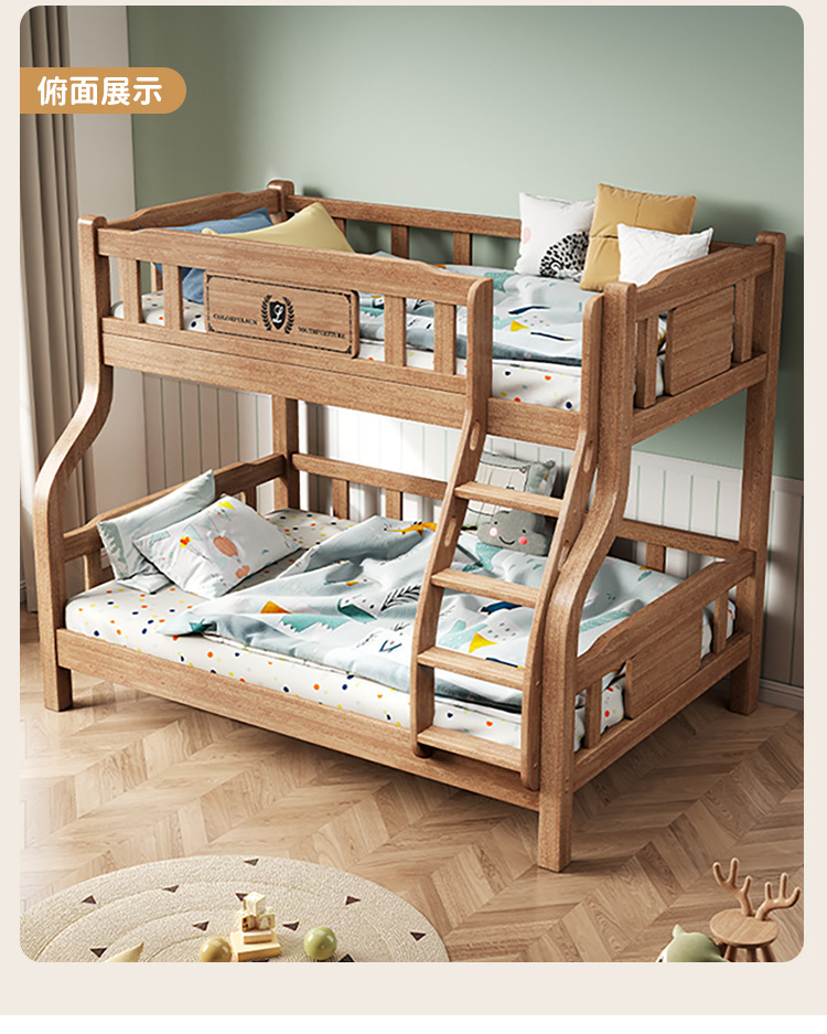 이층침대, 고무나무 이층침대, 다기능 원목 하이앤로우 침대, 어린이 침대, 걸이형 사다리, 2층 목재 침대