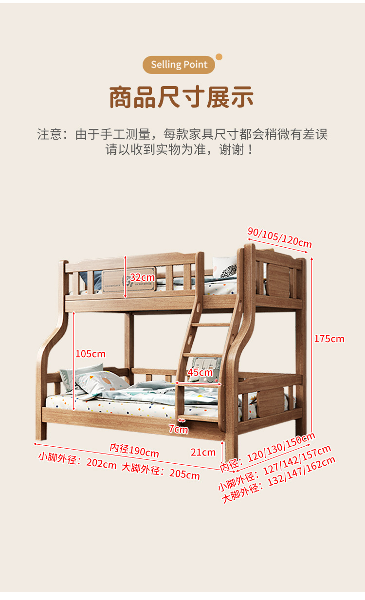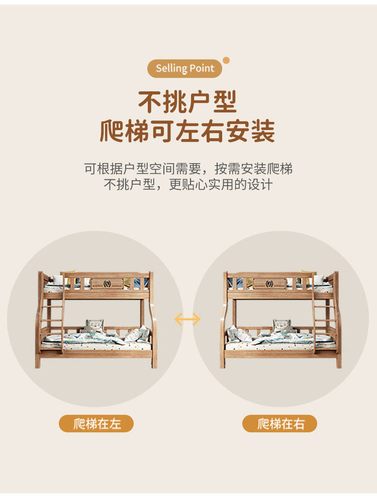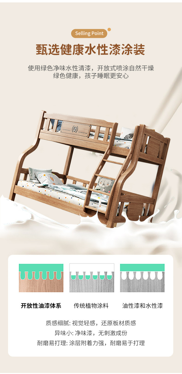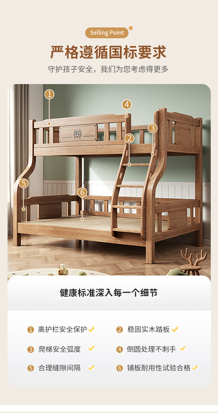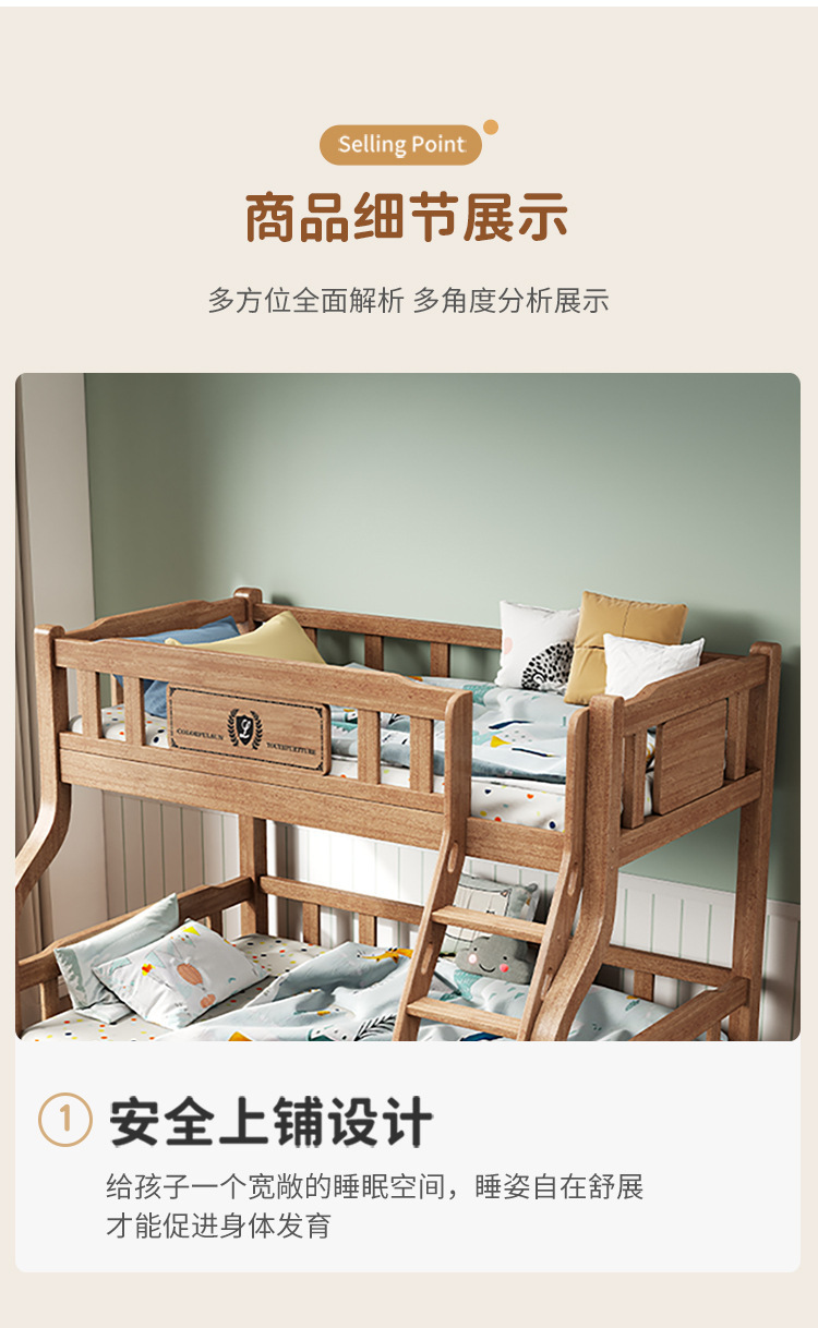 이층침대, 고무나무 이층침대, 다기능 원목 하이앤로우 침대, 어린이 침대, 걸이형 사다리, 2층 목재 침대