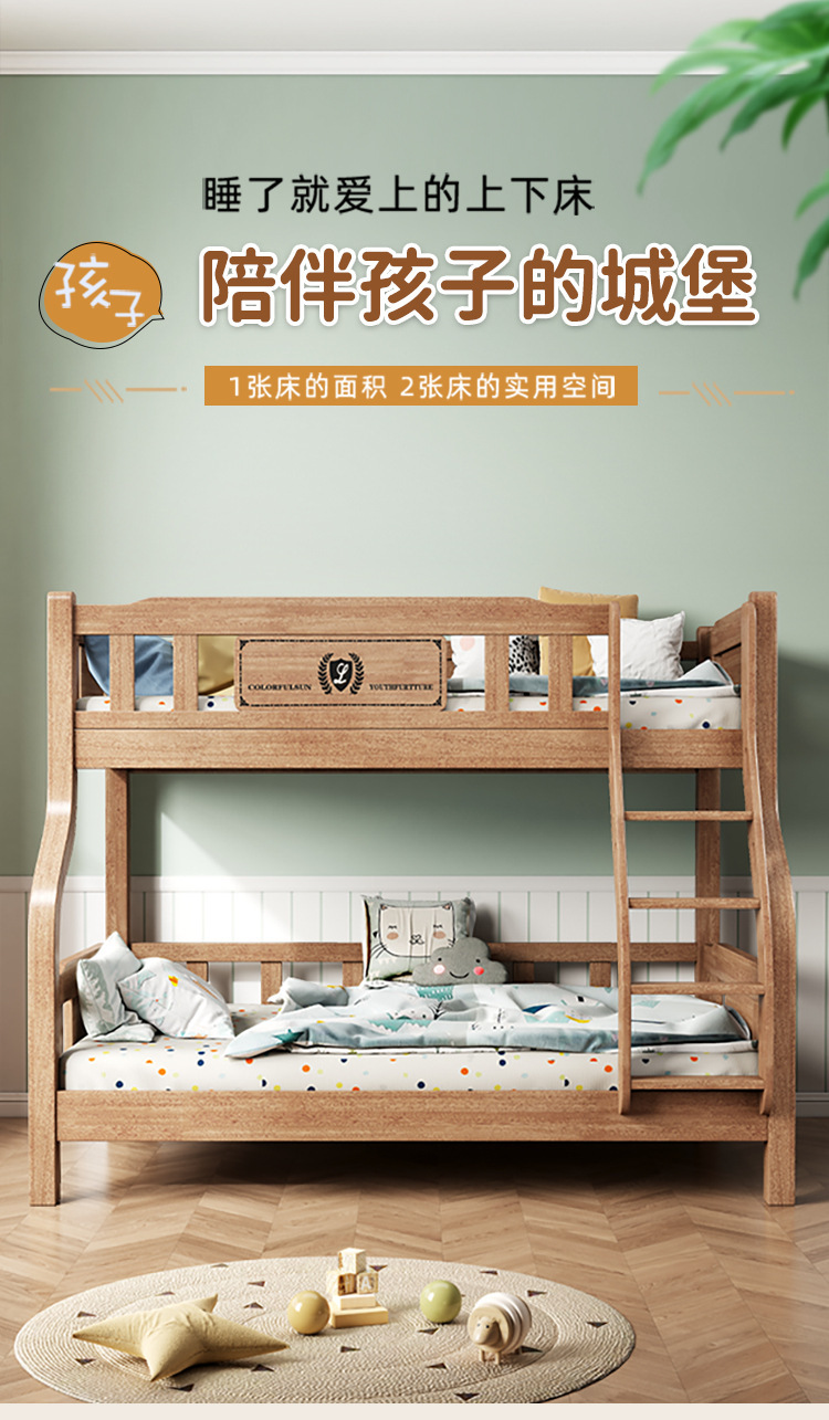 이층침대, 고무나무 이층침대, 다기능 원목 하이앤로우 침대, 어린이 침대, 걸이형 사다리, 2층 목재 침대스토어 가기