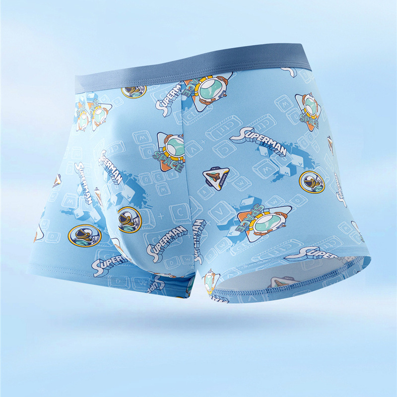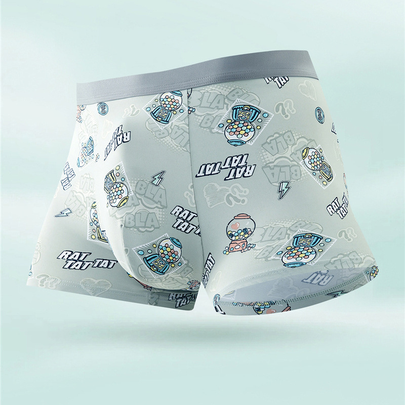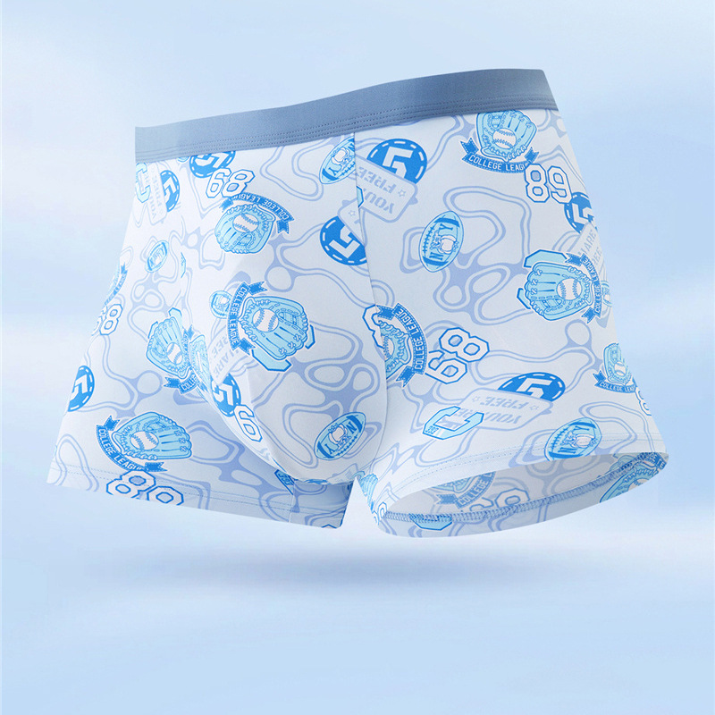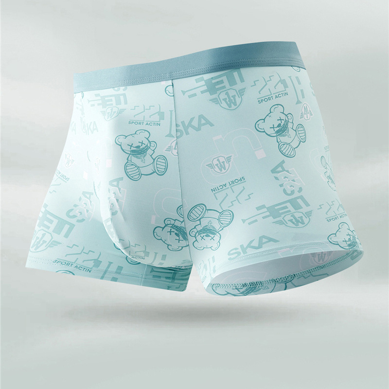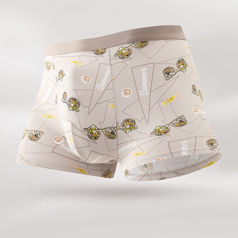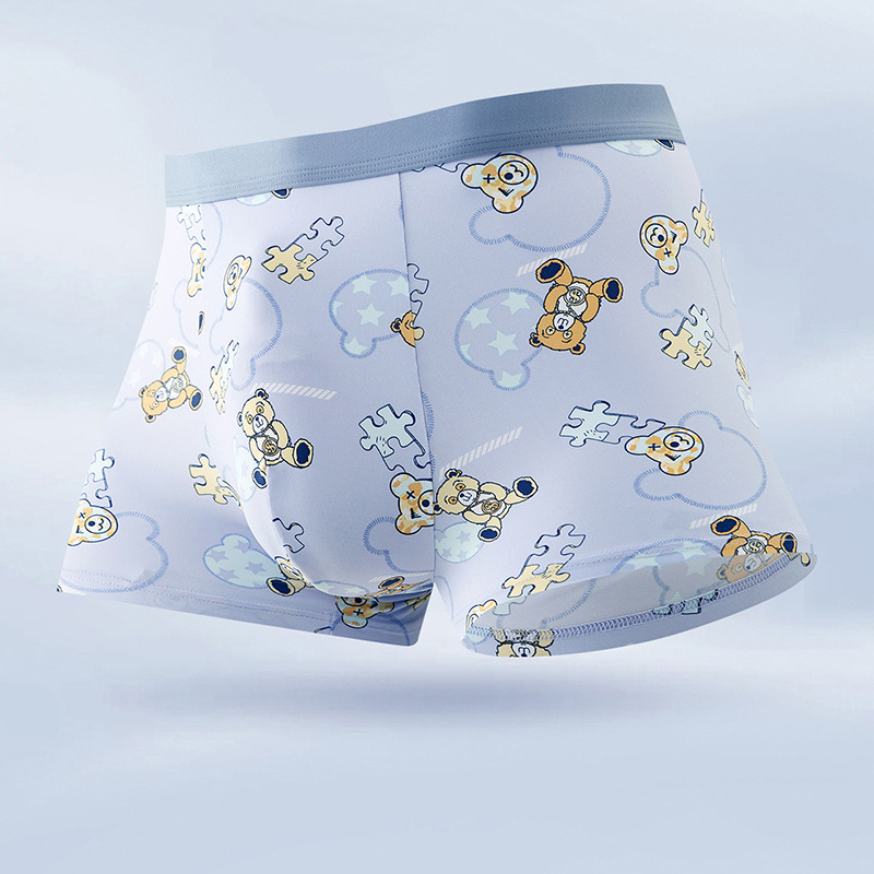 무봉제 남성 속옷 복서 프린트 통기성 여름 누드 아이스 실크 5A 항균 청소년 소년 복서 반바지스토어 가기
