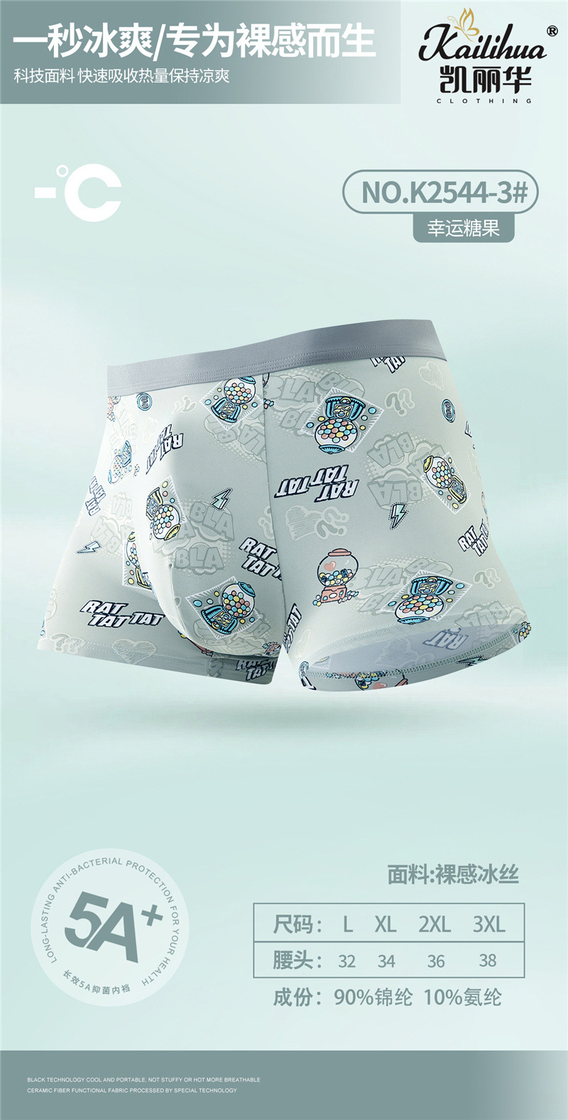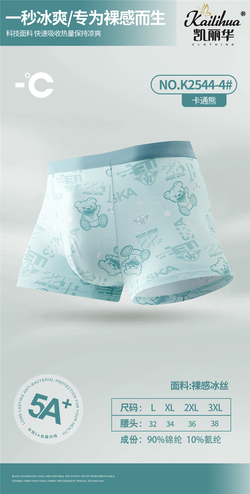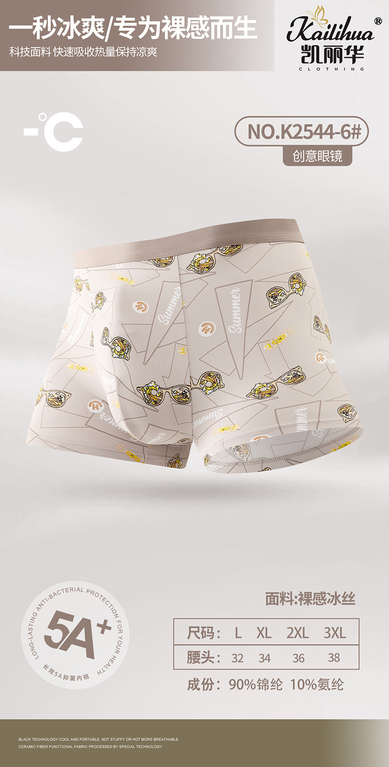 무봉제 남성 속옷 복서 프린트 통기성 여름 누드 아이스 실크 5A 항균 청소년 소년 복서 반바지스토어 가기