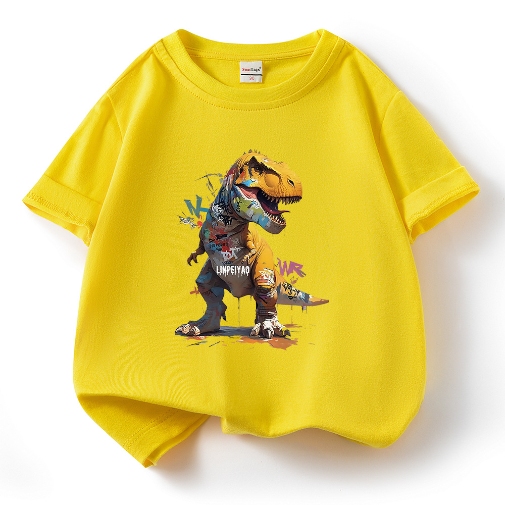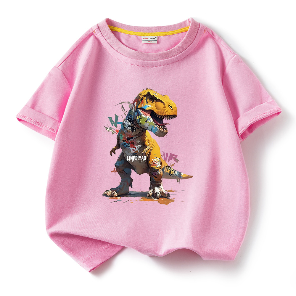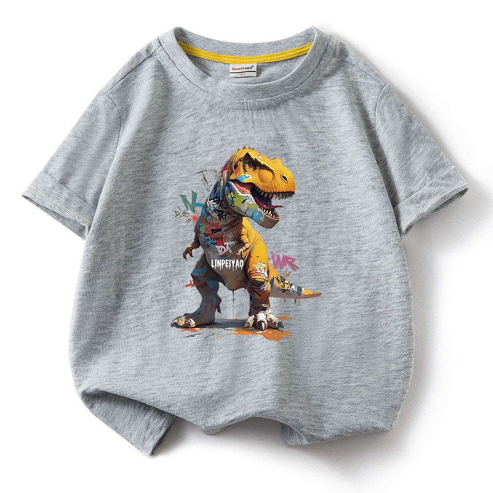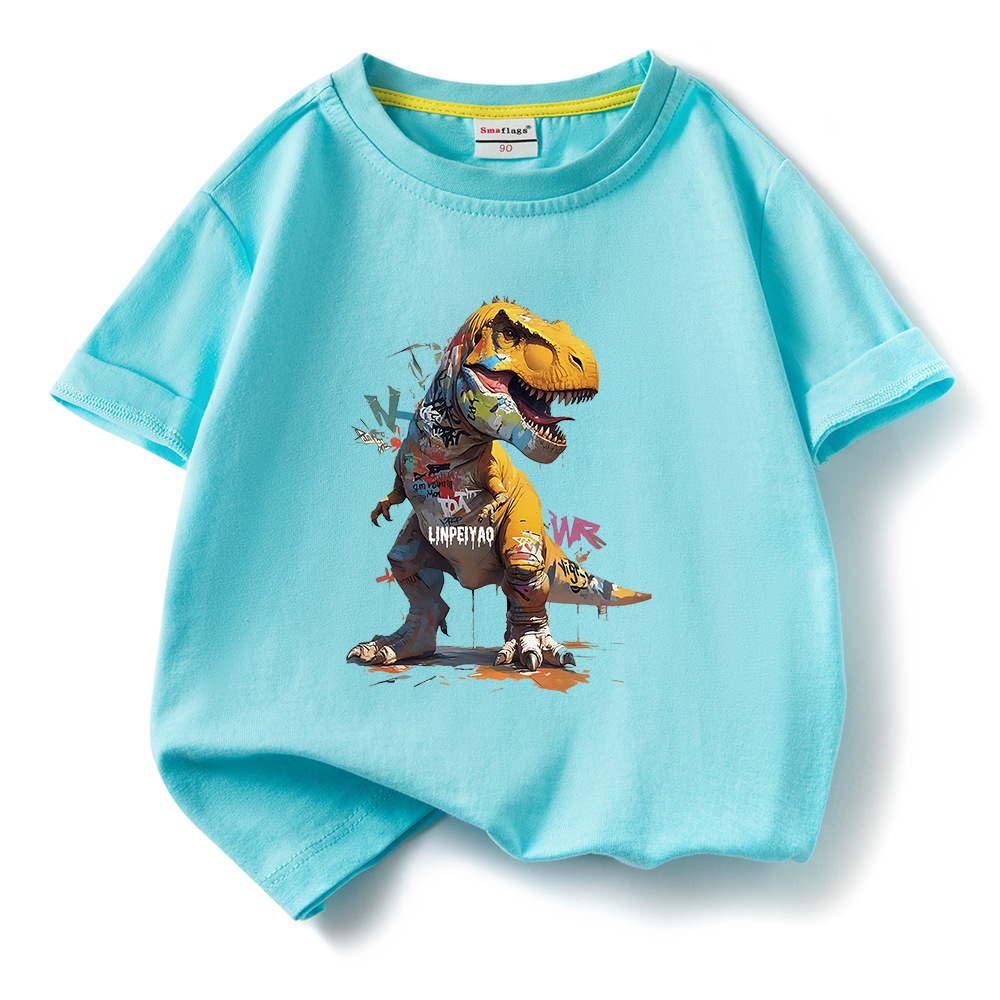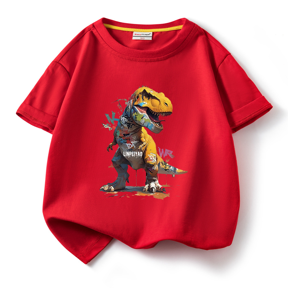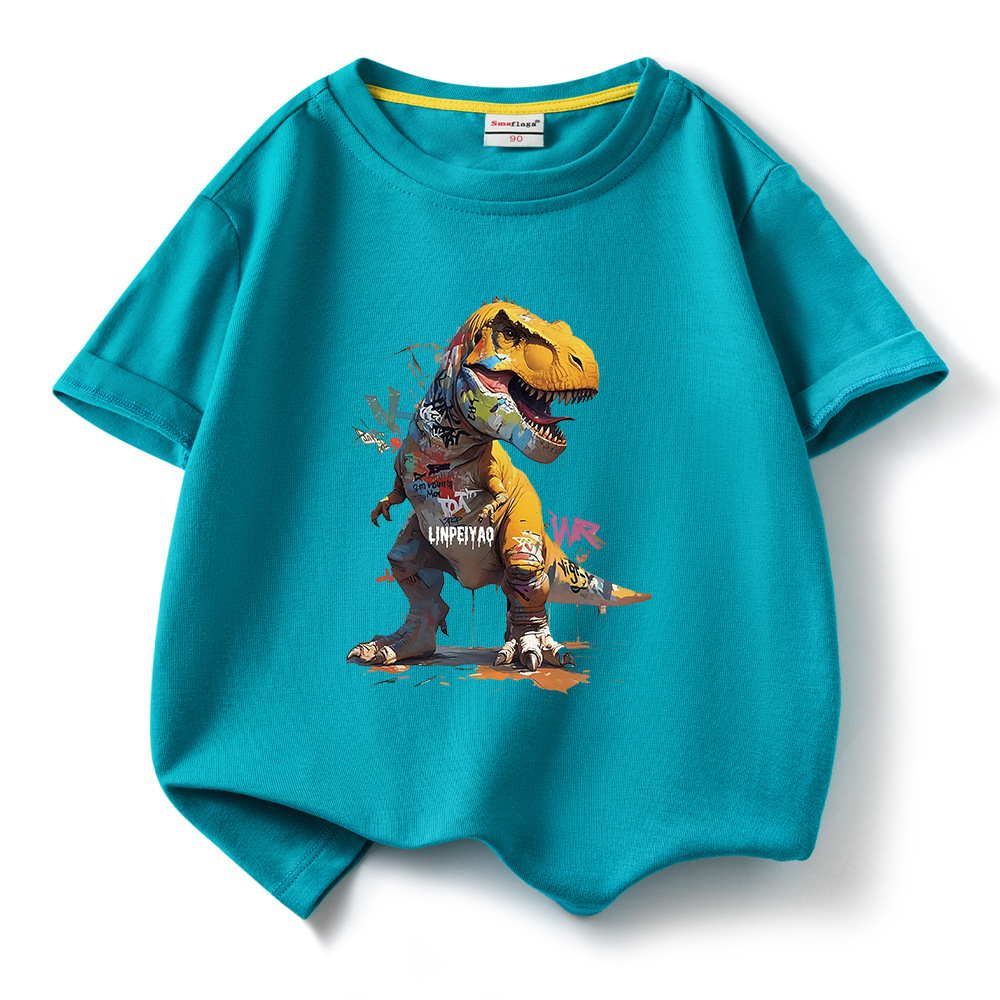 소년 티셔츠 어린이 반팔 탑 2025 새로운 소년 잘 생긴 여름 순수 면화 의류 여름 멋진 유행 티셔츠 T