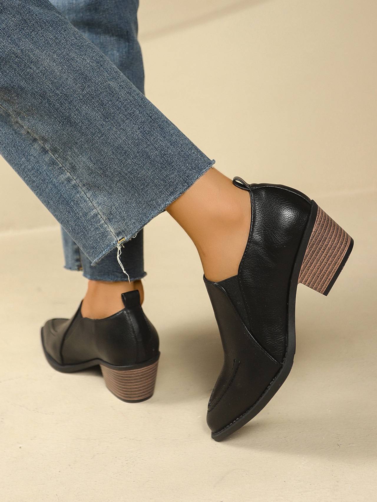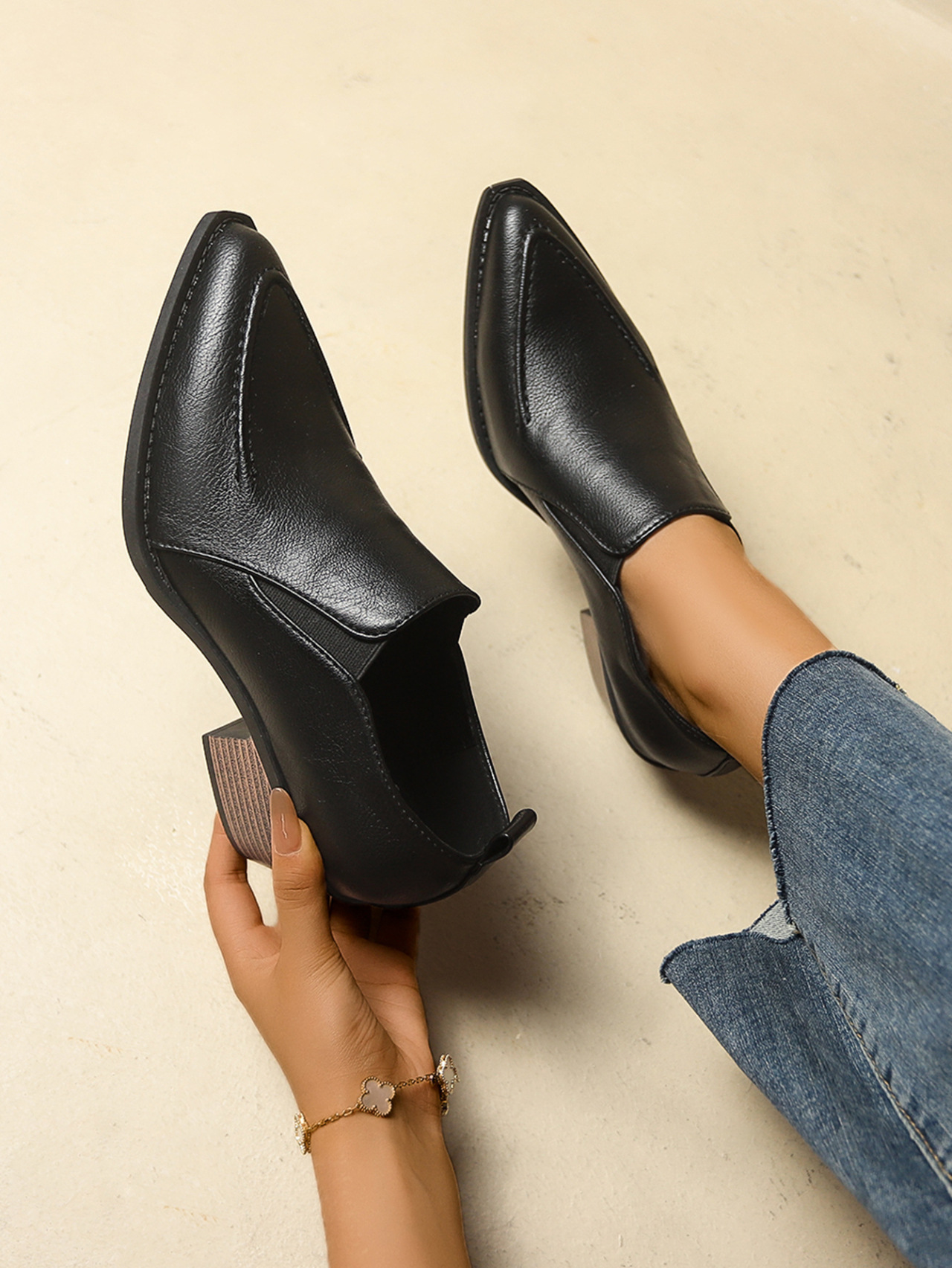 국경 간 대외 무역 영국식 깊은 입 뾰족한 발가락 두꺼운 굽 슬립 온 하이힐 대형 소형 가죽 신발 전문 정장 여성 신발