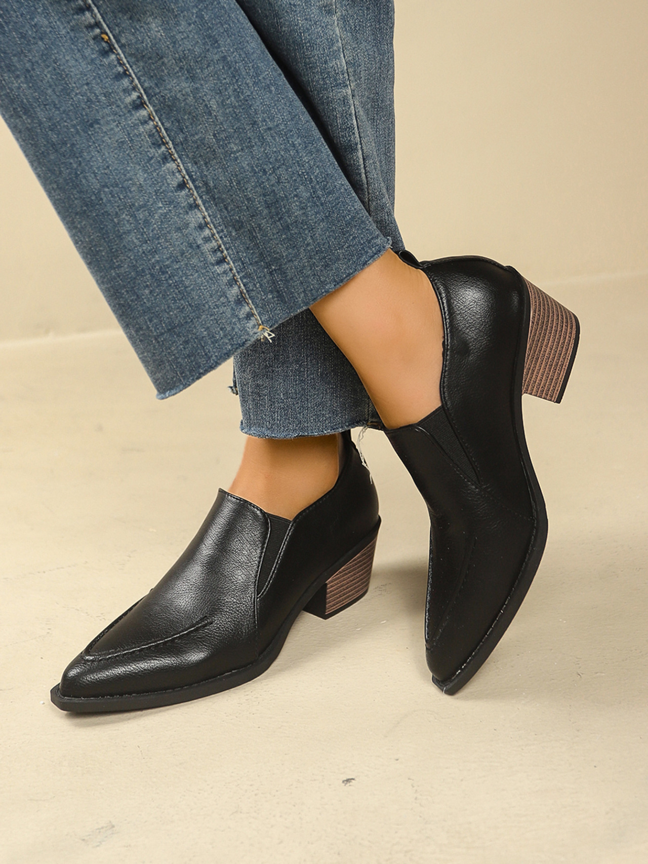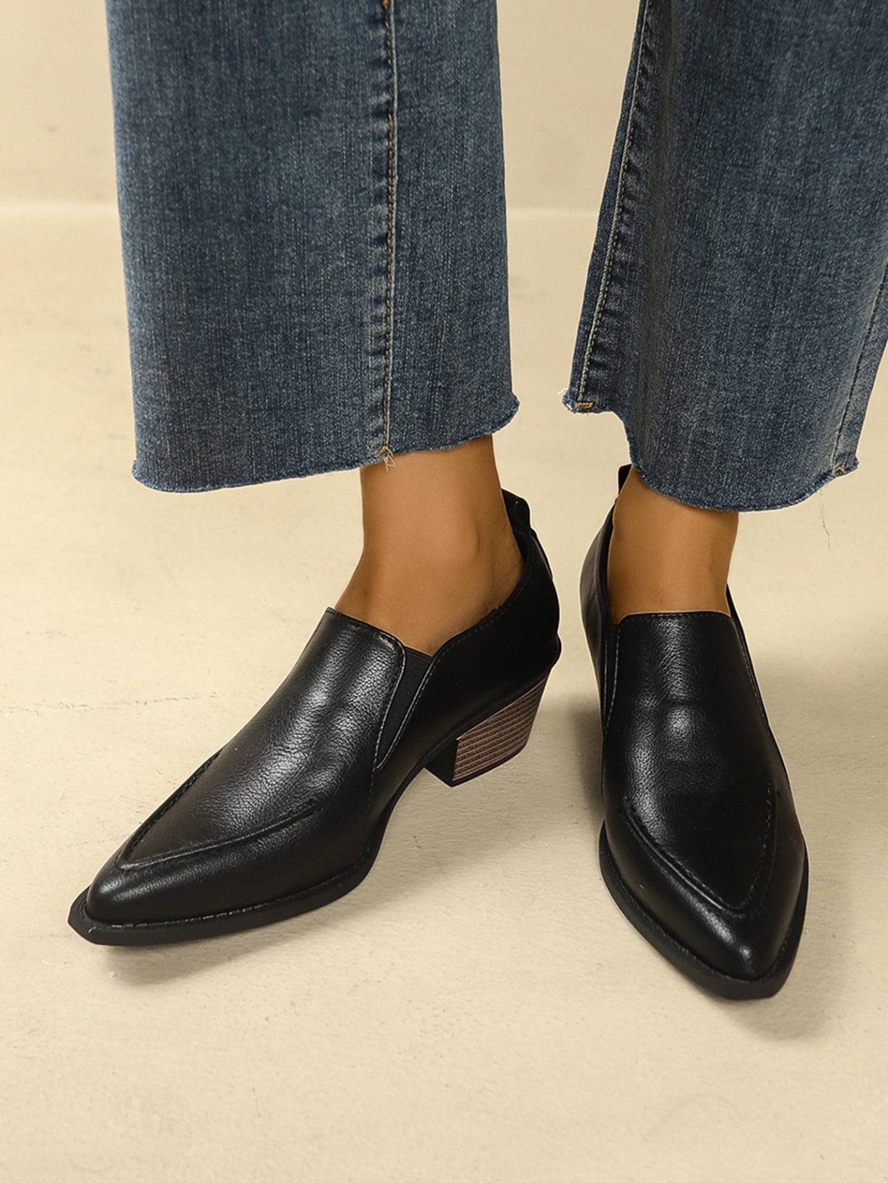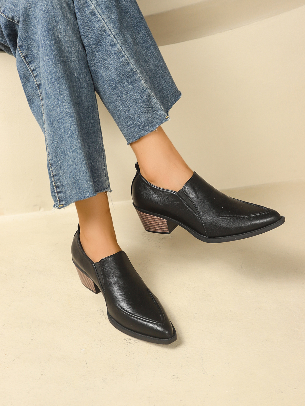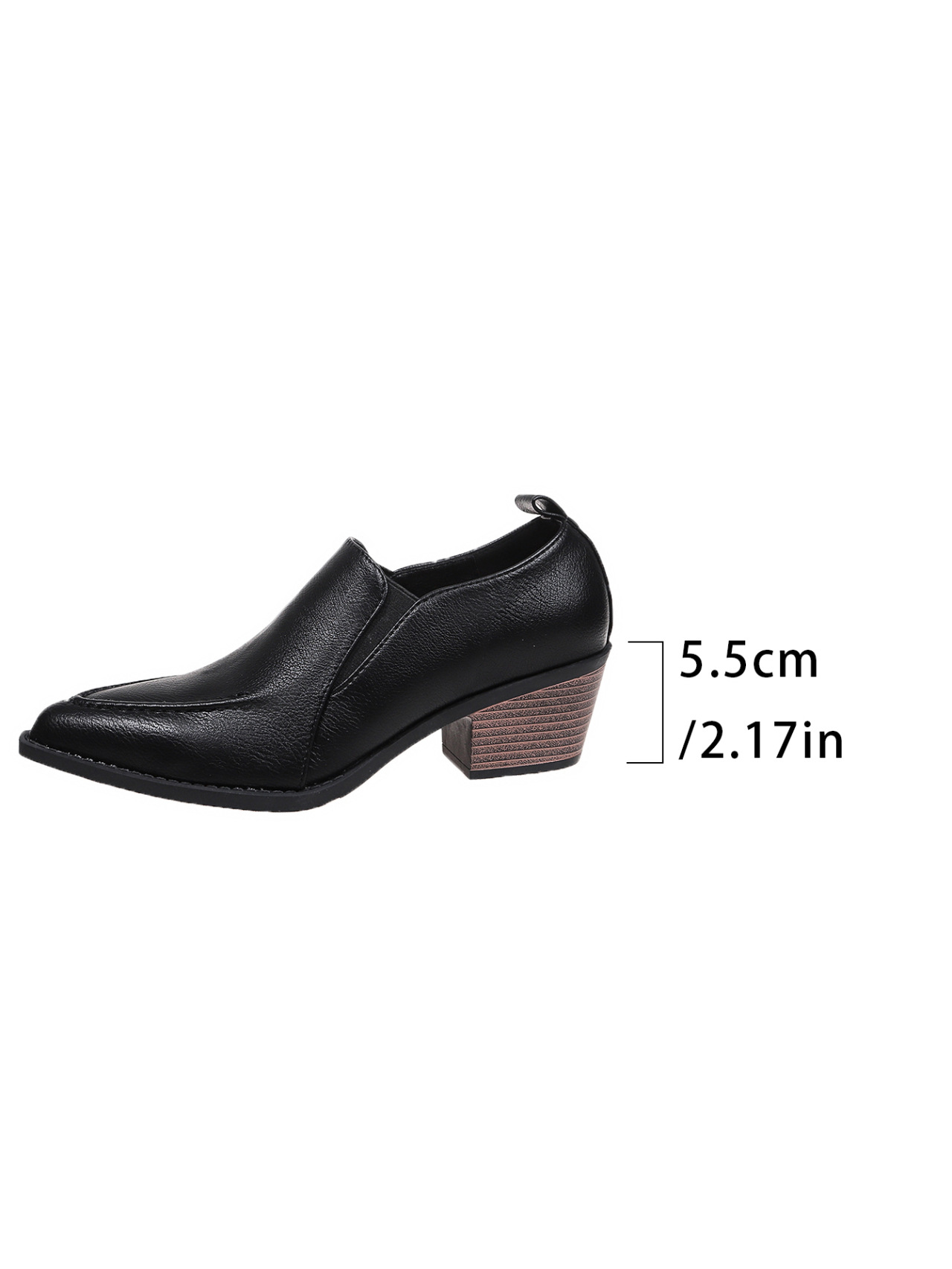 국경 간 대외 무역 영국식 깊은 입 뾰족한 발가락 두꺼운 굽 슬립 온 하이힐 대형 소형 가죽 신발 전문 정장 여성 신발스토어 가기