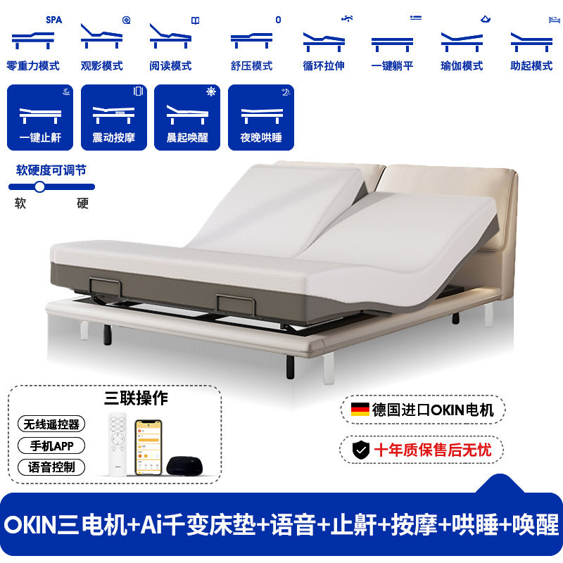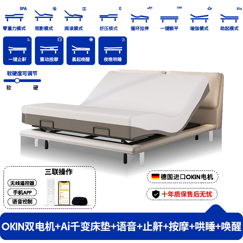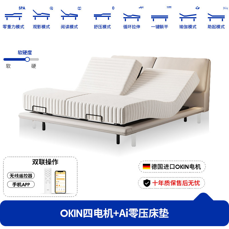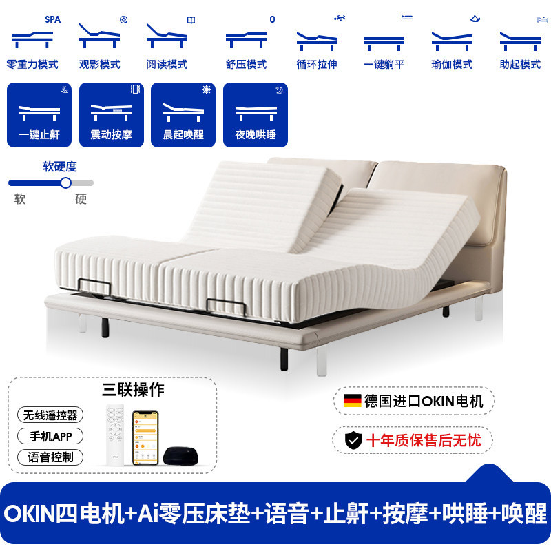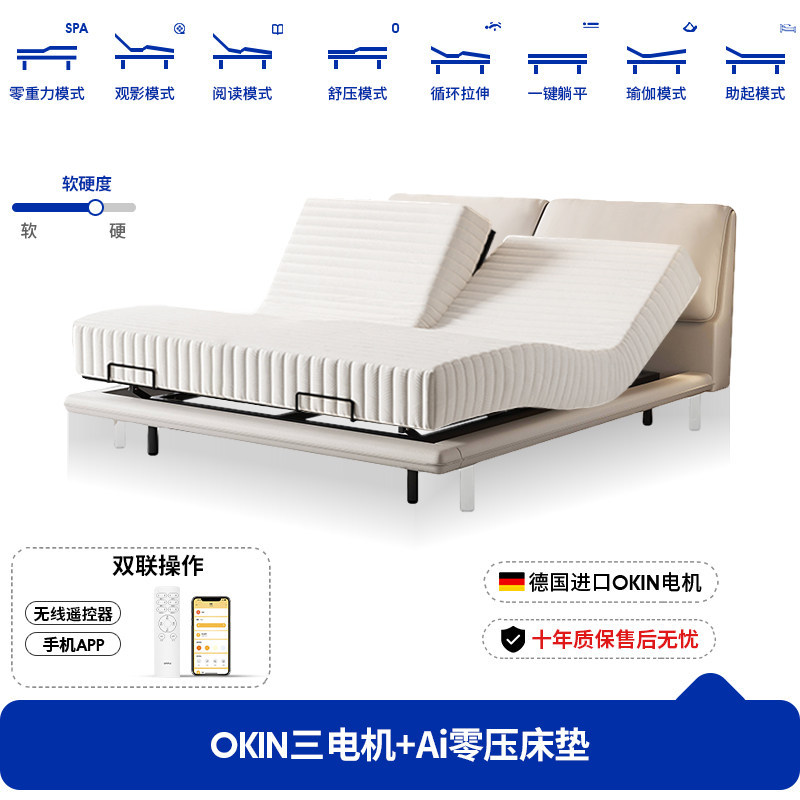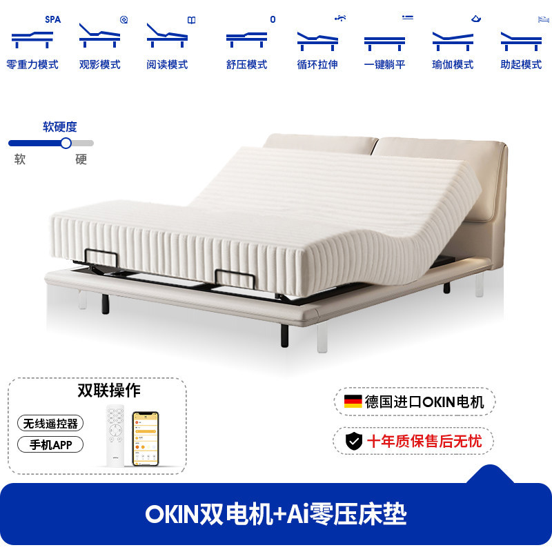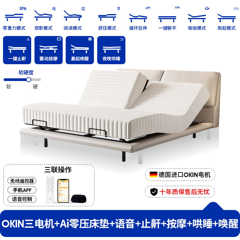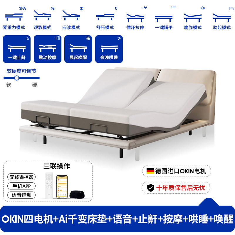• 가죽 침대 + OKIN 3모터 + Ai 천변 매트리스 + 음성 + 코골이 방지 + 마사지 + 수면 유도 + 기상 + 수면 모니터링 + 미지아 연동