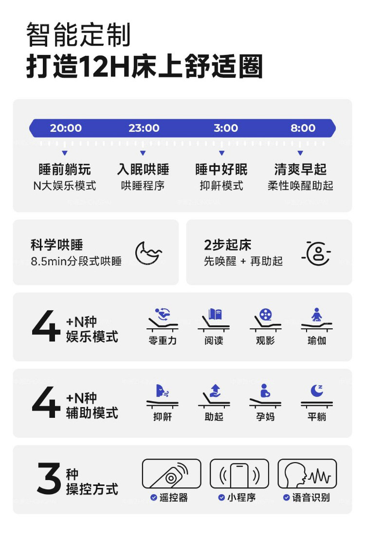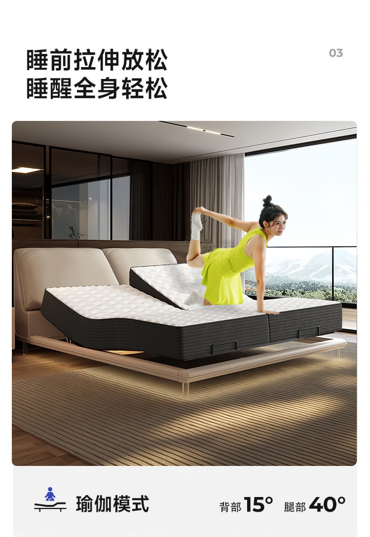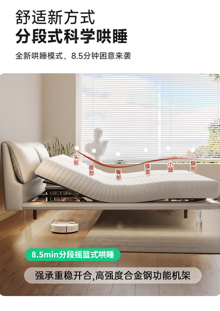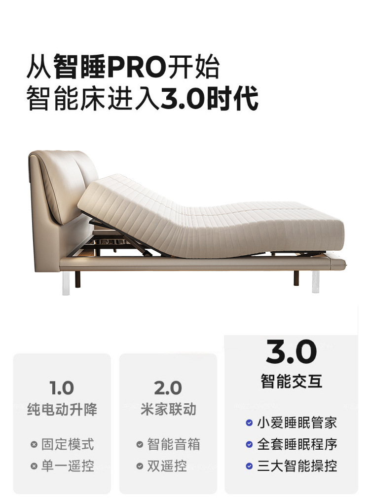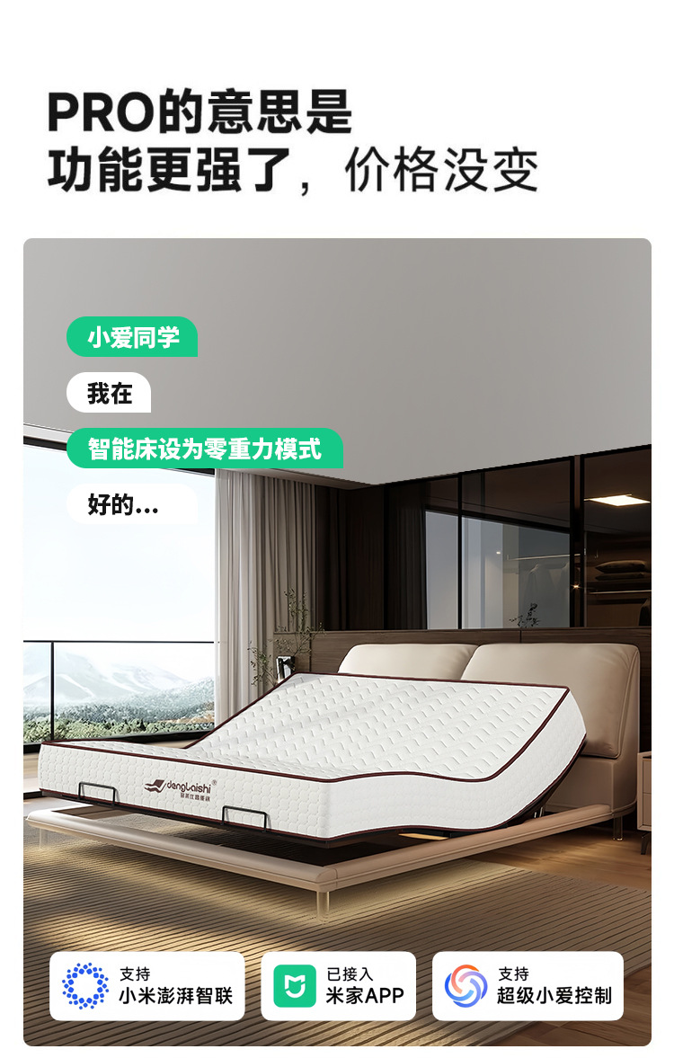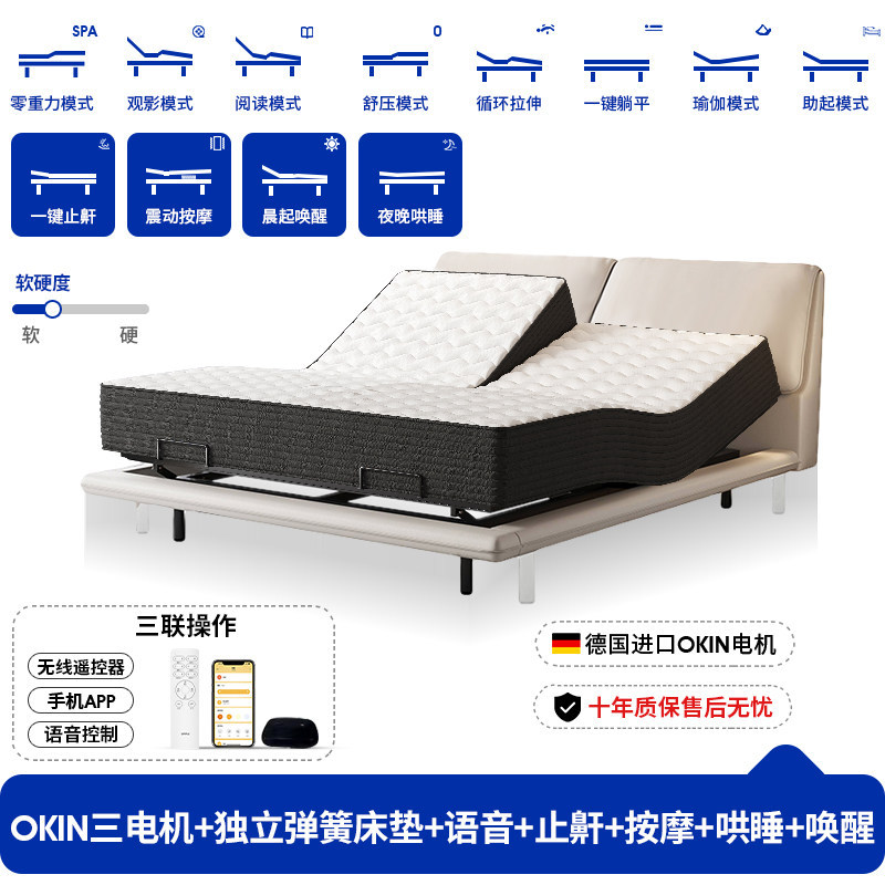 • 가죽 침대 + OKIN 3모터 + Ai 천변 매트리스 + 음성 + 코골이 방지 + 마사지 + 수면 유도 + 기상 + 수면 모니터링 + 미지아 연동