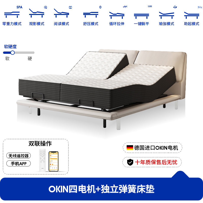 • 천연 가죽 침대 + OKIN 듀얼 모터 + 독립 스프링 매트리스 + 음성 기능 + 코골이 방지 + 마사지 + 수면 유도 + 기상 기능
