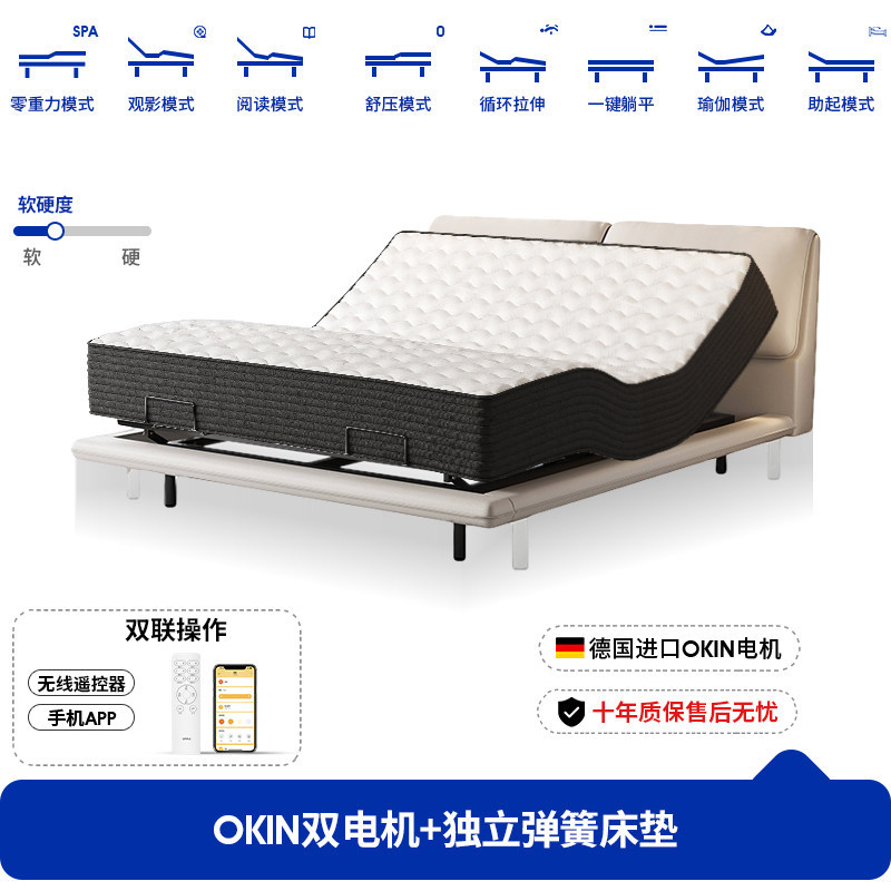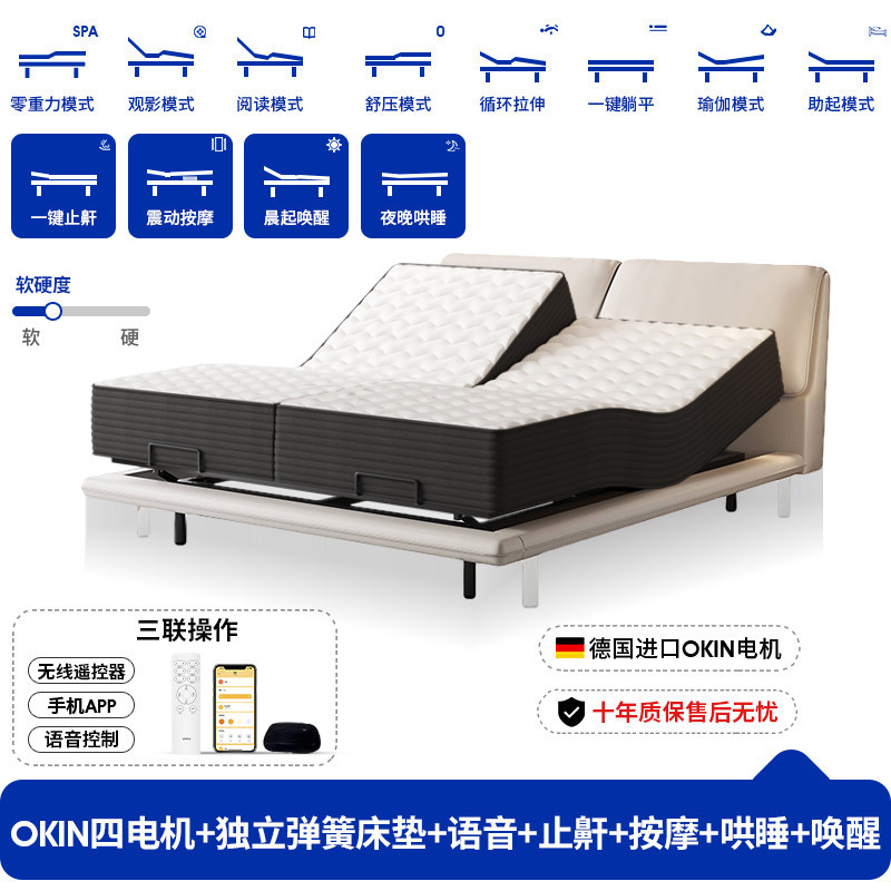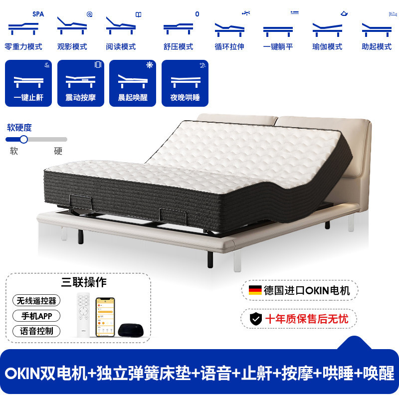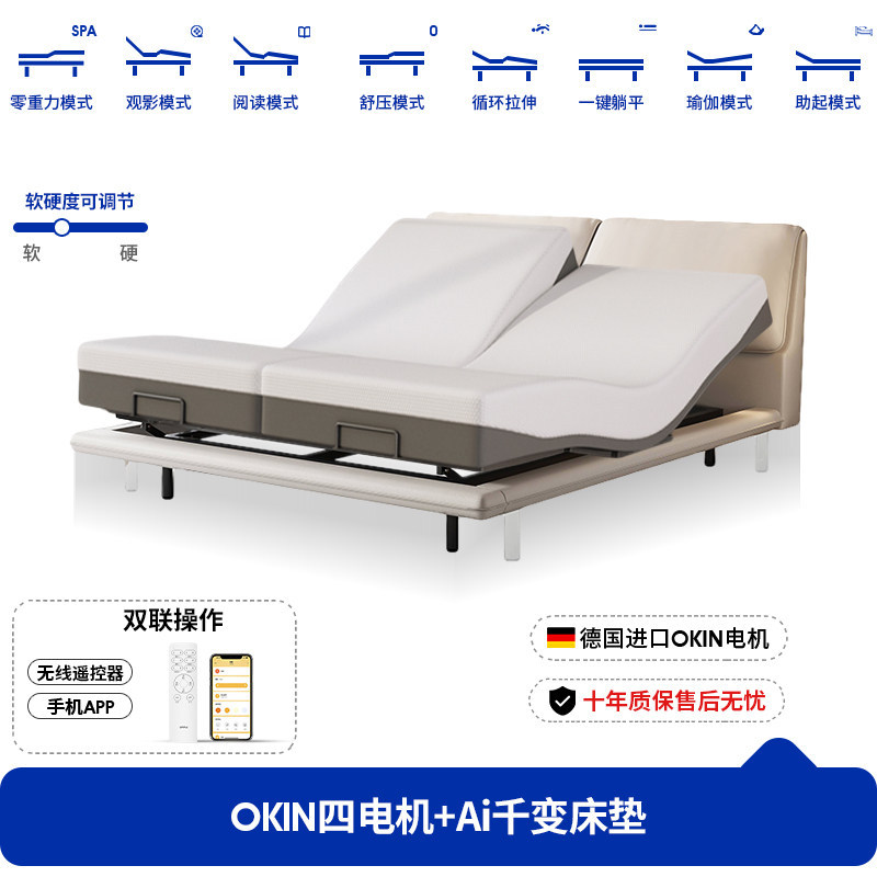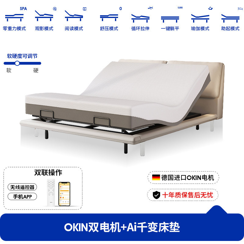 • 천연 가죽 침대 + OKIN 듀얼 모터 + Ai 천변 매트리스 + 음성 제어 + 코골이 방지 + 마사지 + 수면 유도 + 기상 기능