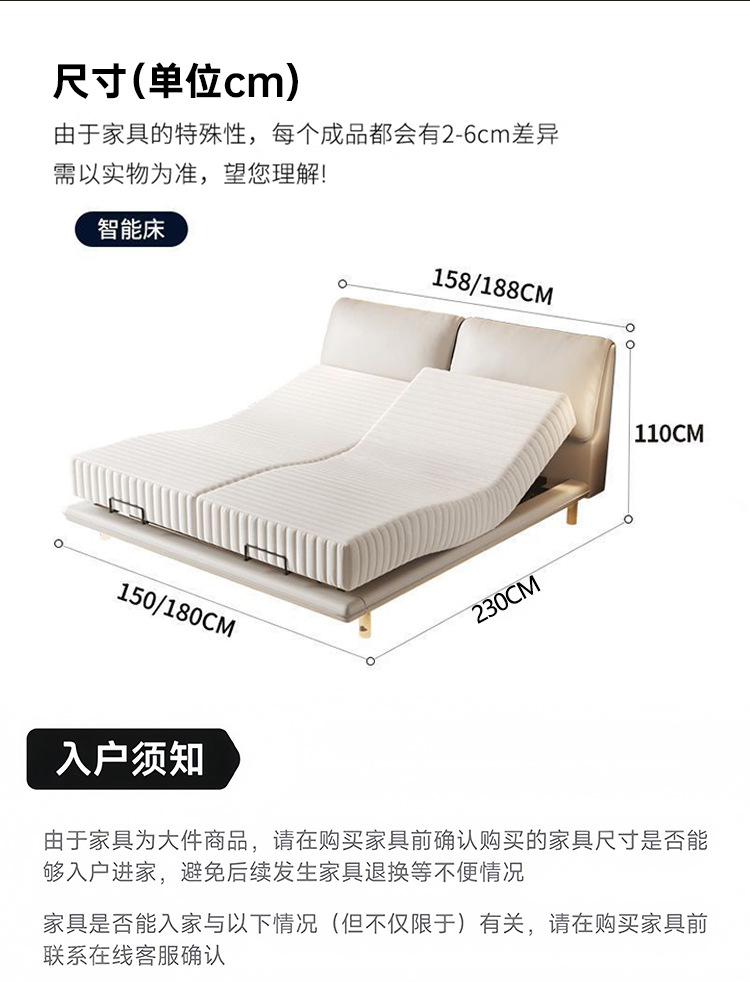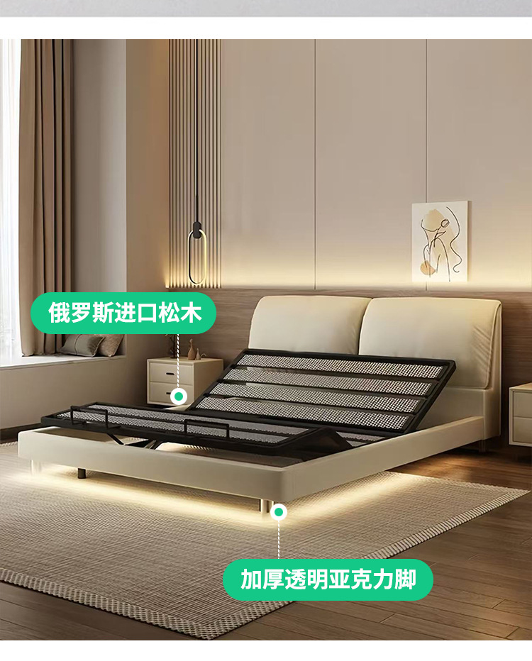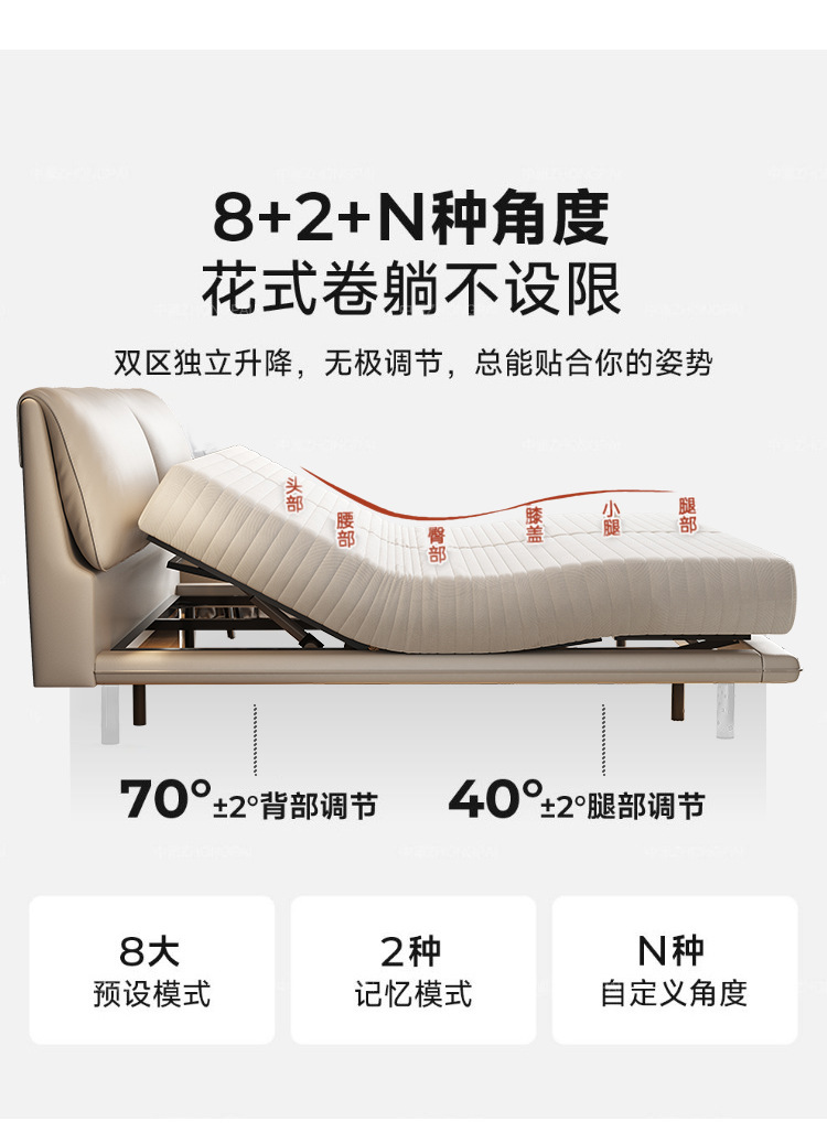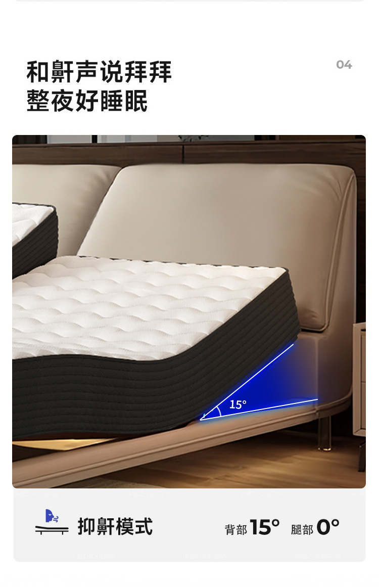 • 천연 가죽 침대 + OKIN 듀얼 모터 + Ai 천변 매트리스 + 음성 제어 + 코골이 방지 + 마사지 + 수면 유도 + 기상 기능