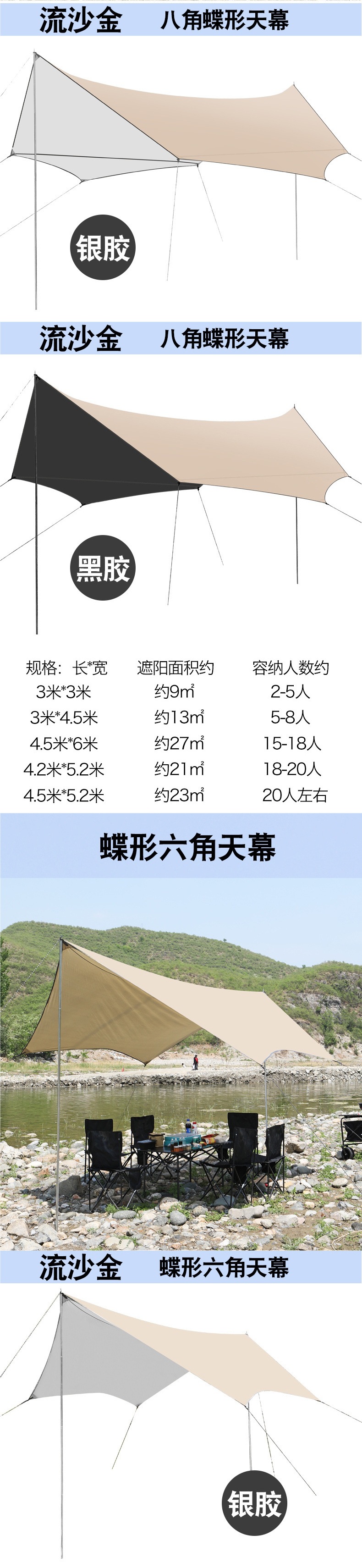 비닐 캐노피 텐트 야외 캠핑 차양 두꺼운 팔각형 캠핑 피크닉 방수 나비 차양