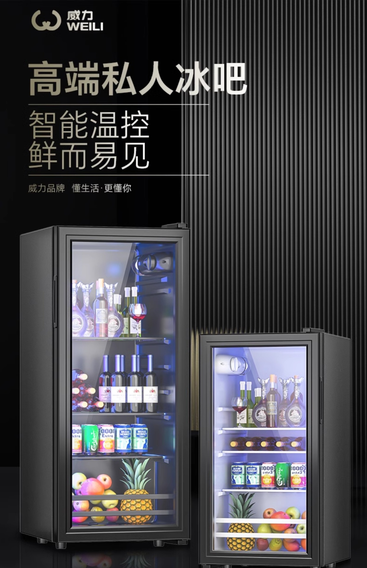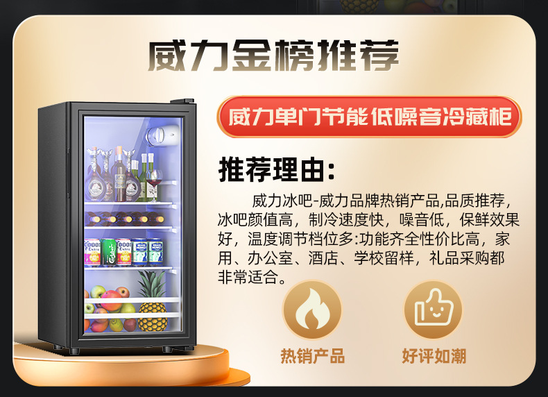 Weibingba 가정용 소형 냉장 보존 캐비닛 사무실 대용량 차 음료 레드 와인 투명 냉장고스토어 가기