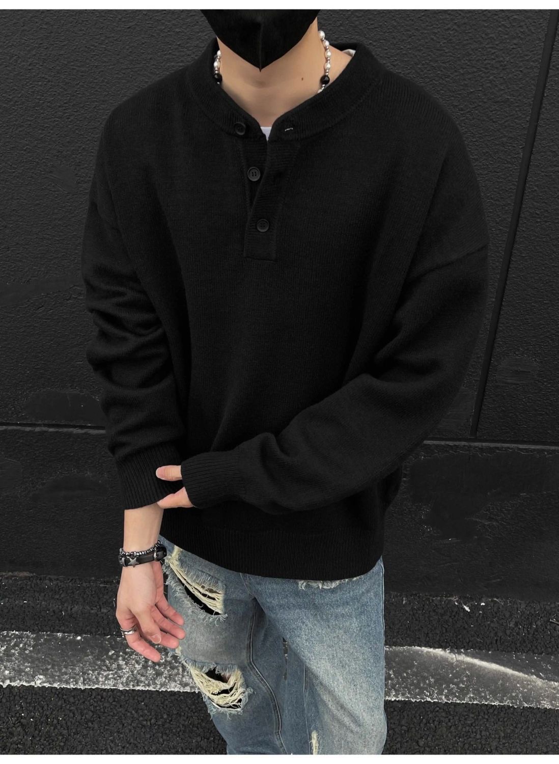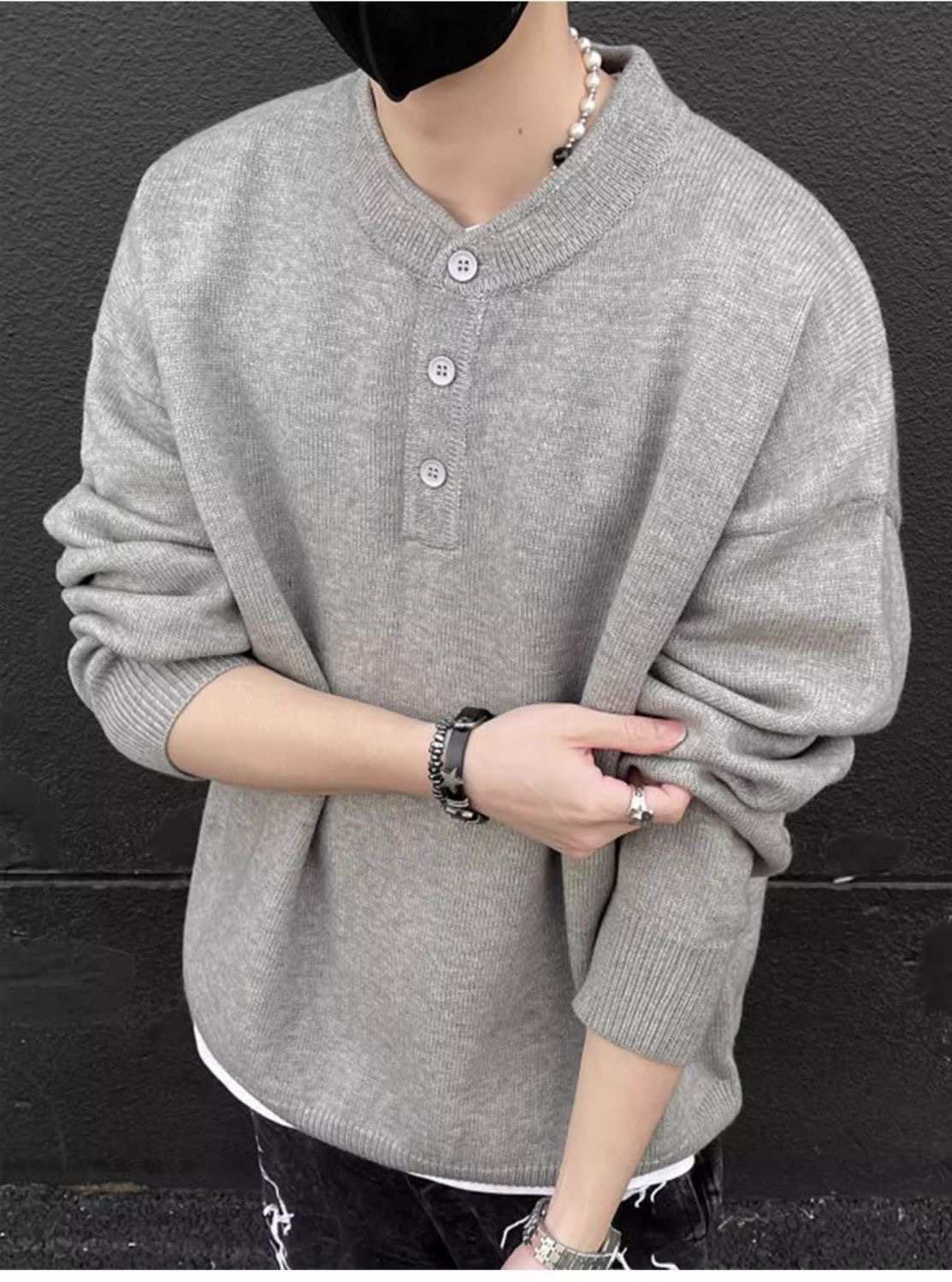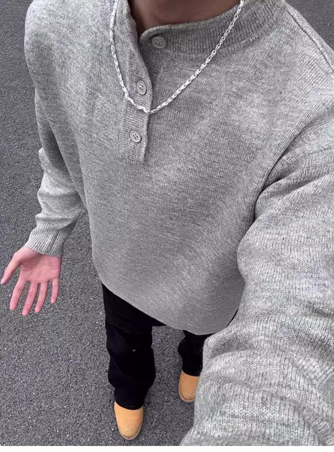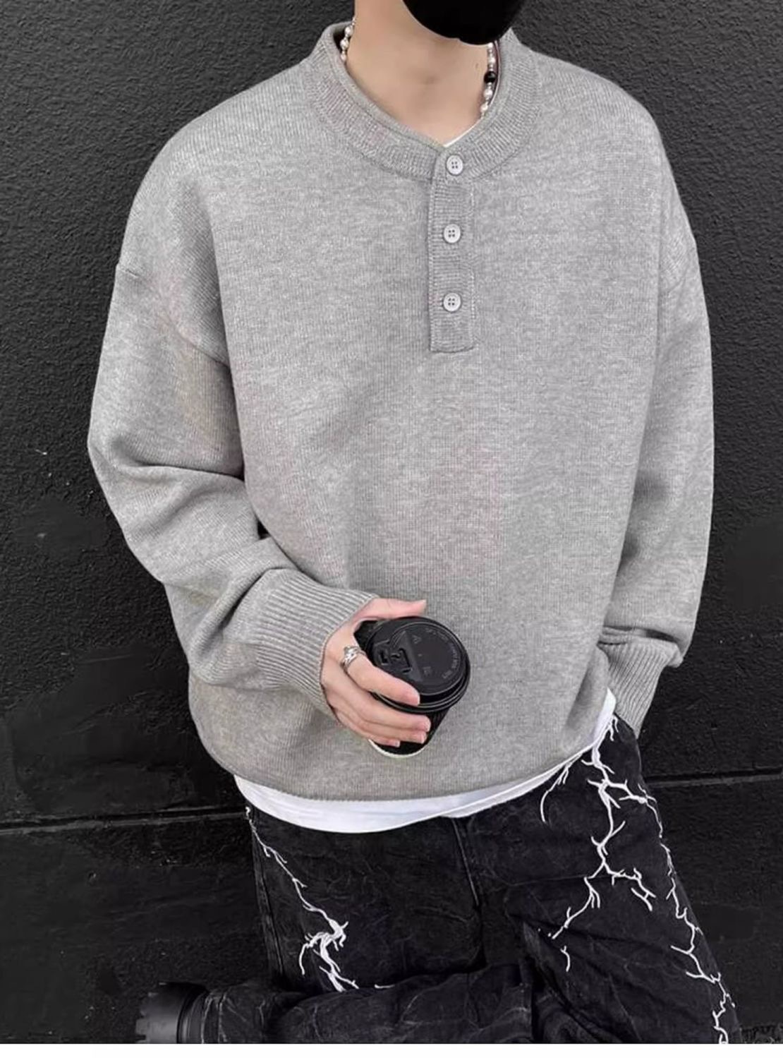 가을, 겨울 회색 미국 복고풍 헨리 칼라 스웨터 남성 게으른 스타일 하이 엔드 스웨터 클린핏 재킷스토어 가기