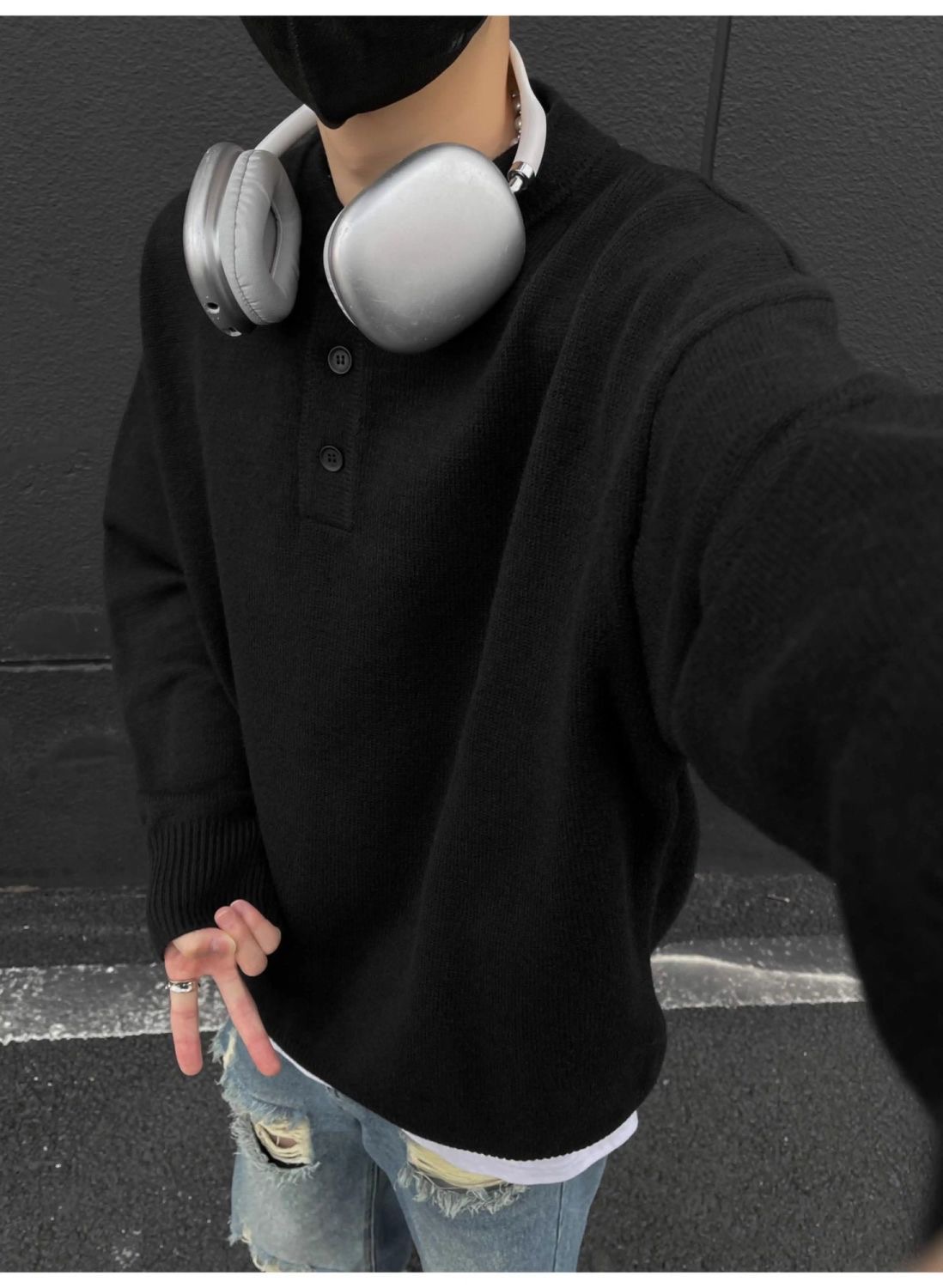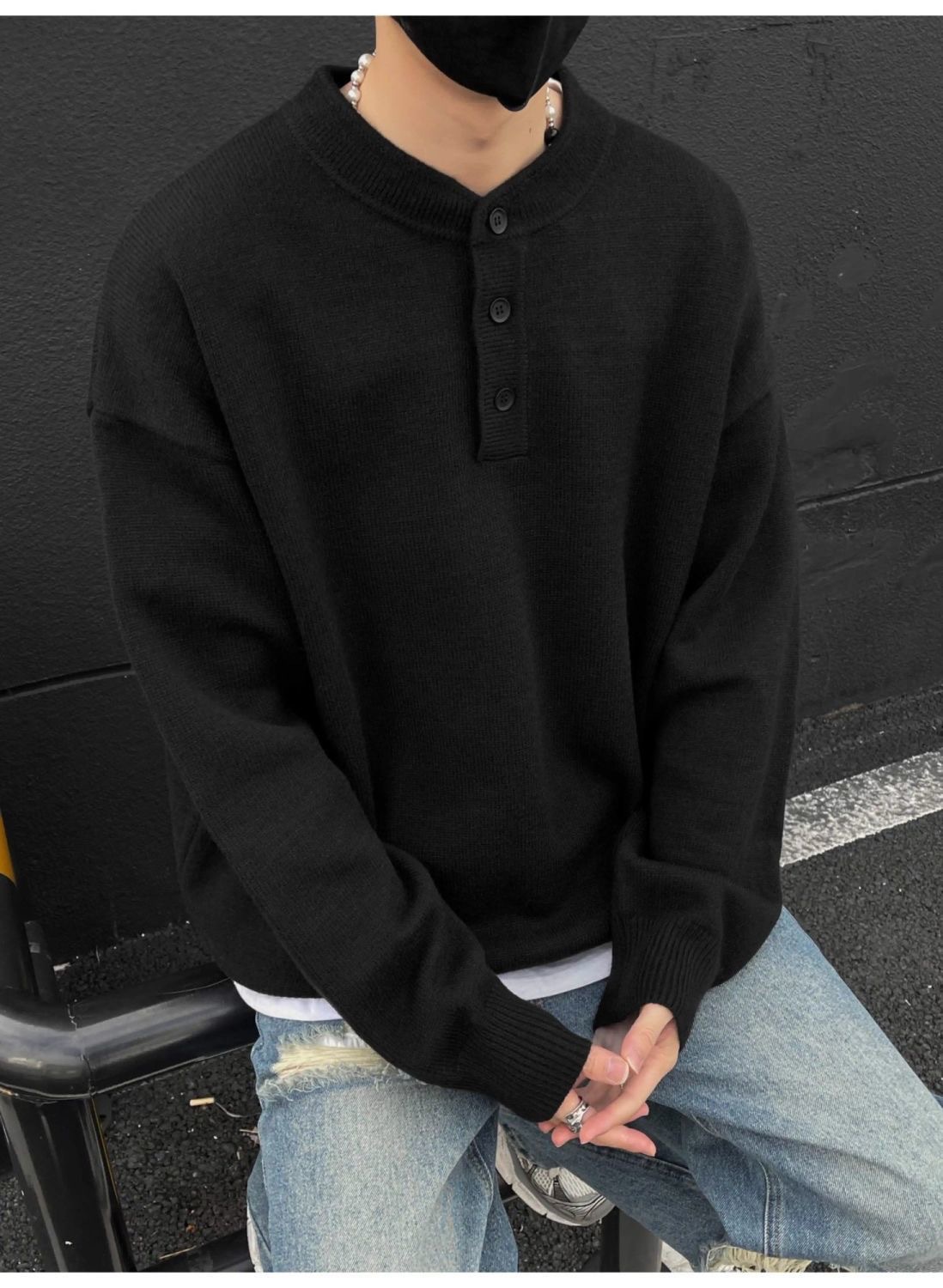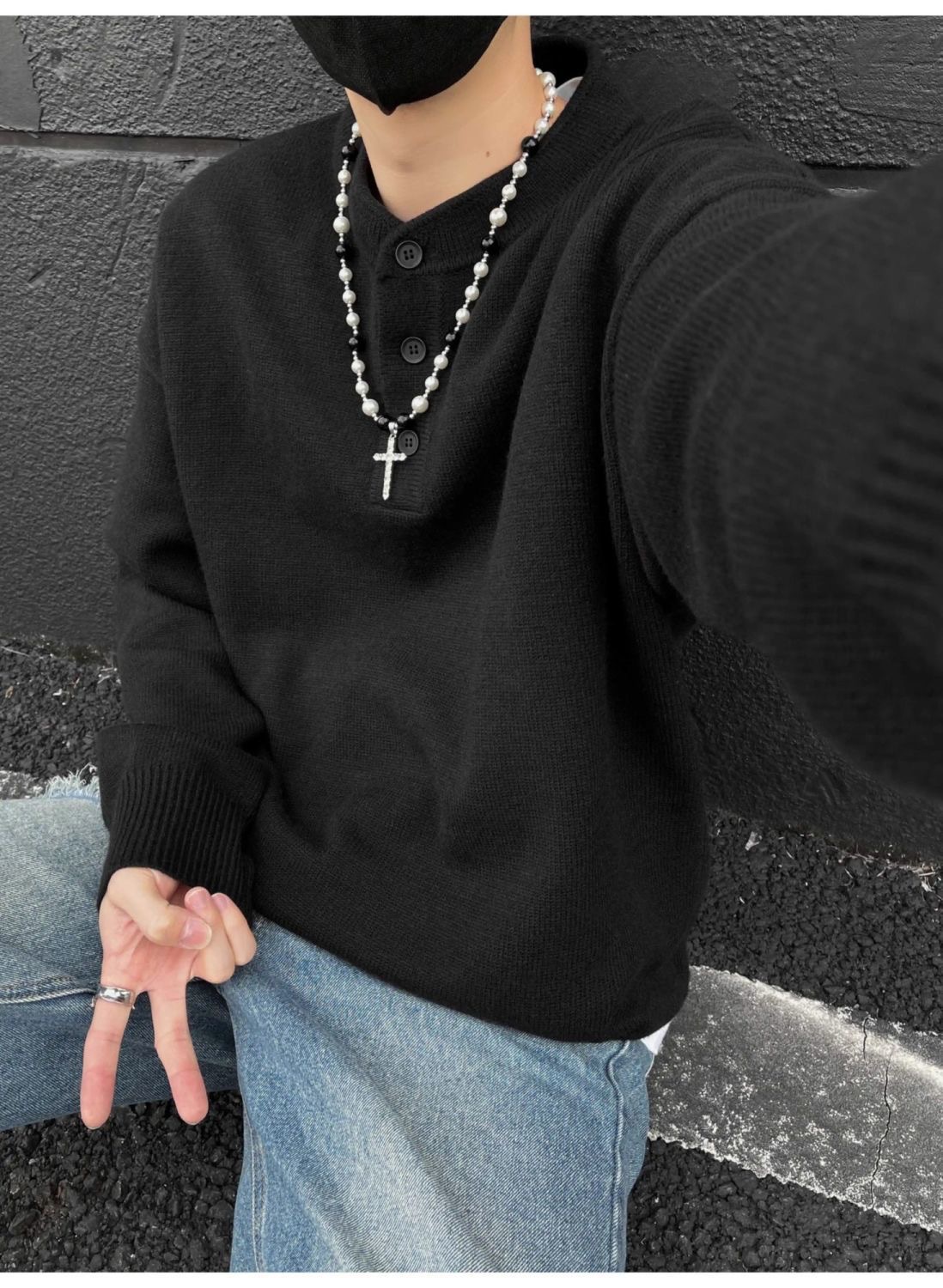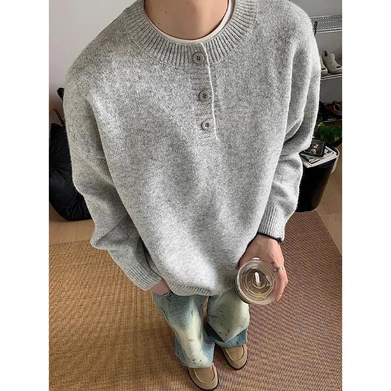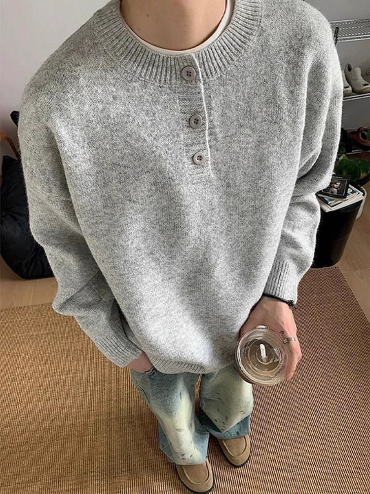 가을, 겨울 회색 미국 복고풍 헨리 칼라 스웨터 남성 게으른 스타일 하이 엔드 스웨터 클린핏 재킷스토어 가기