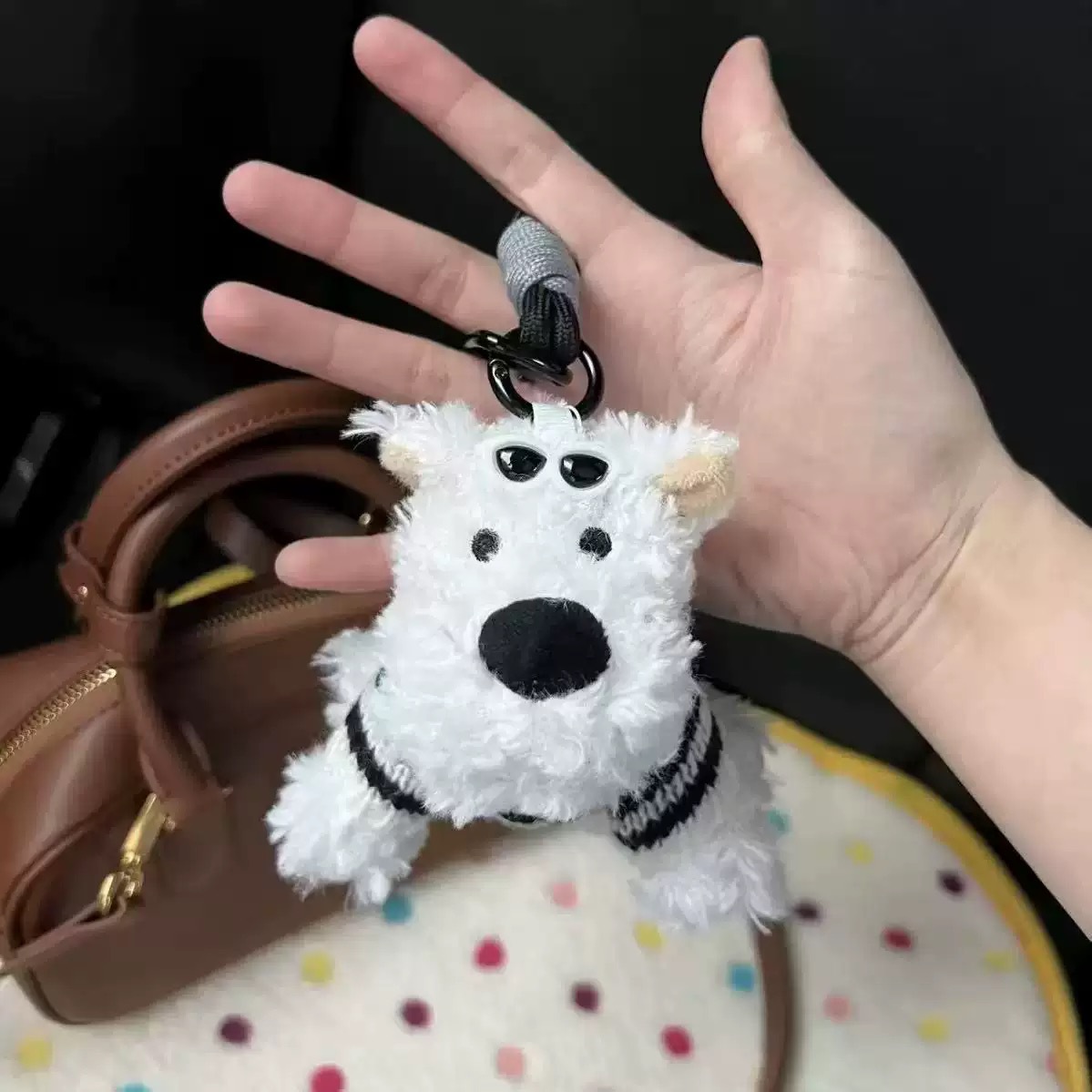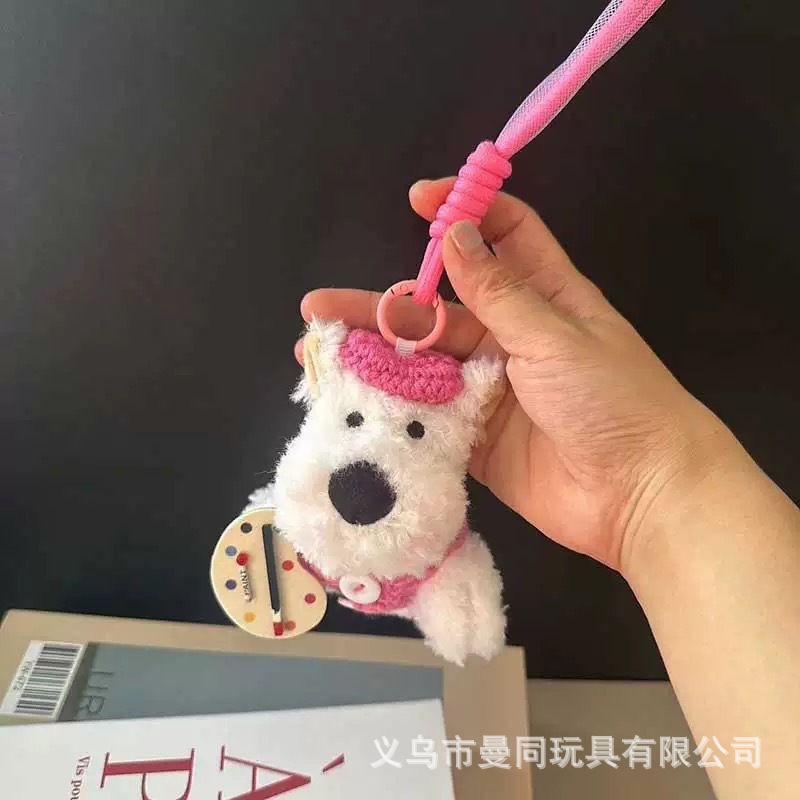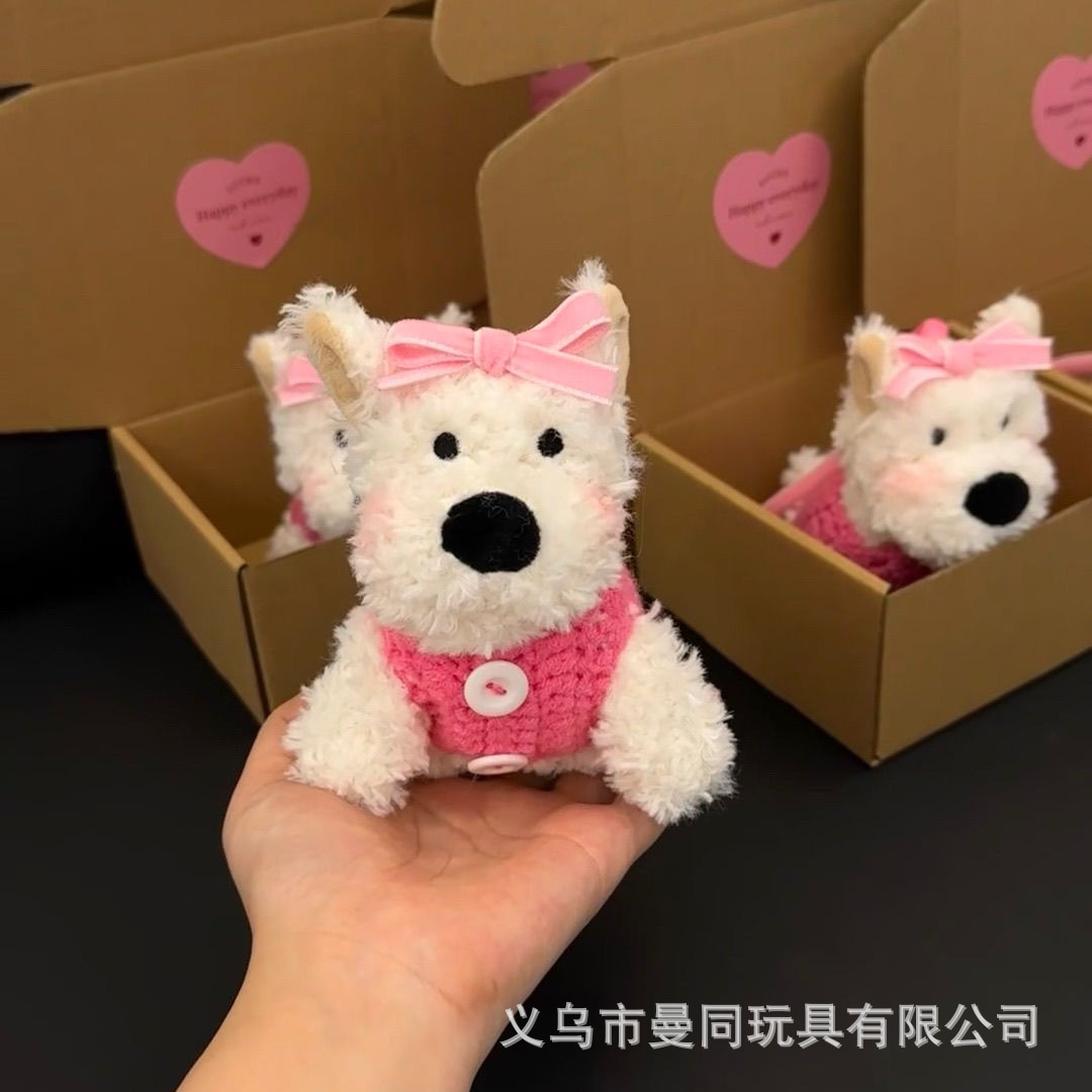 귀여운 웨스트 하이랜드 펜던트, 서러운 강아지 봉제 인형 가방 펜던트, 열쇠고리, 도파민 인형 펜던트 선물